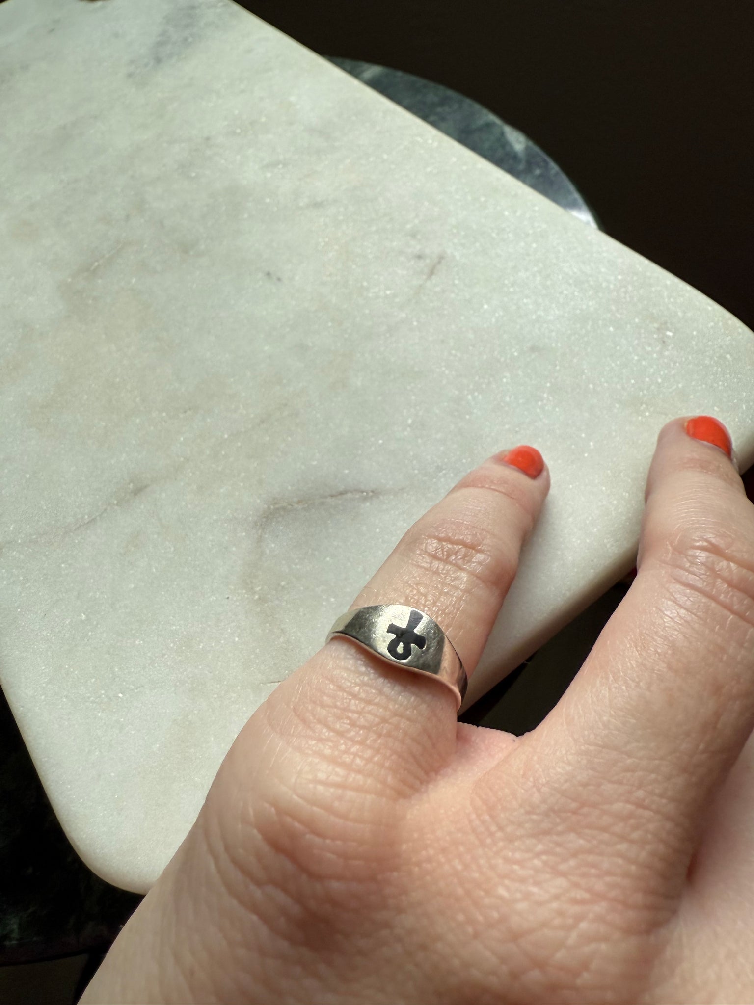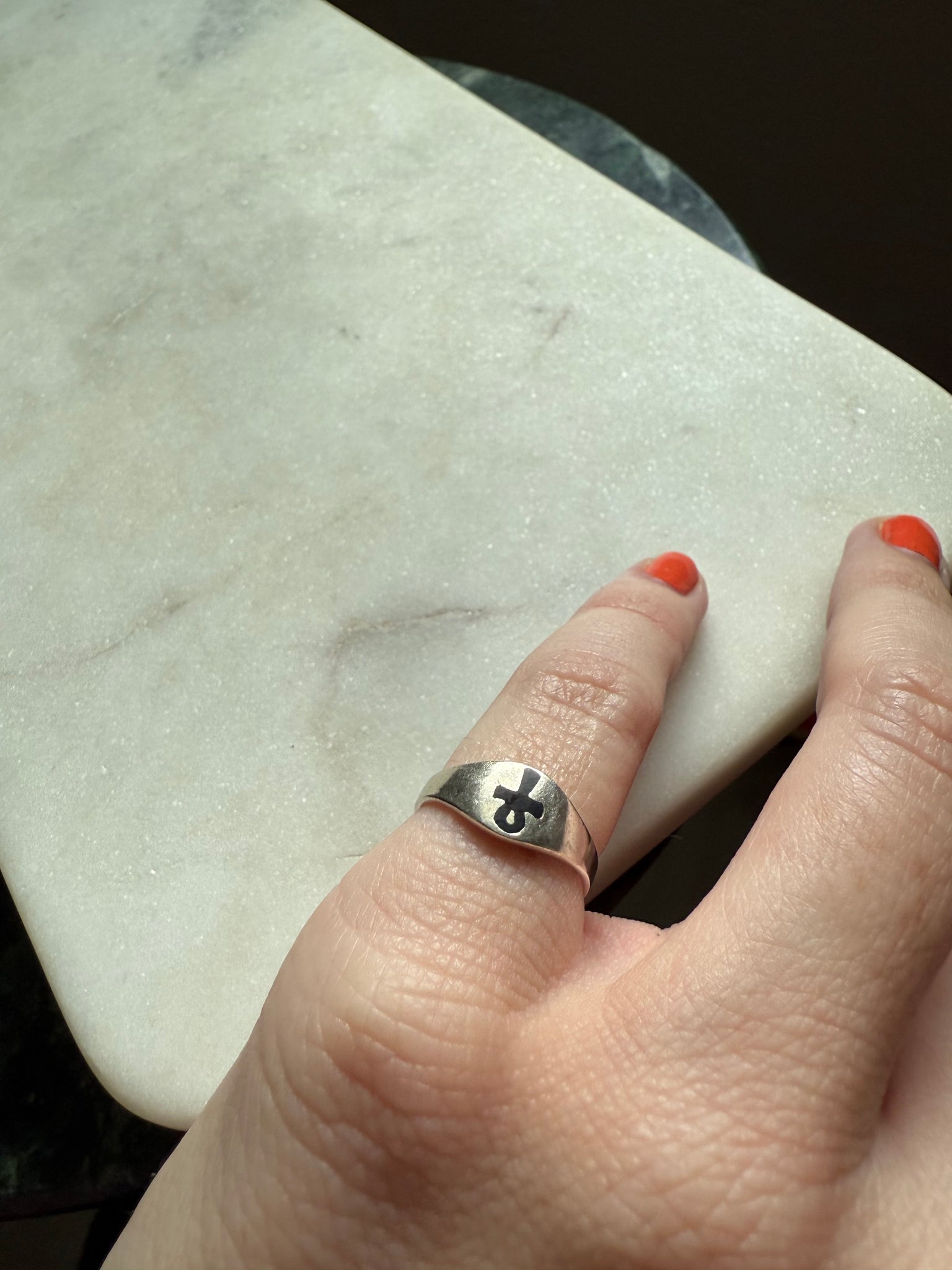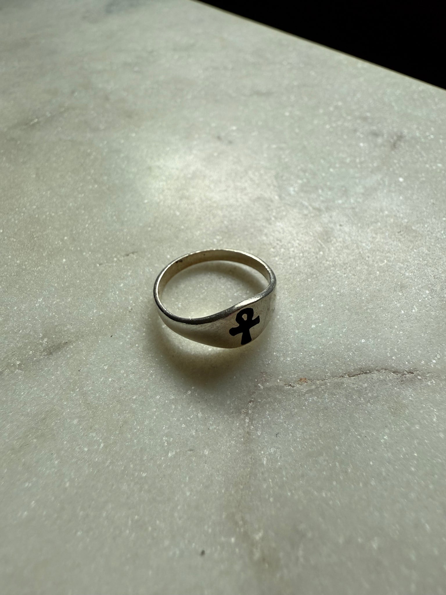 Black Enamel Ankh Sterling Silver Ring Size 5