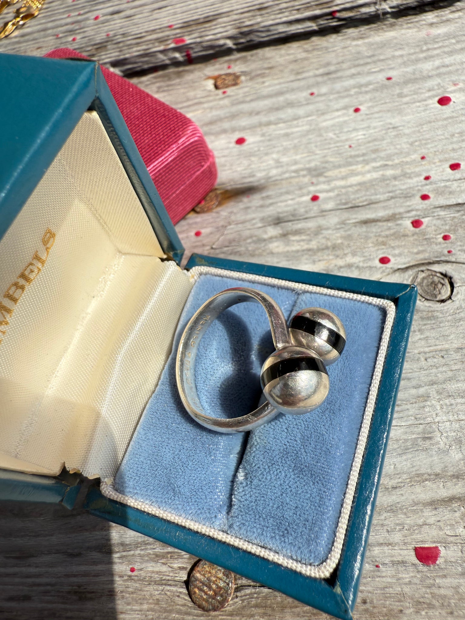 Black Enamel Mexico Sterling Silver Bypass Ring Size 7.75
