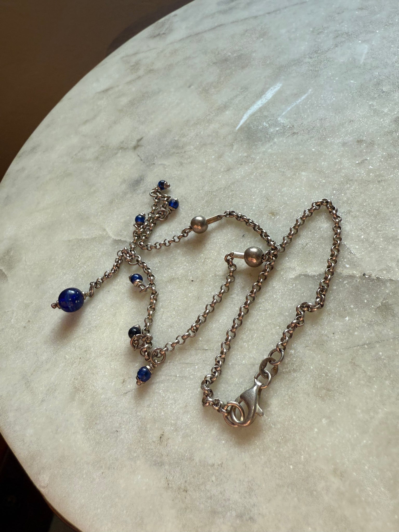 Blue Ball Drop Sterling Silver Necklace 15.75”