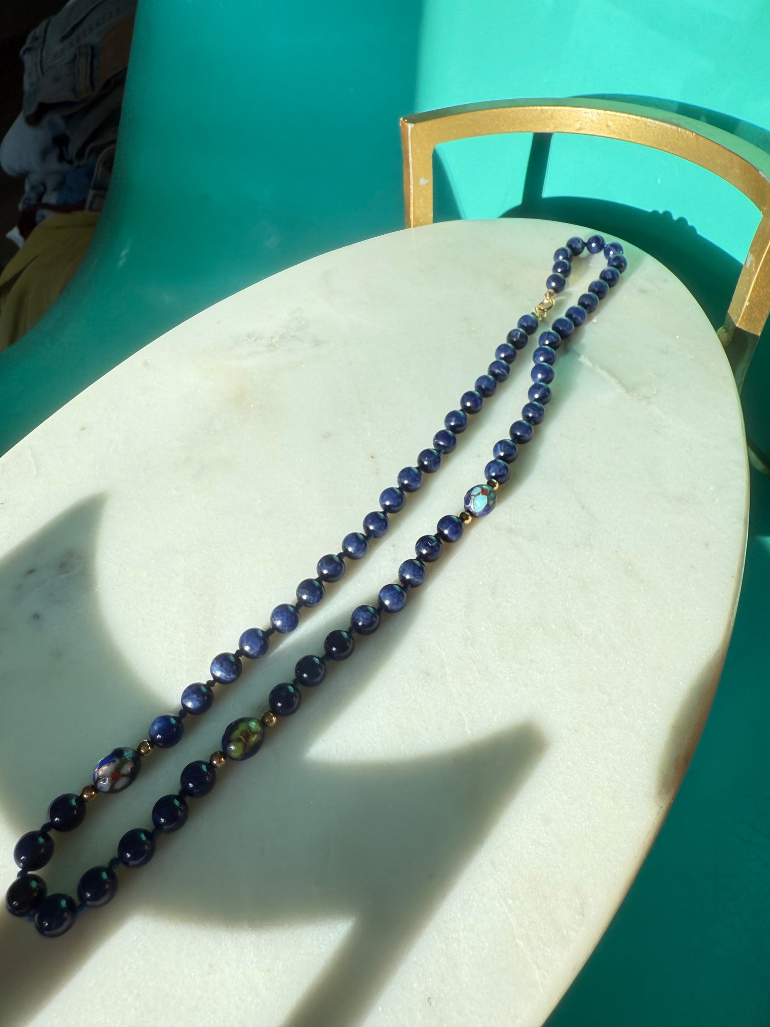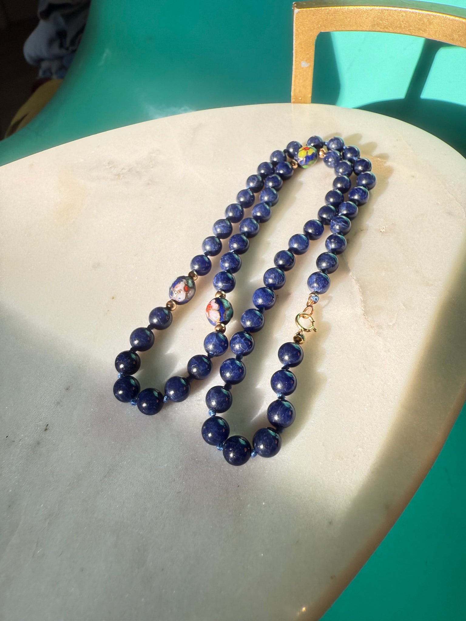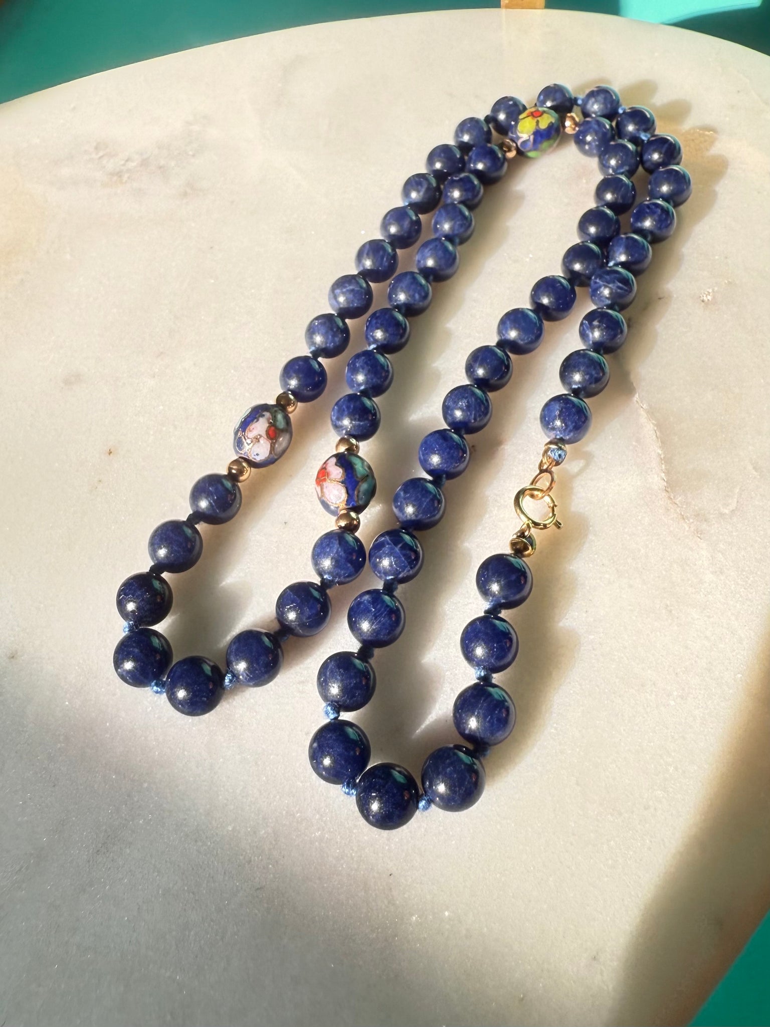 Blue Cloisonné 14k Gold Beaded Necklace 18.5”