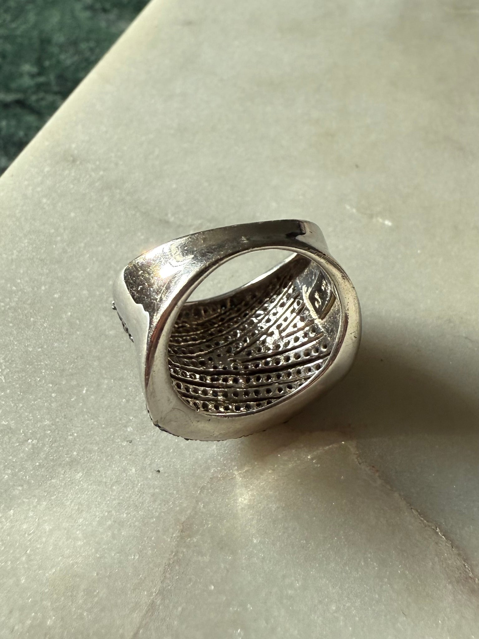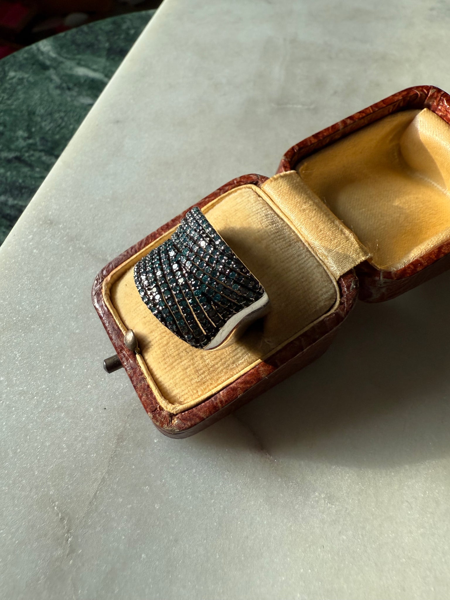 Blue Diamond Sterling Silver Wide Ring Size 6.25
