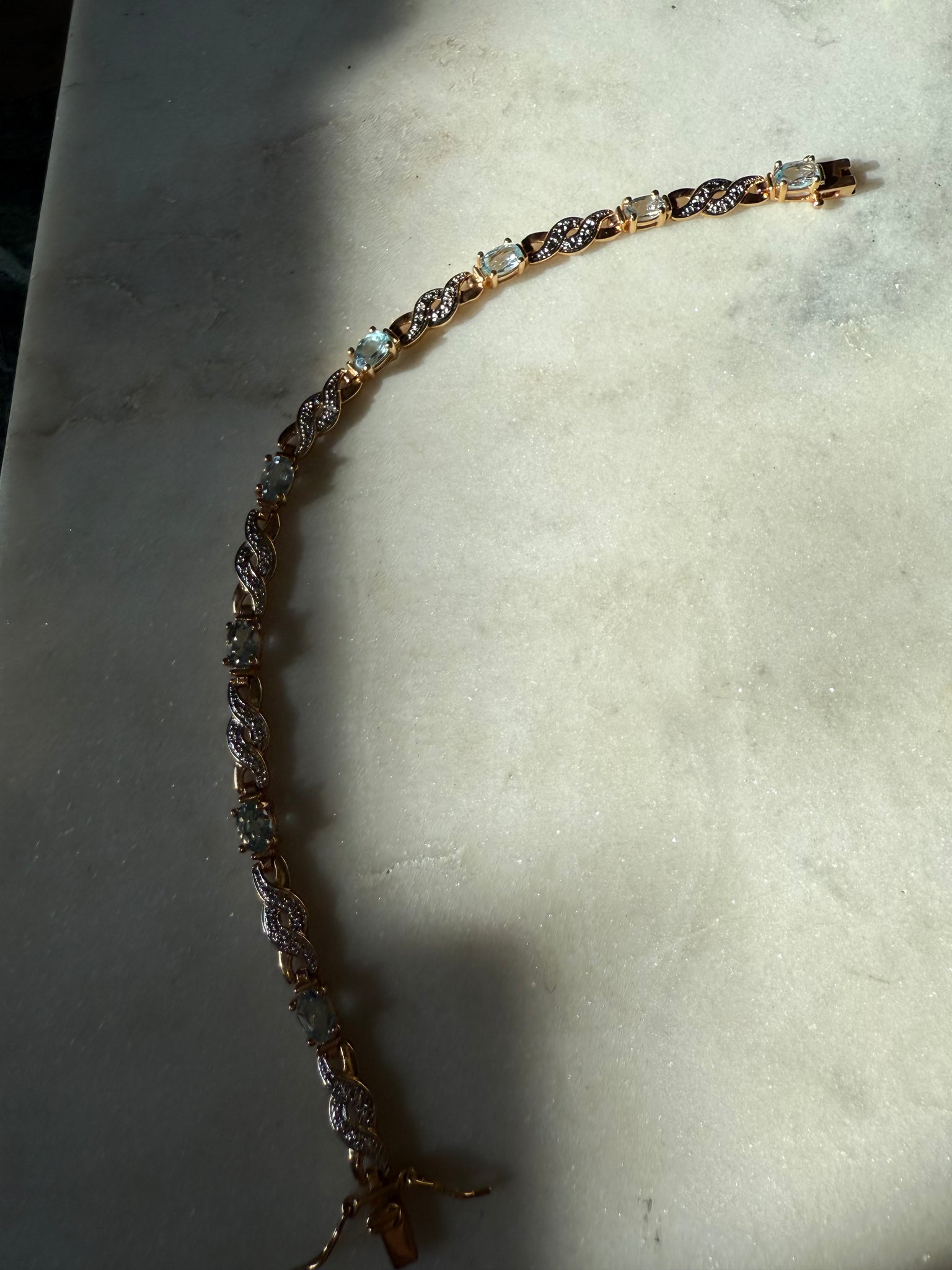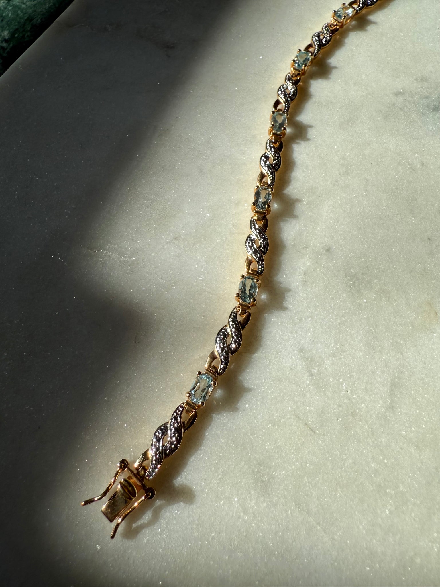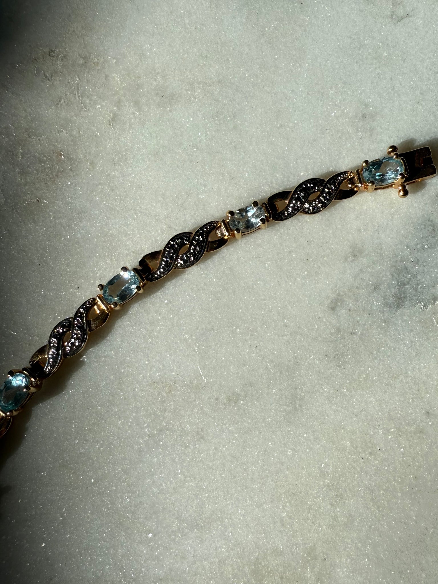 .925 gold vermeil • blue stones test as topaz on gem tester • bracelet measures 6.9 grams & 7” length & 4.75mm width