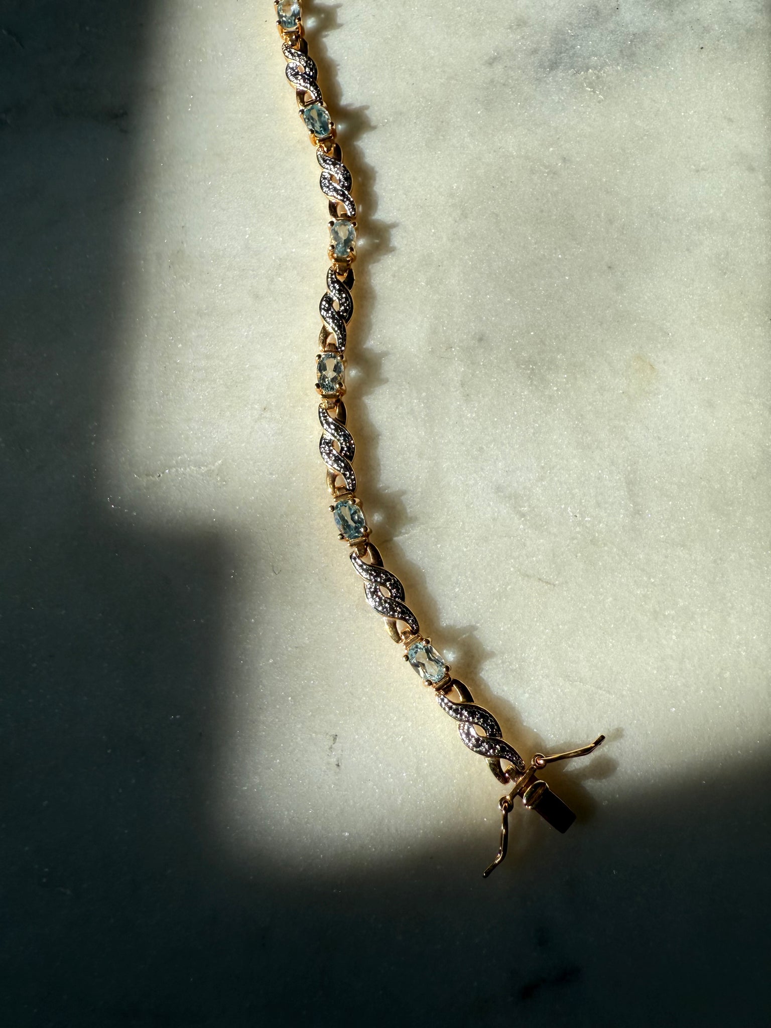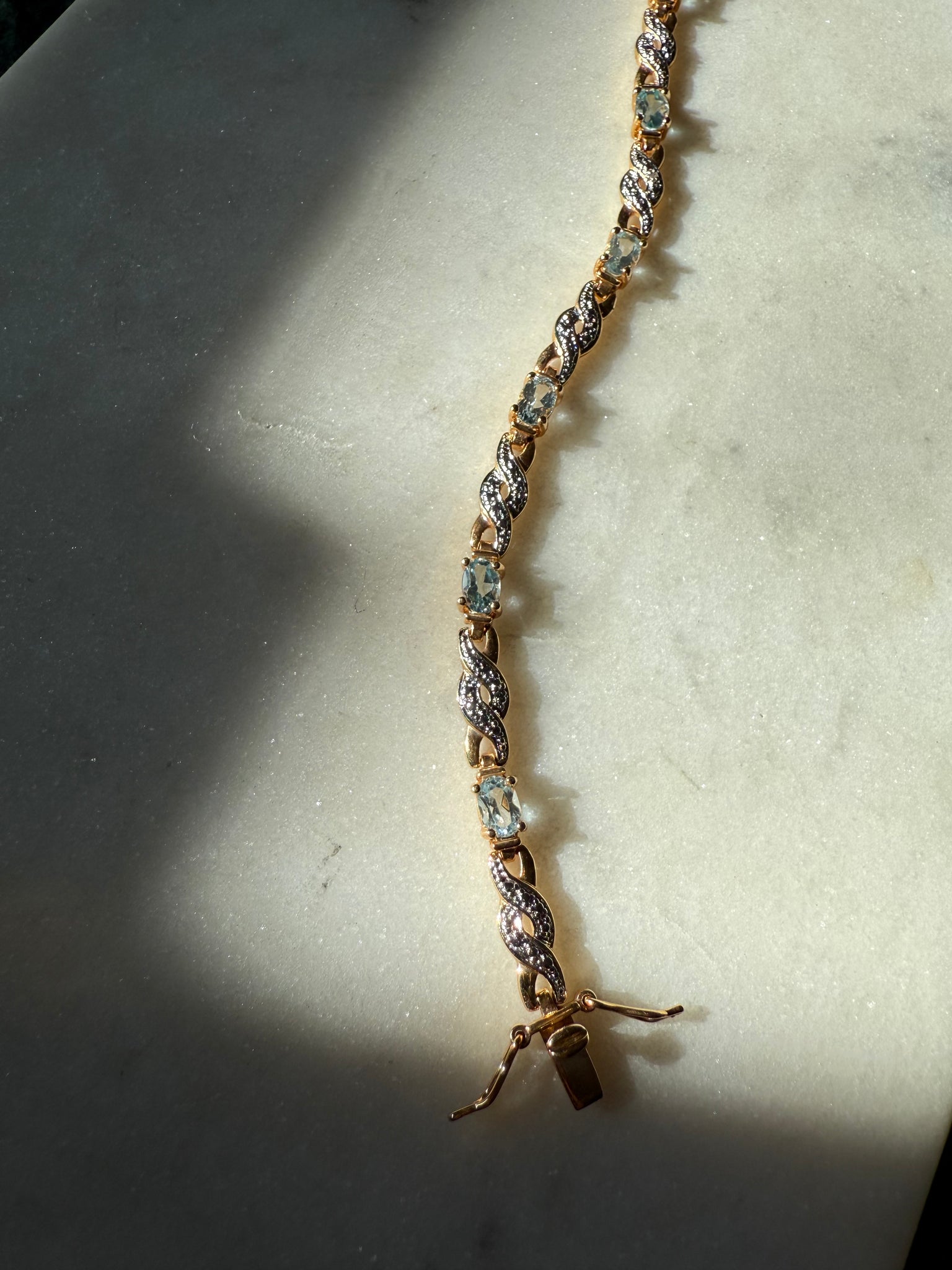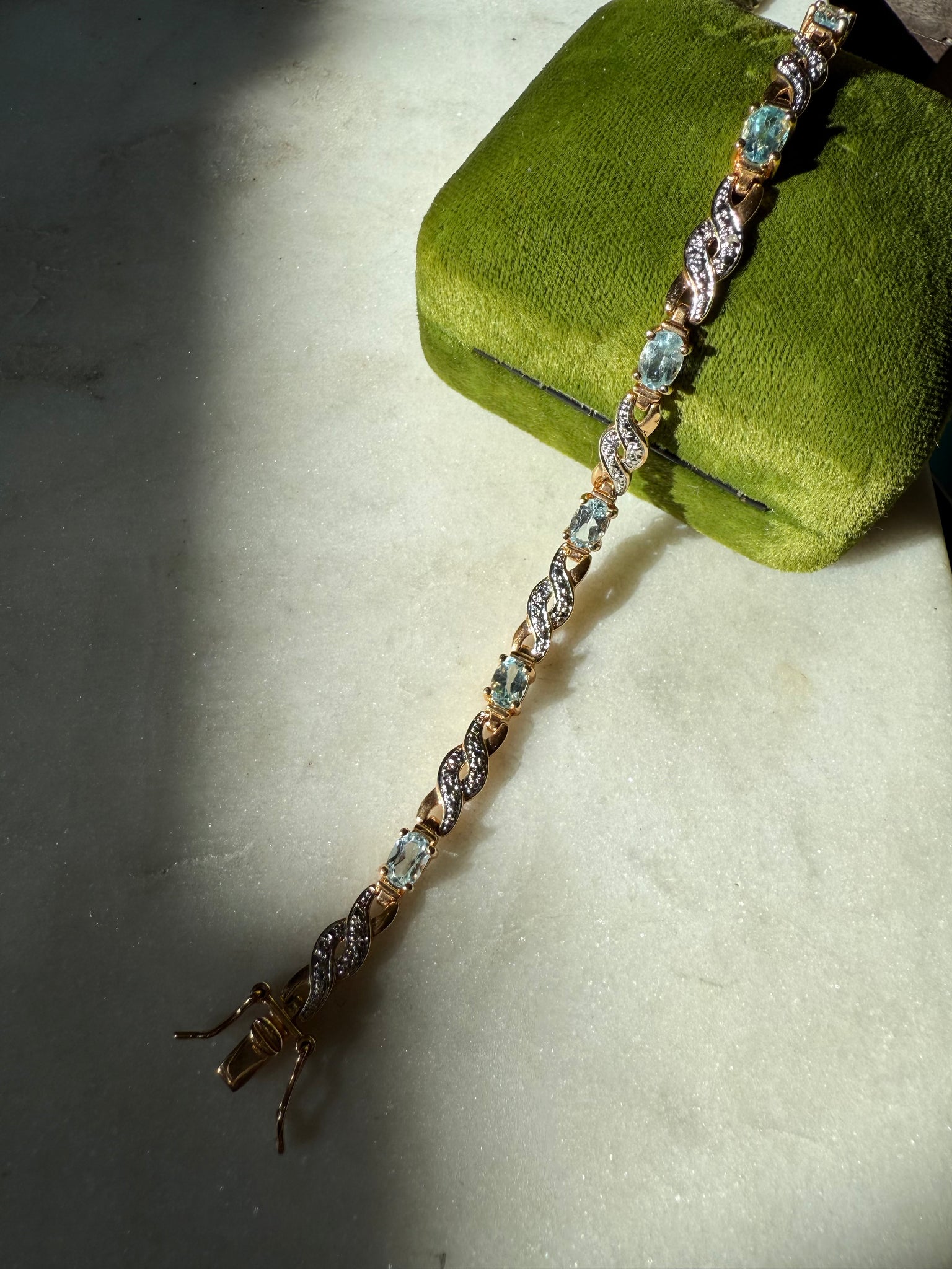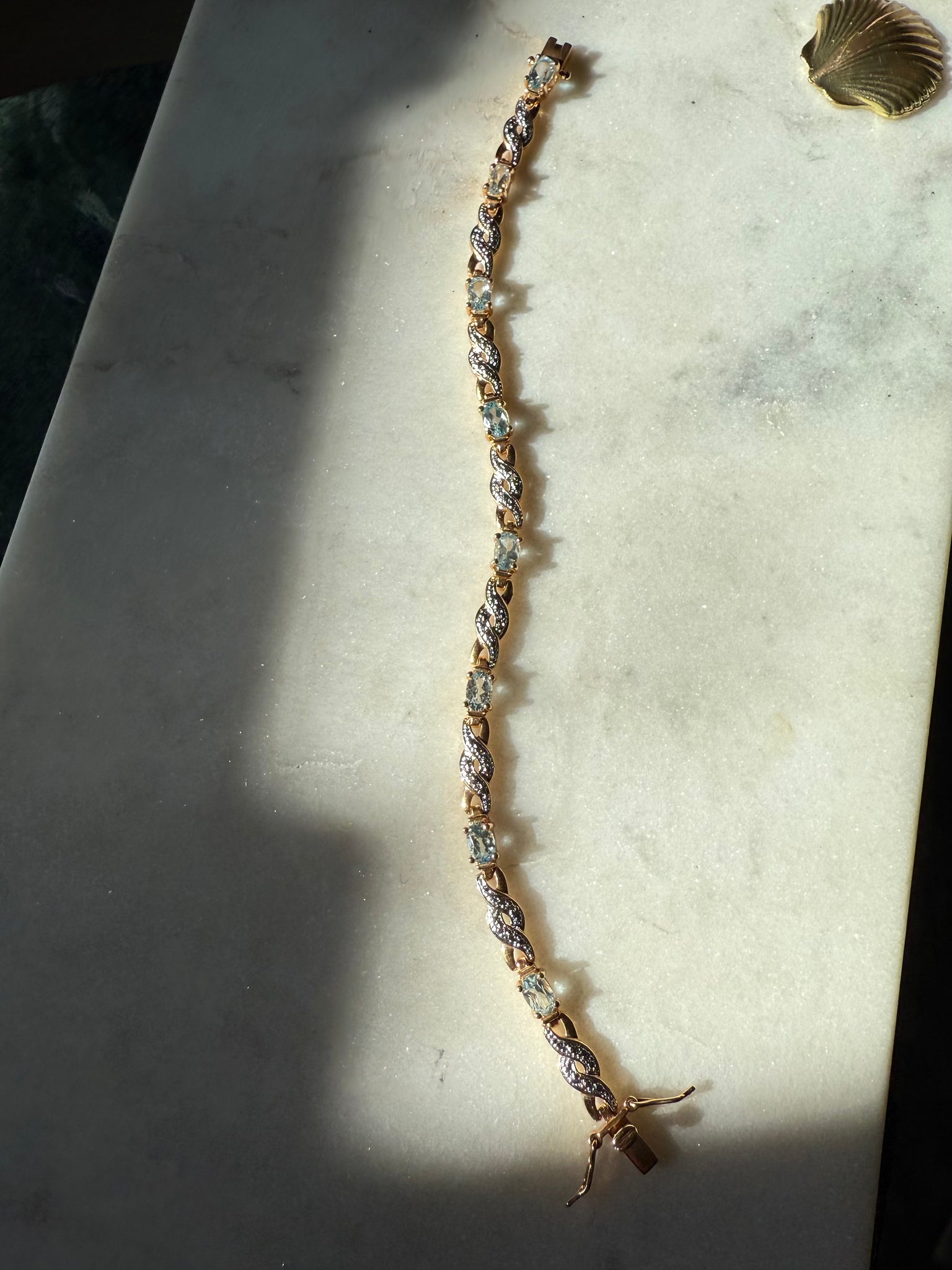 .925 gold vermeil • blue stones test as topaz on gem tester • bracelet measures 6.9 grams & 7” length & 4.75mm width