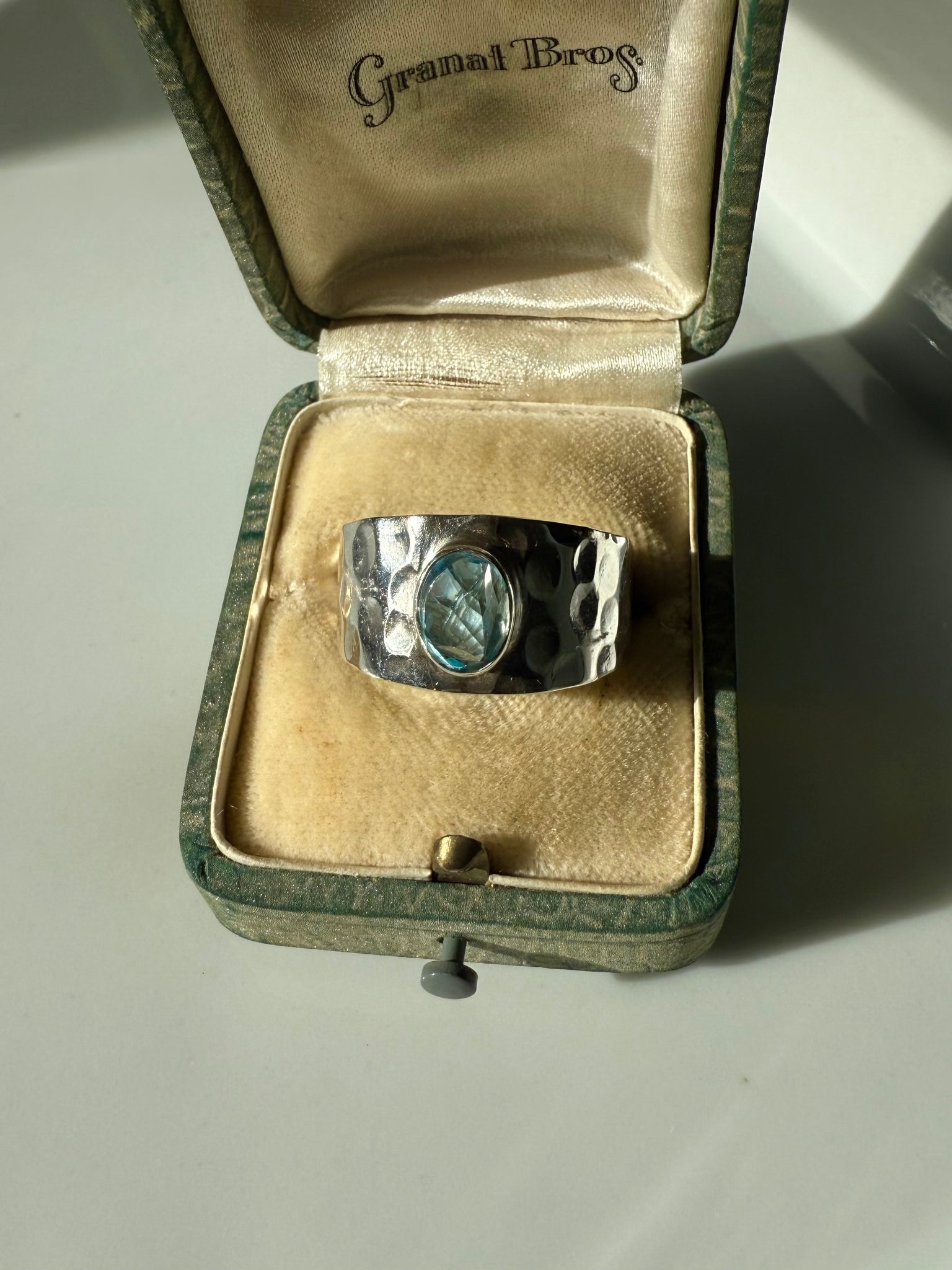 Blue Topaz Hammered Sterling Silver Ring Size 12.5