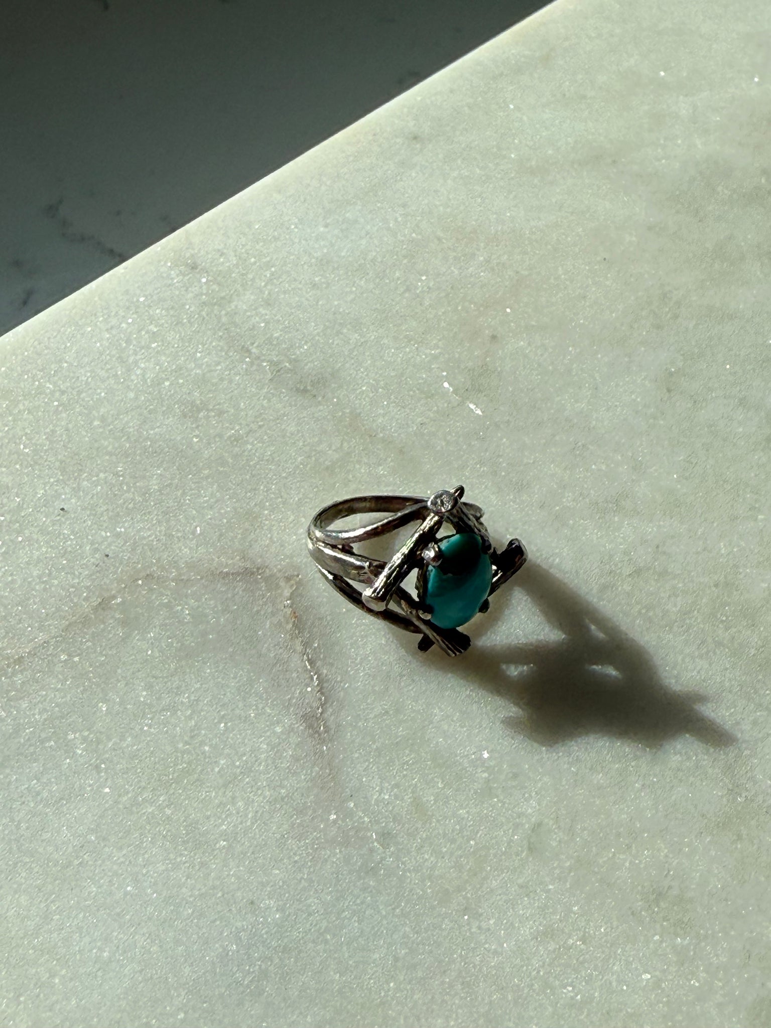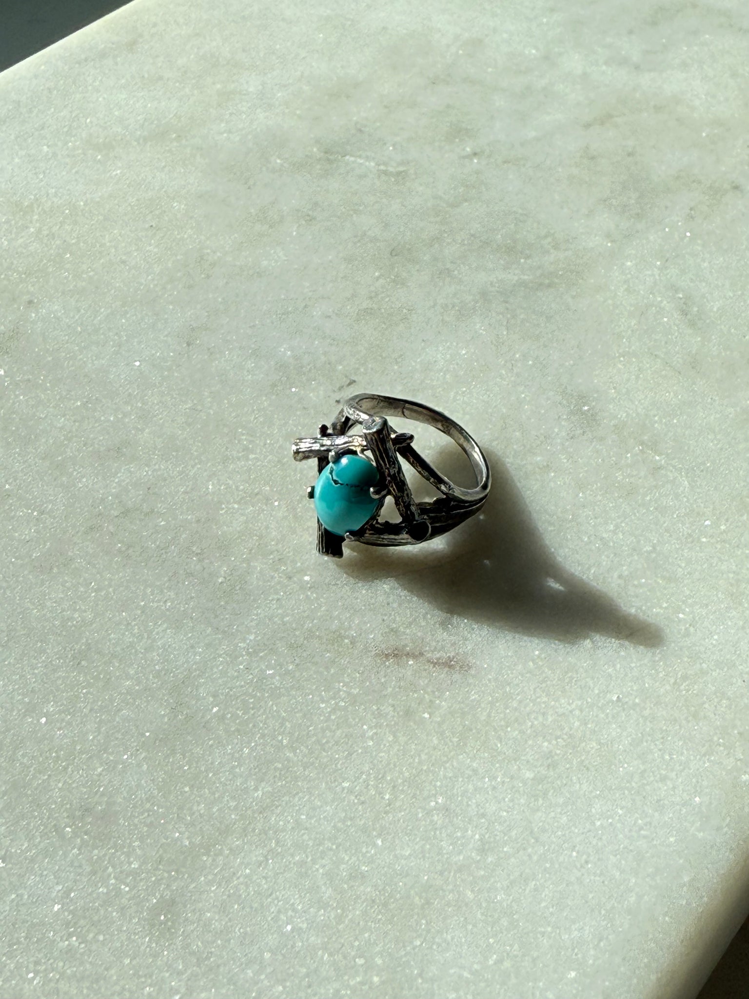Brutalist Turquoise Sterling Silver Ring Size 3.75