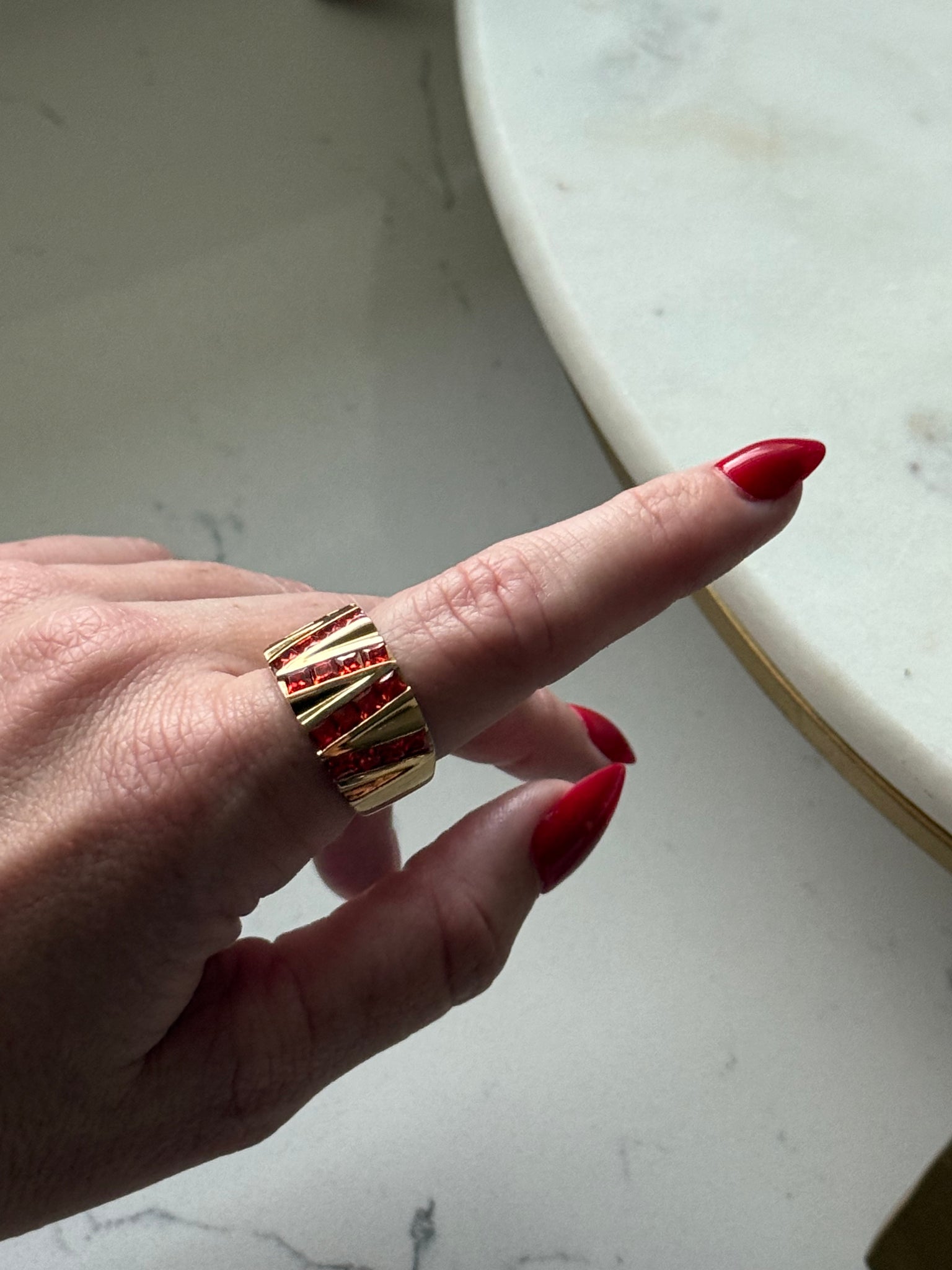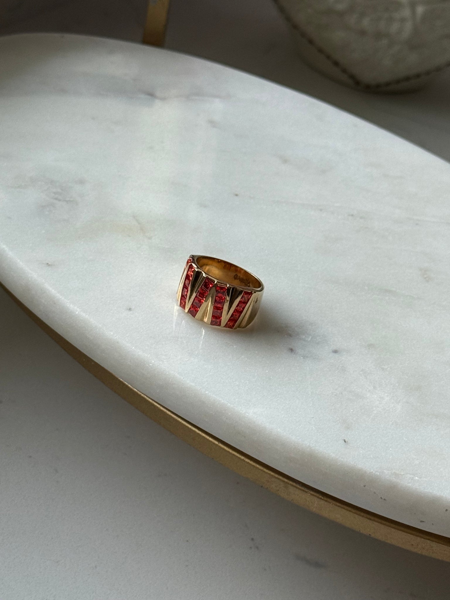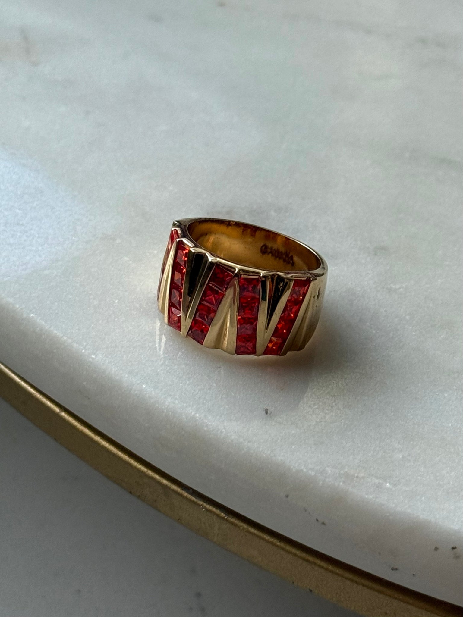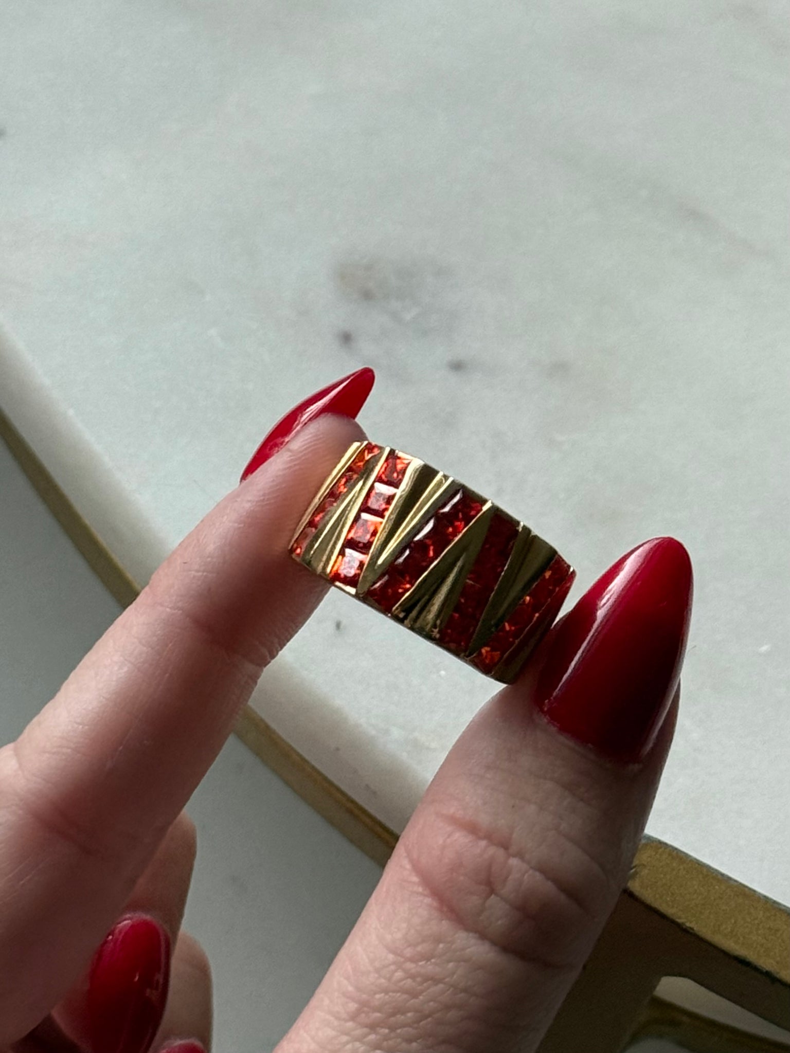 12.9 grams • .925 gold vermeil and stamped Canada • ring size 9.75 •orange glass stones