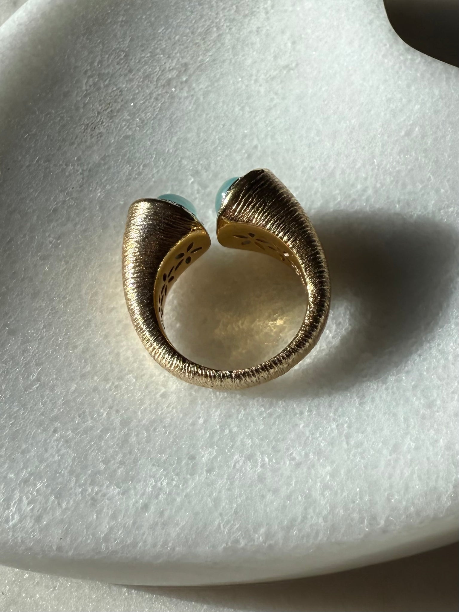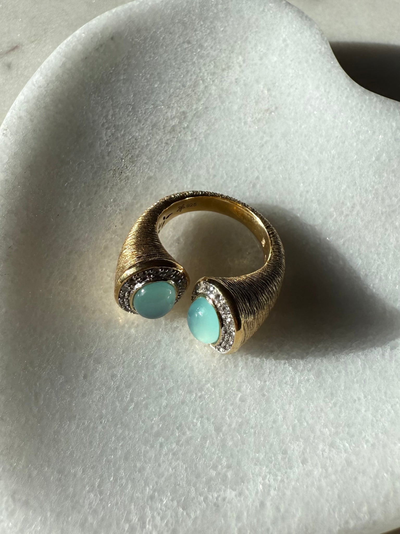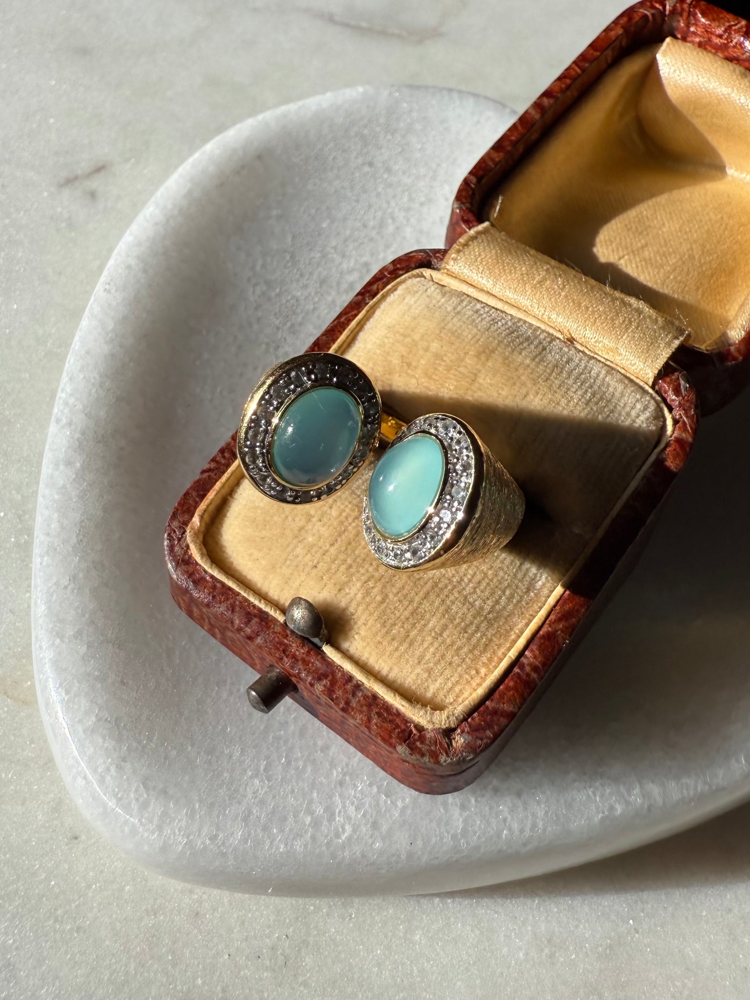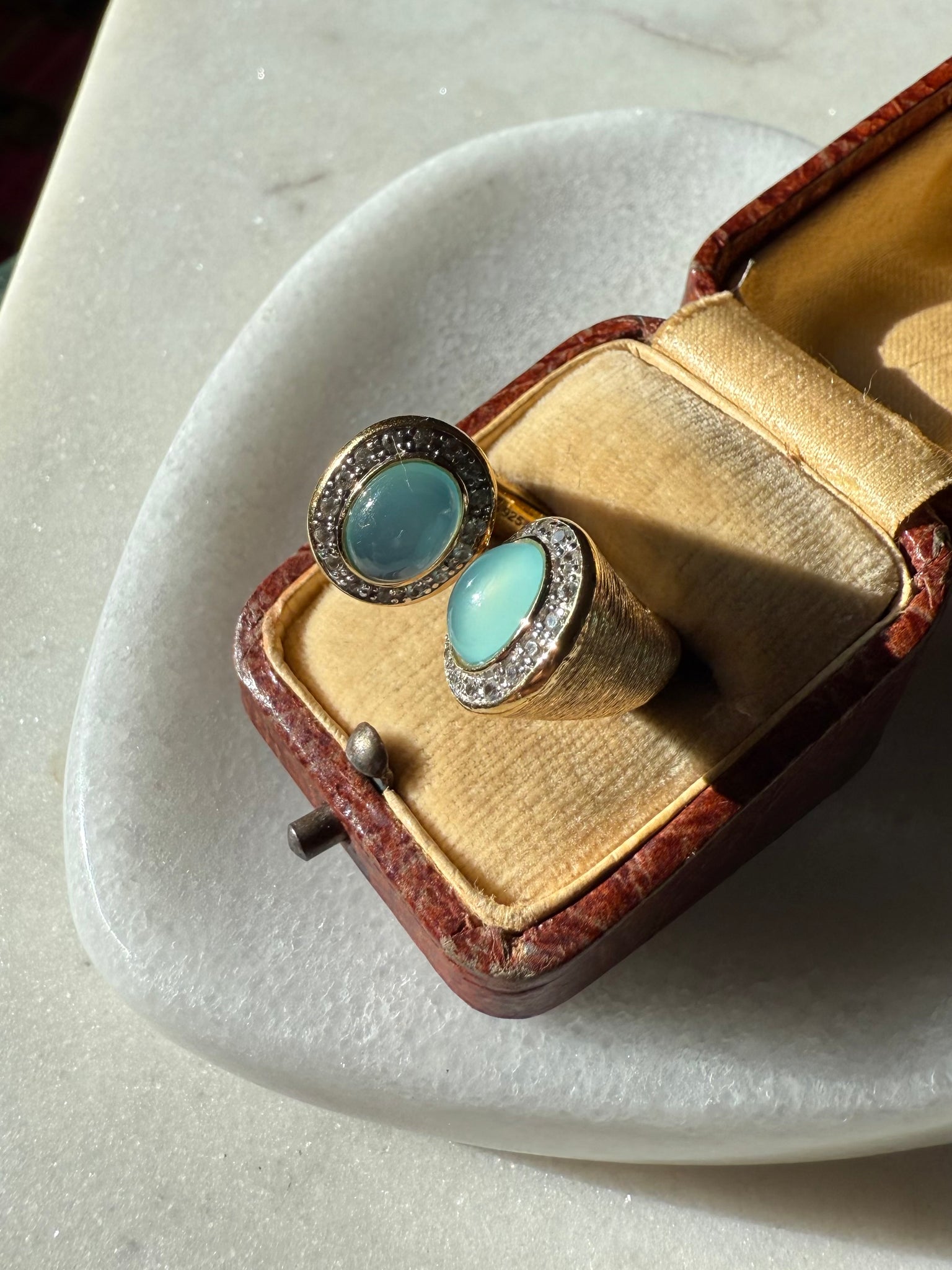 9.1 grams • .925 Gold Vermeil with chrysoprase & lab created diamonds • fits ring size 7.25