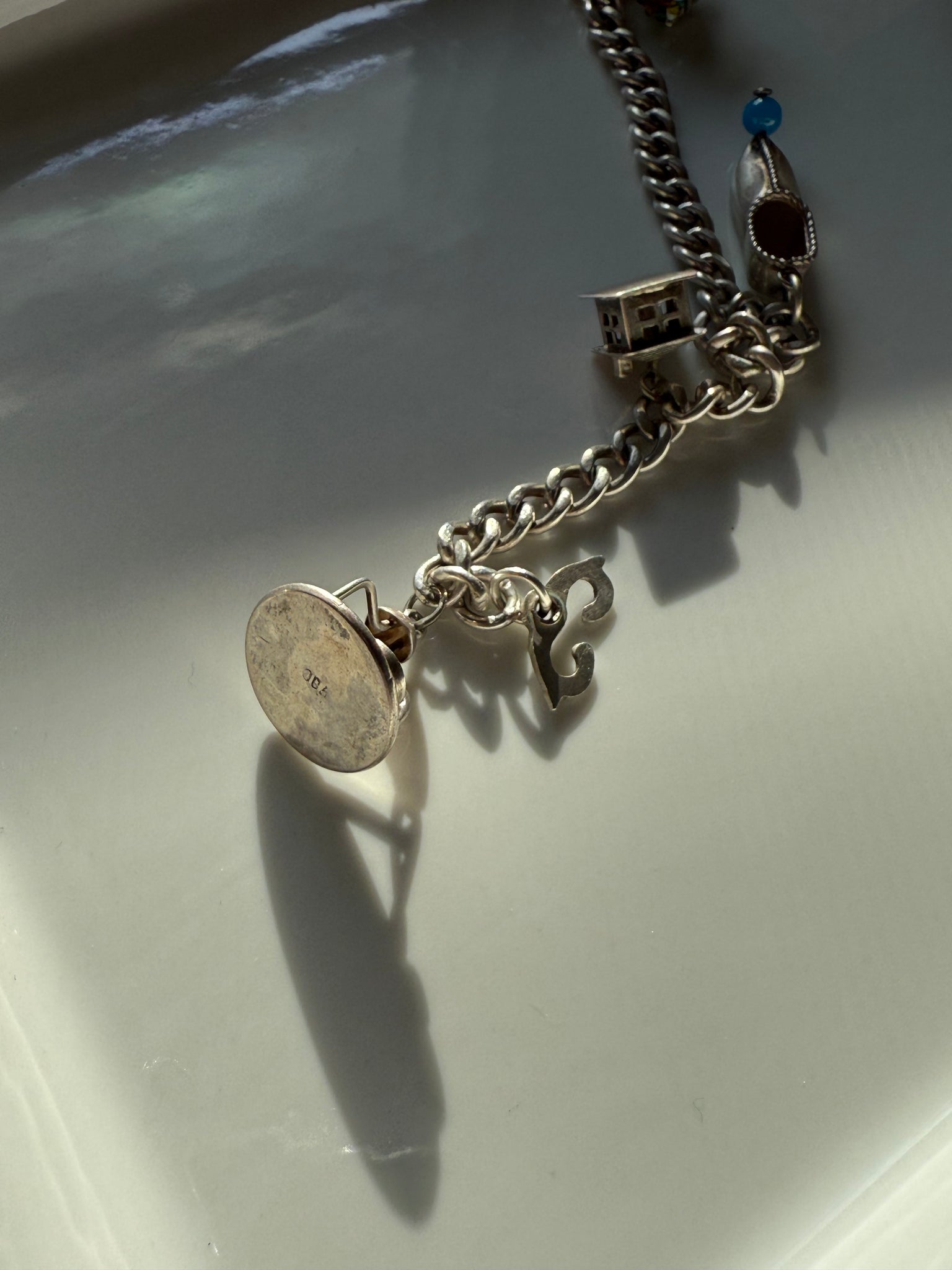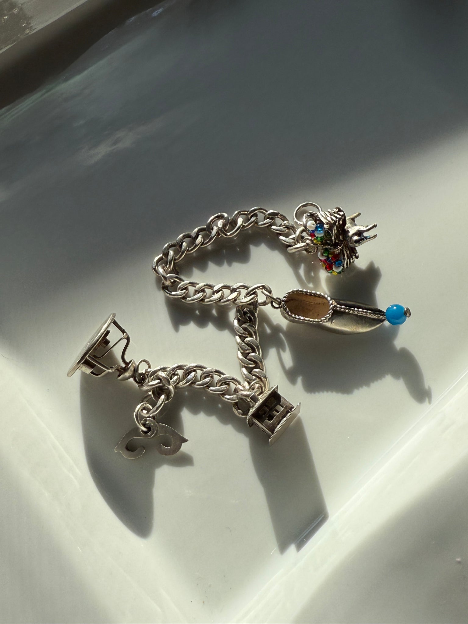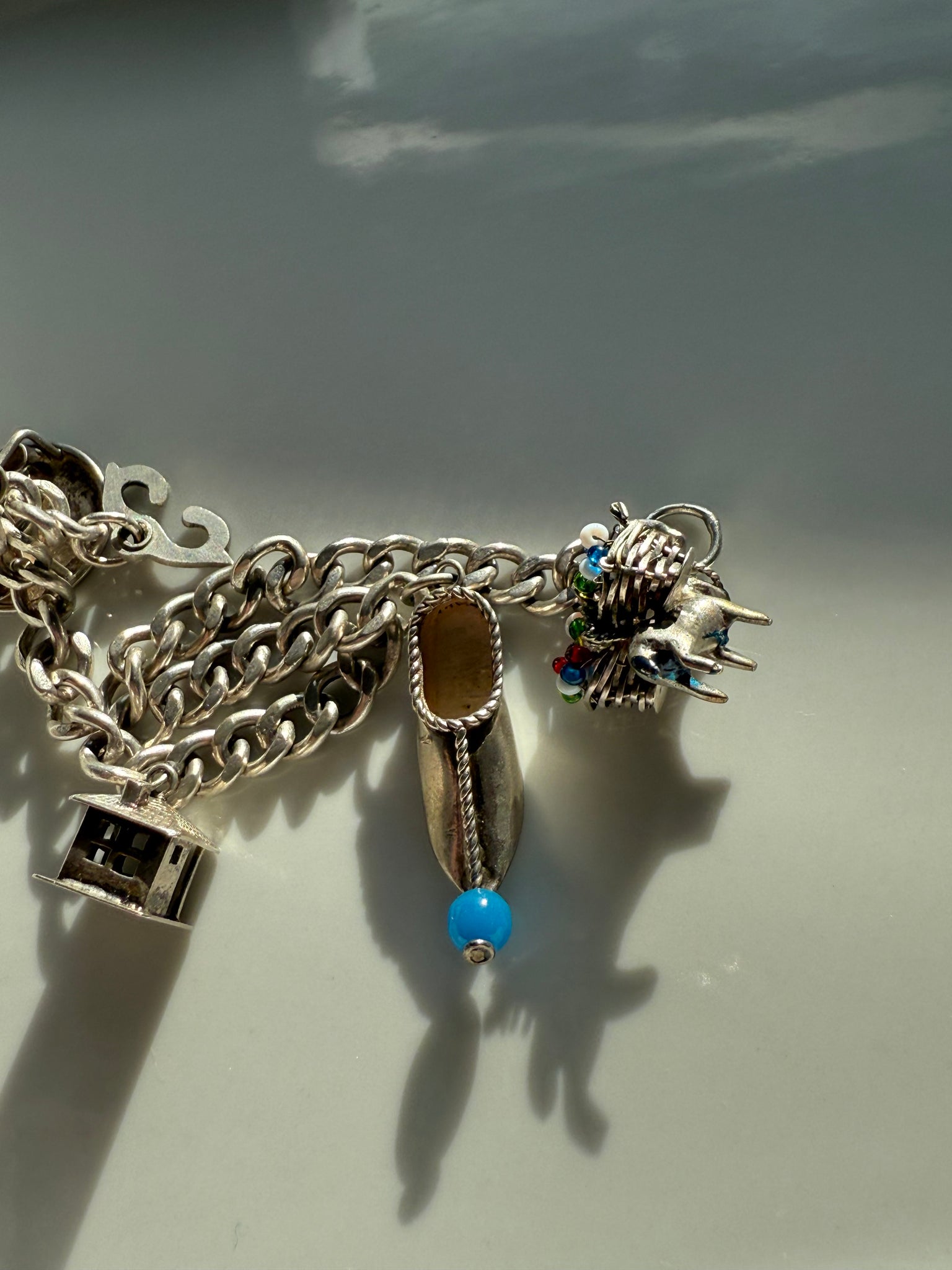 Chunky 900 Silver Vintage Charm Bracelet 7.25”