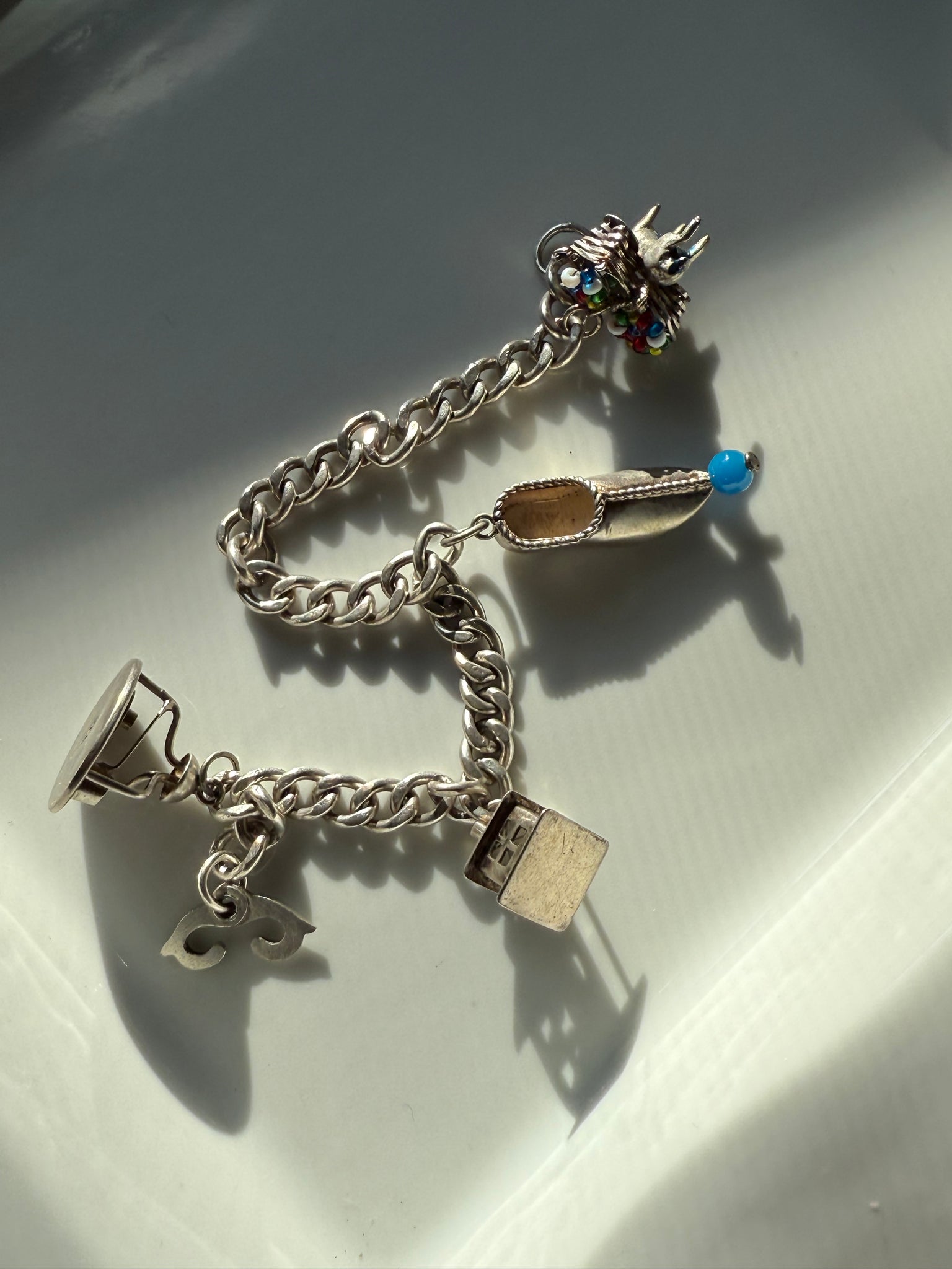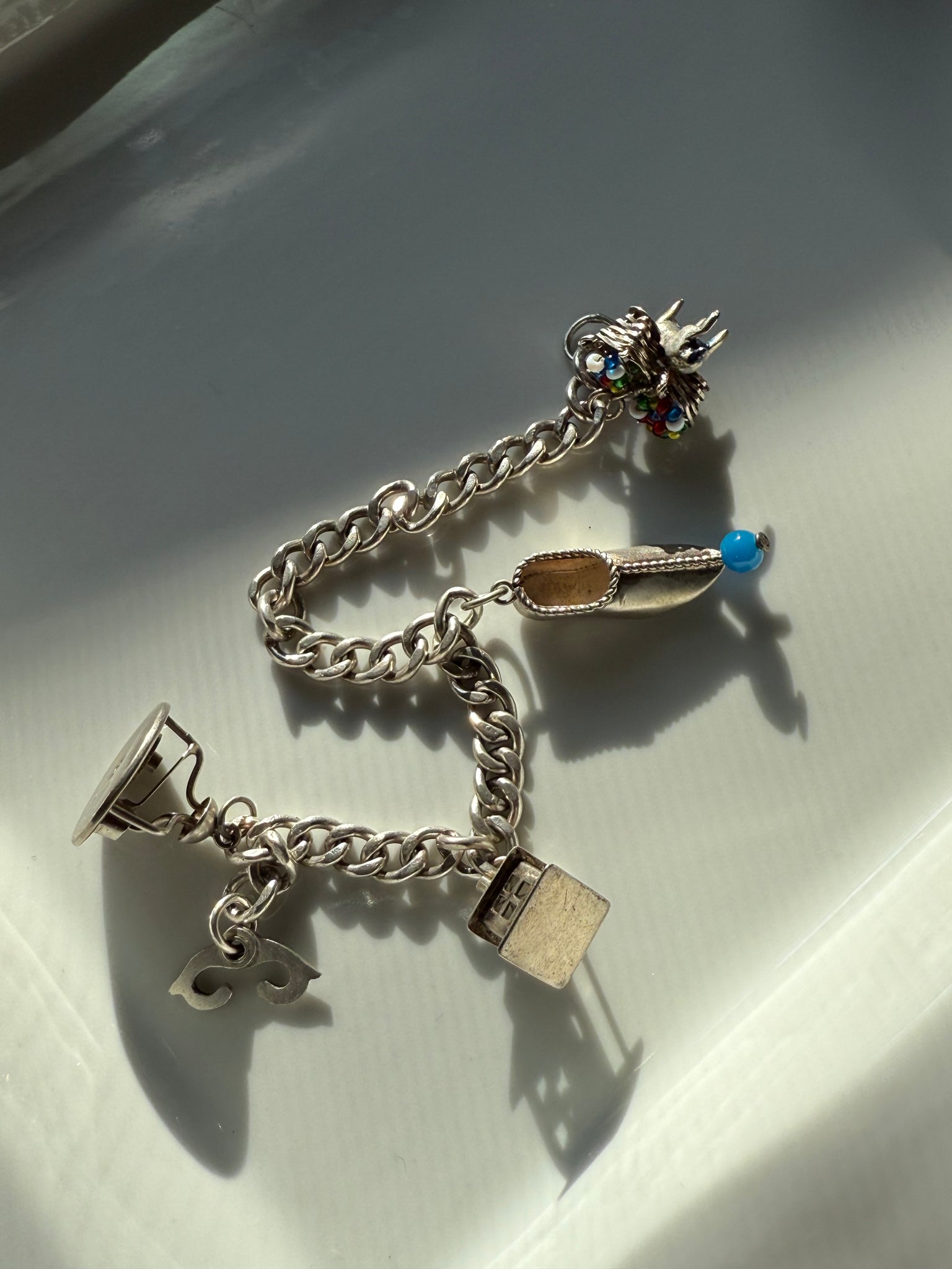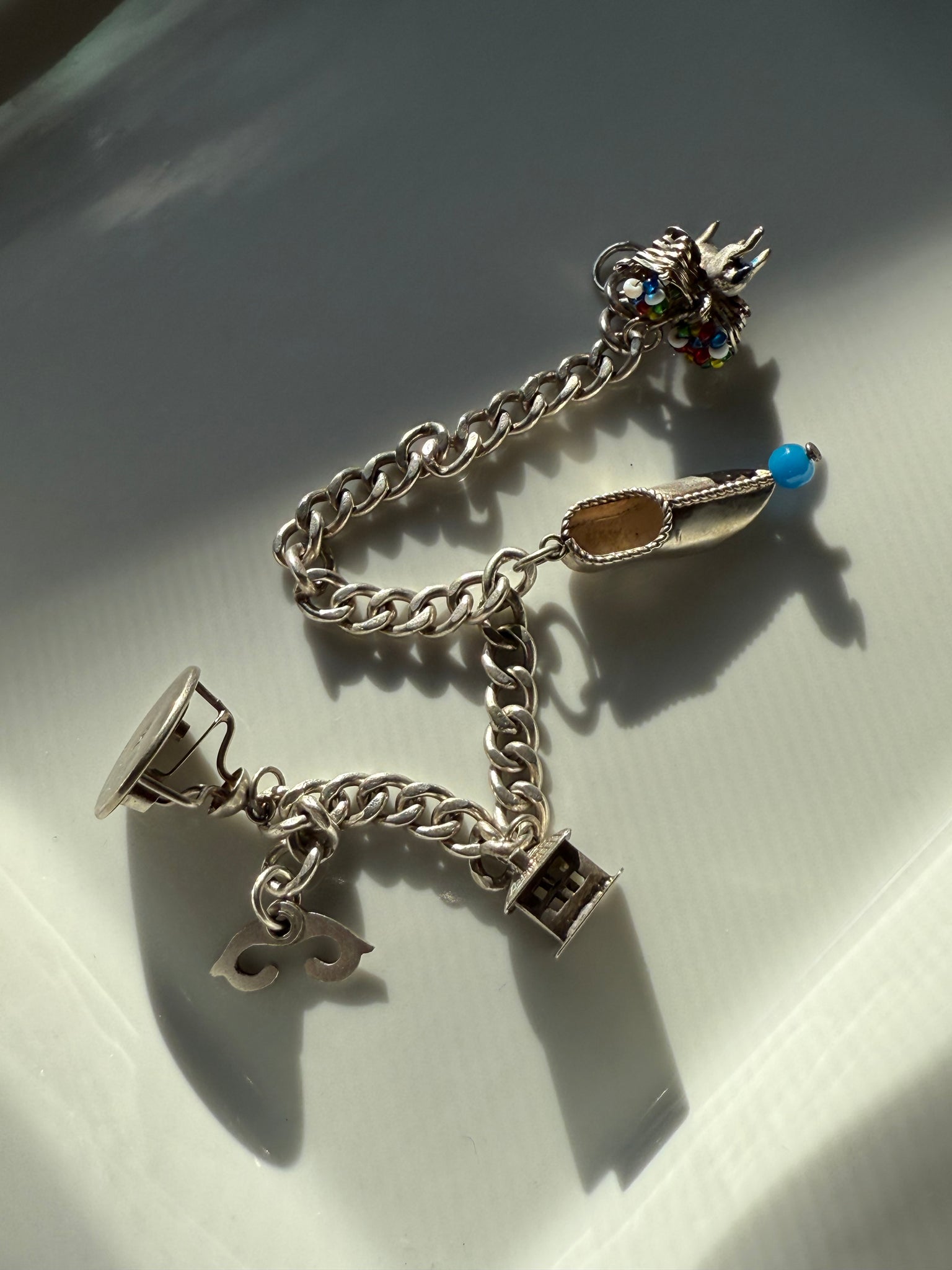 Chunky 900 Silver Vintage Charm Bracelet 7.25”