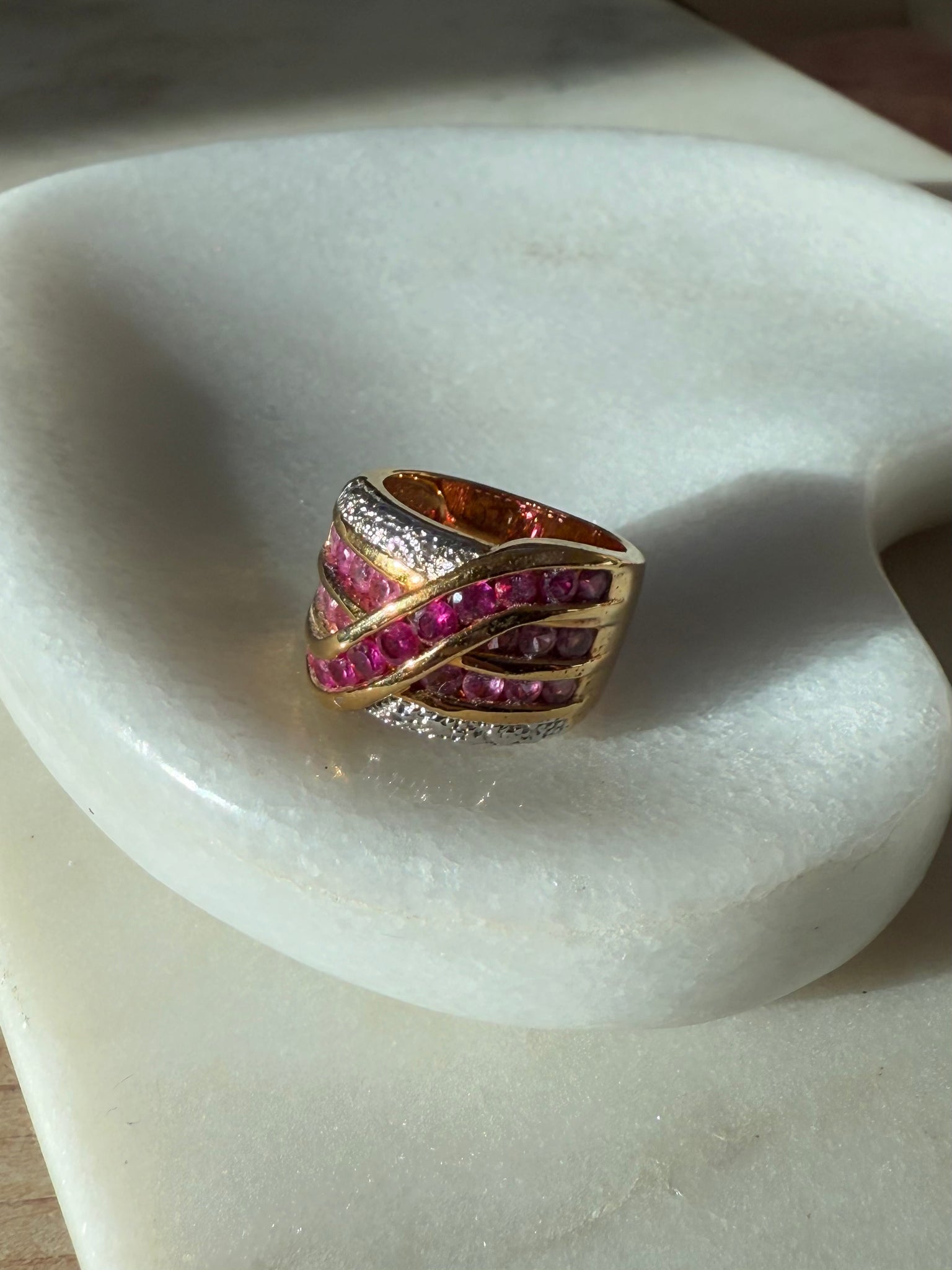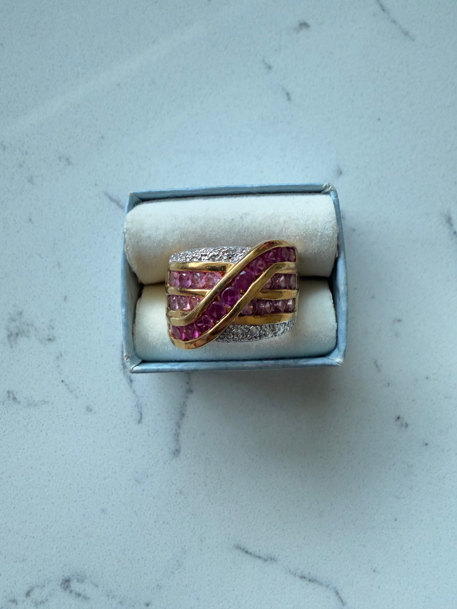 Chunky Gold Vermeil Pink Ring Size 5.5