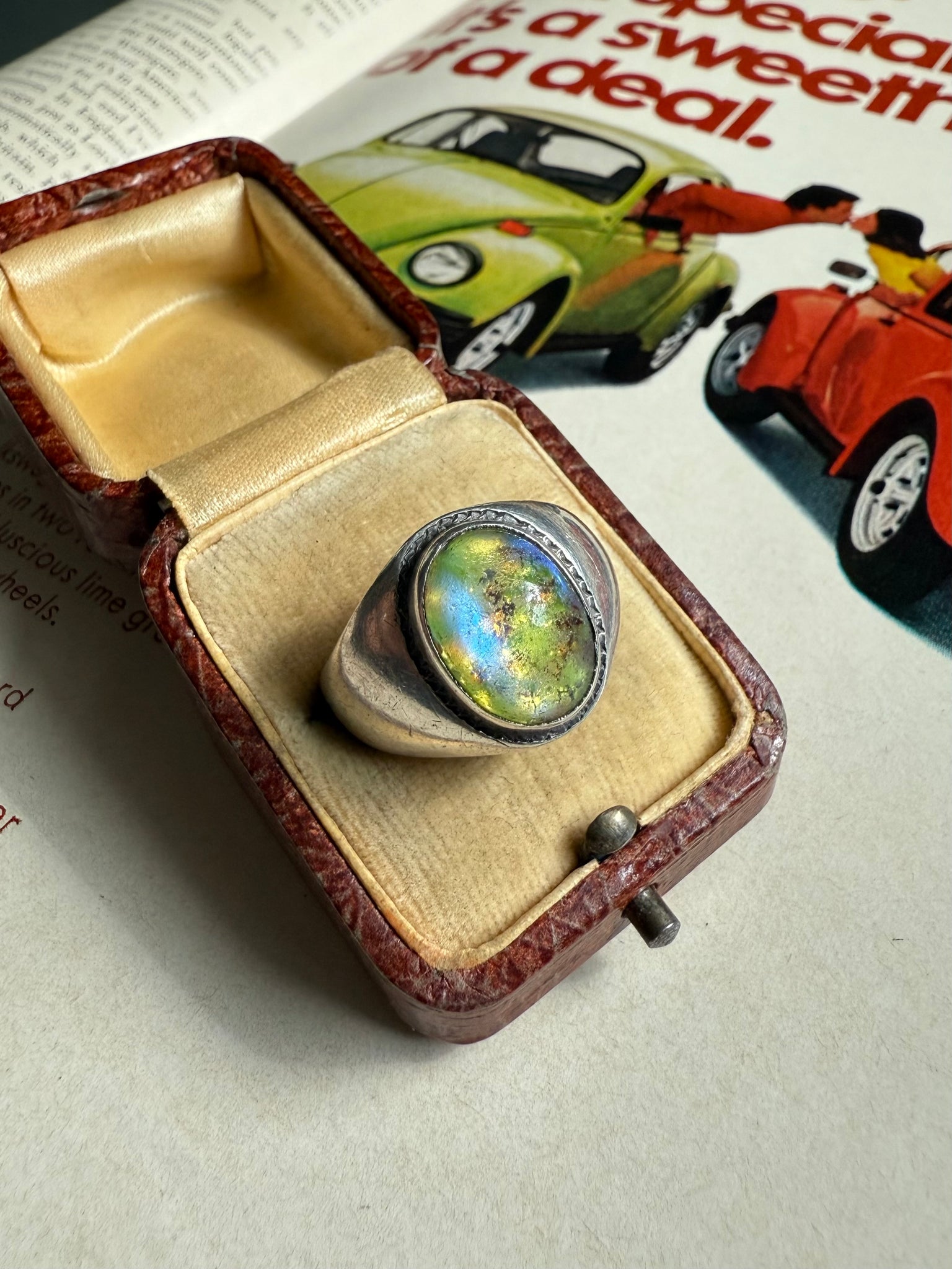 Chunky Green Stone Sterling Silver Ring Size 12.25