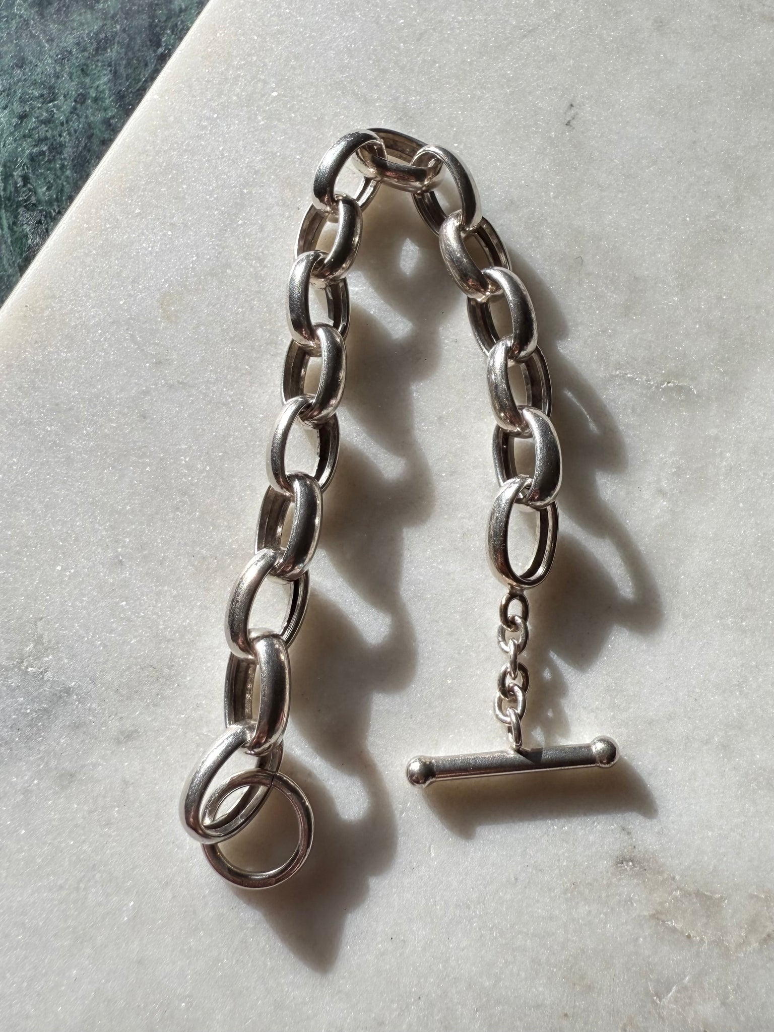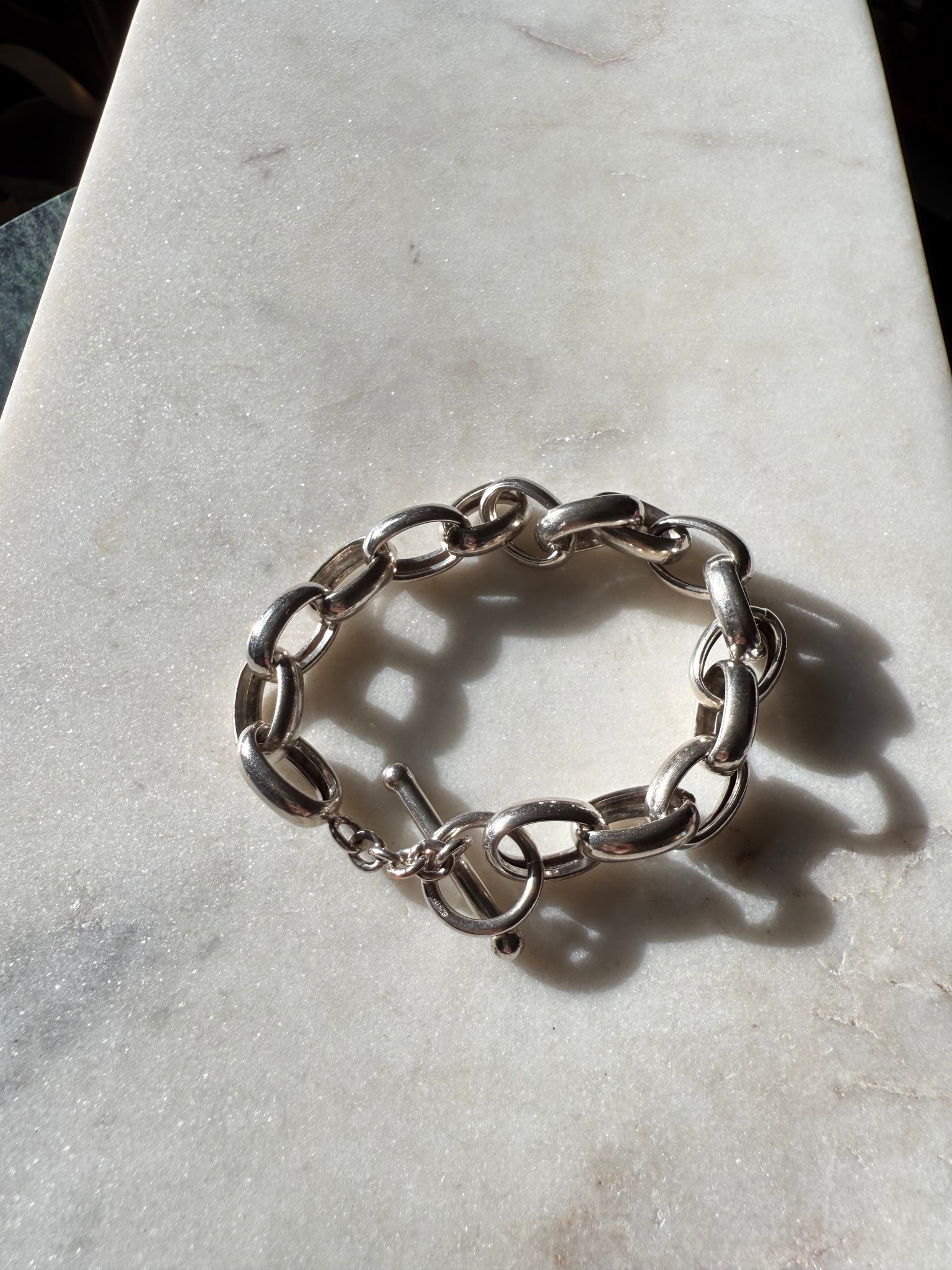 Chunky Oval Link Sterling Silver Toggle Clasp Bracelet 7.75”