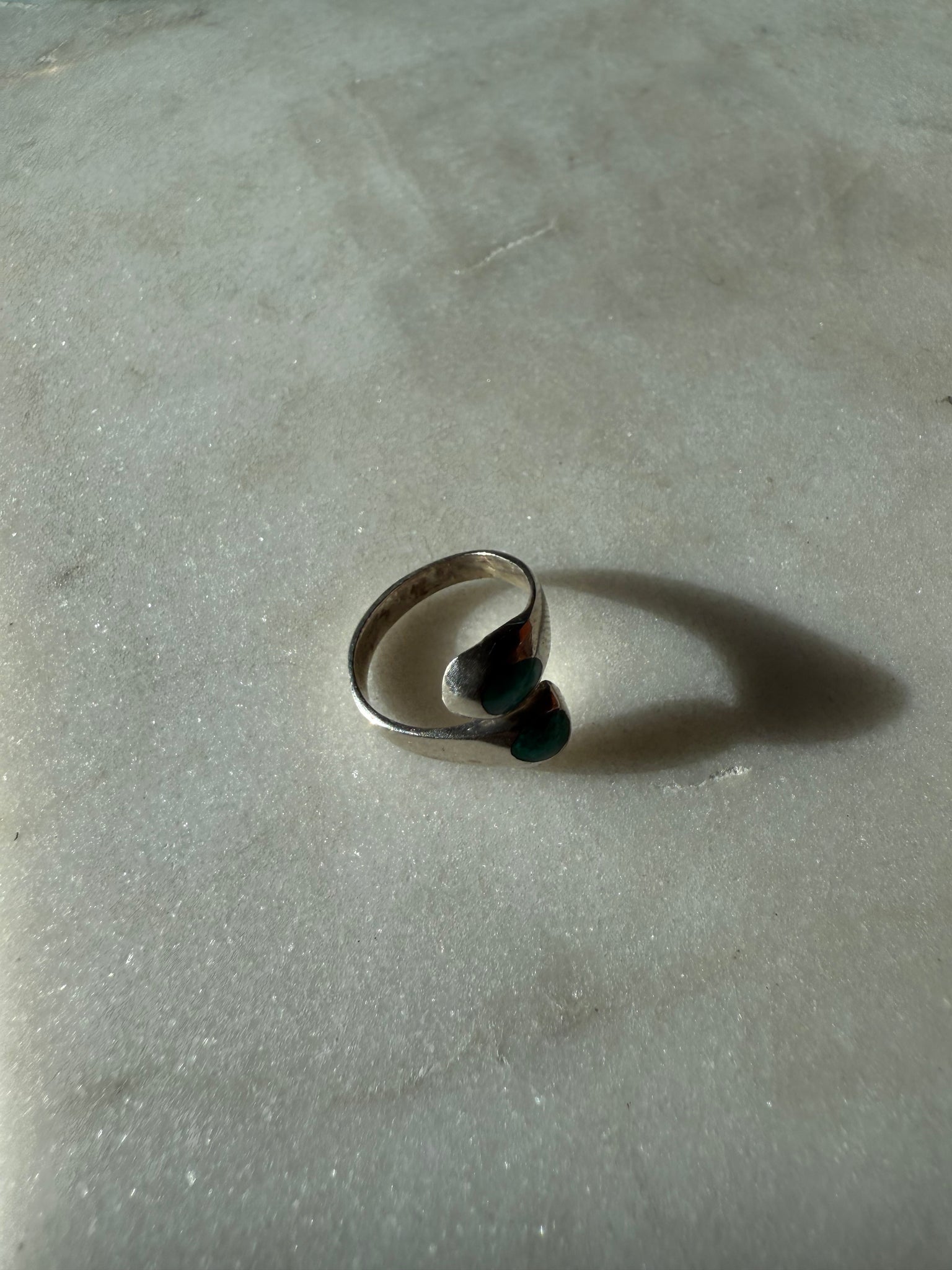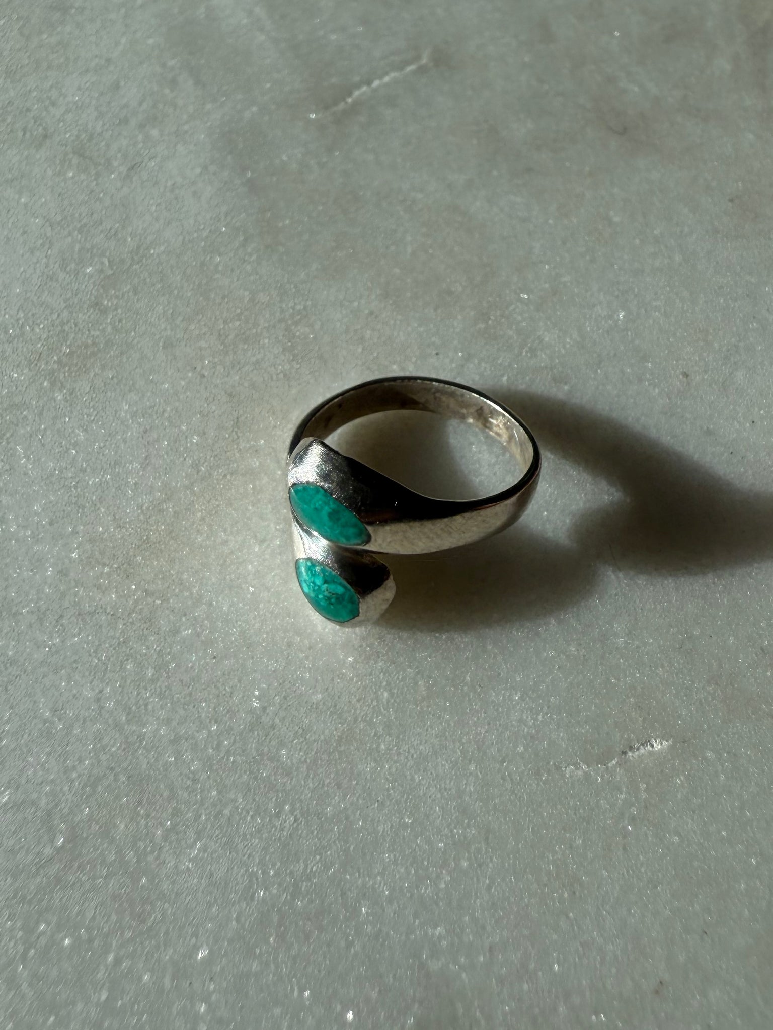 Crushed Turquoise Sterling Silver Bypass Ring Size 3