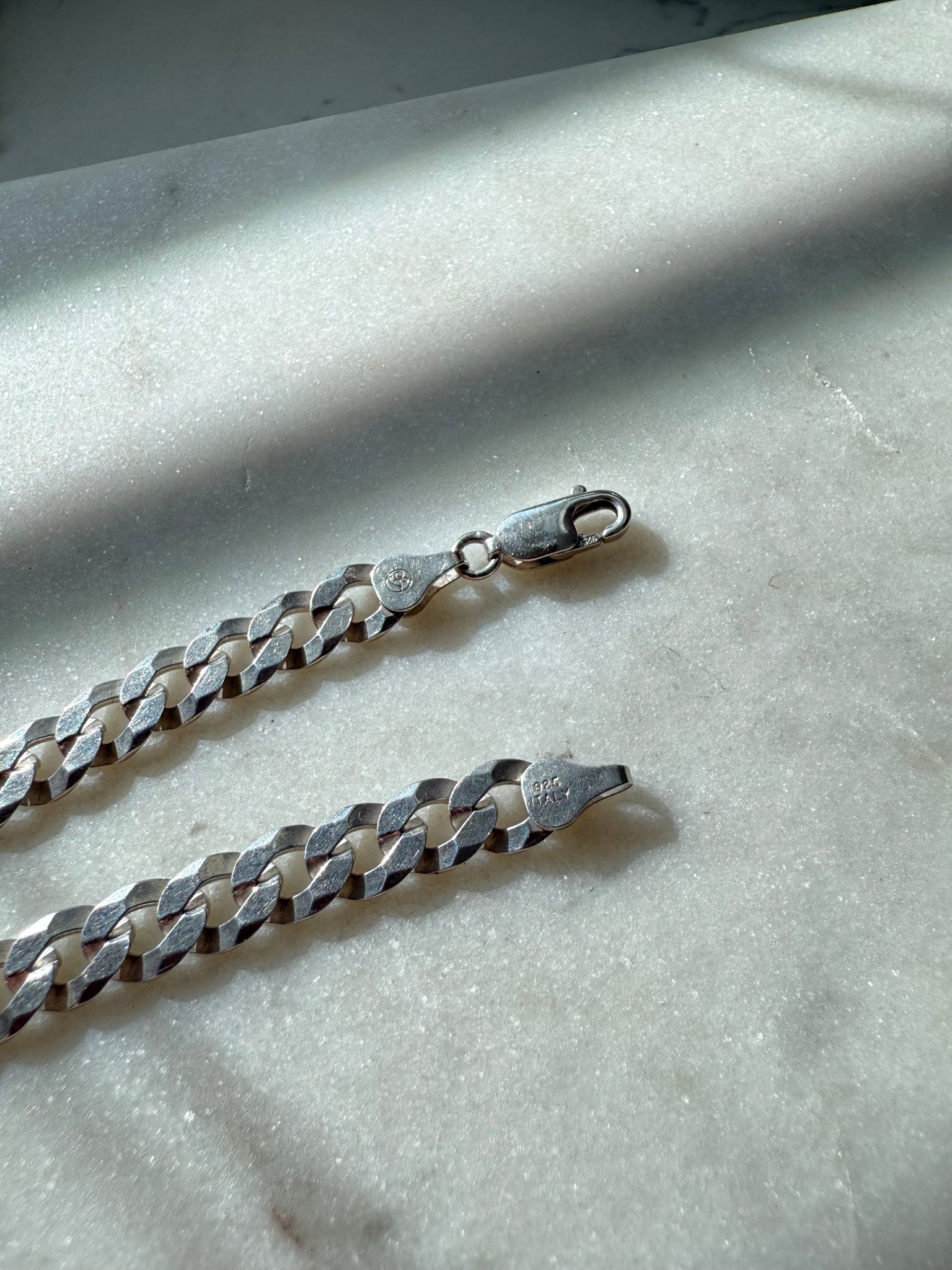 Cuban Curb Link Sterling Silver Bracelet 7”