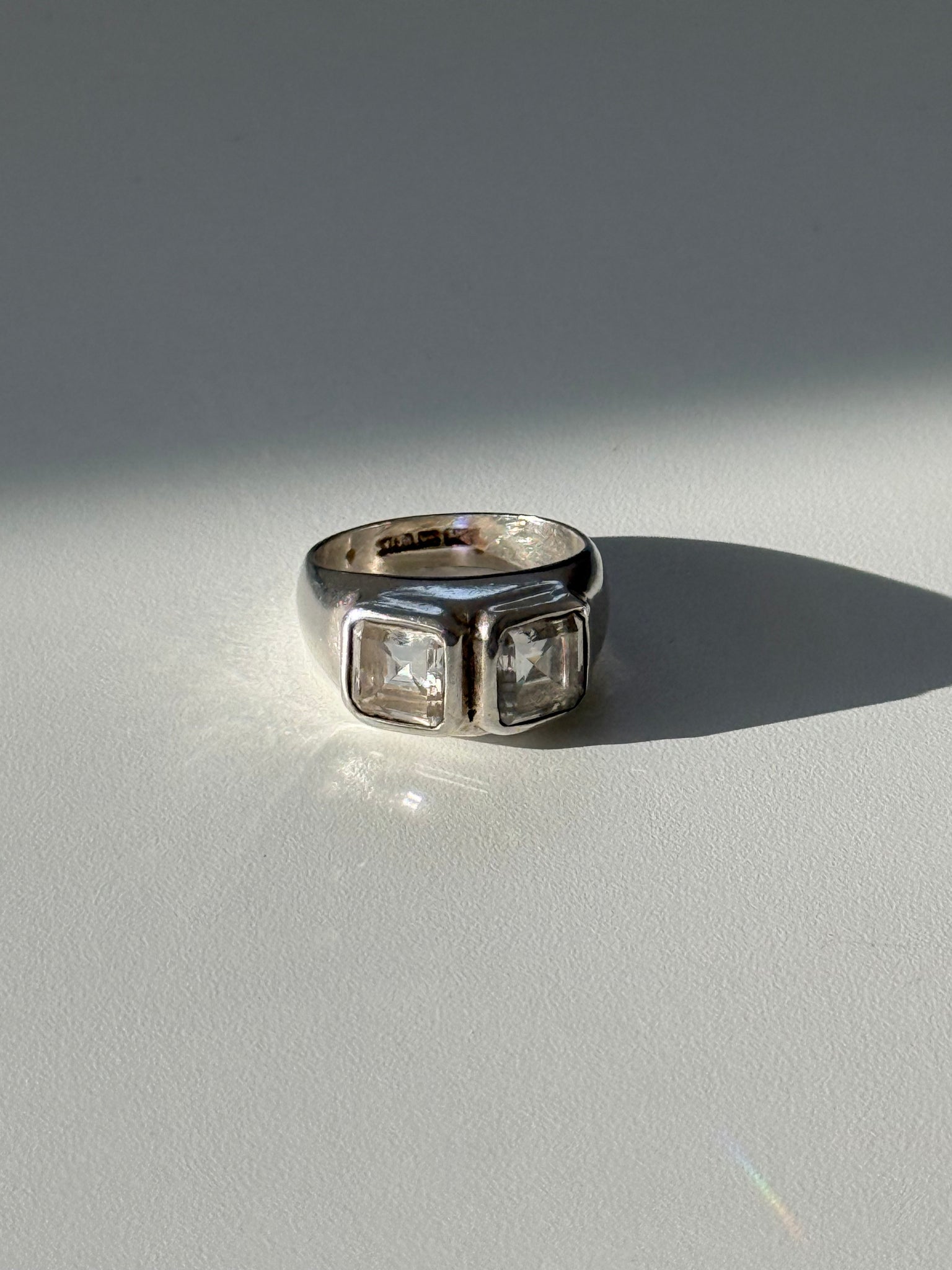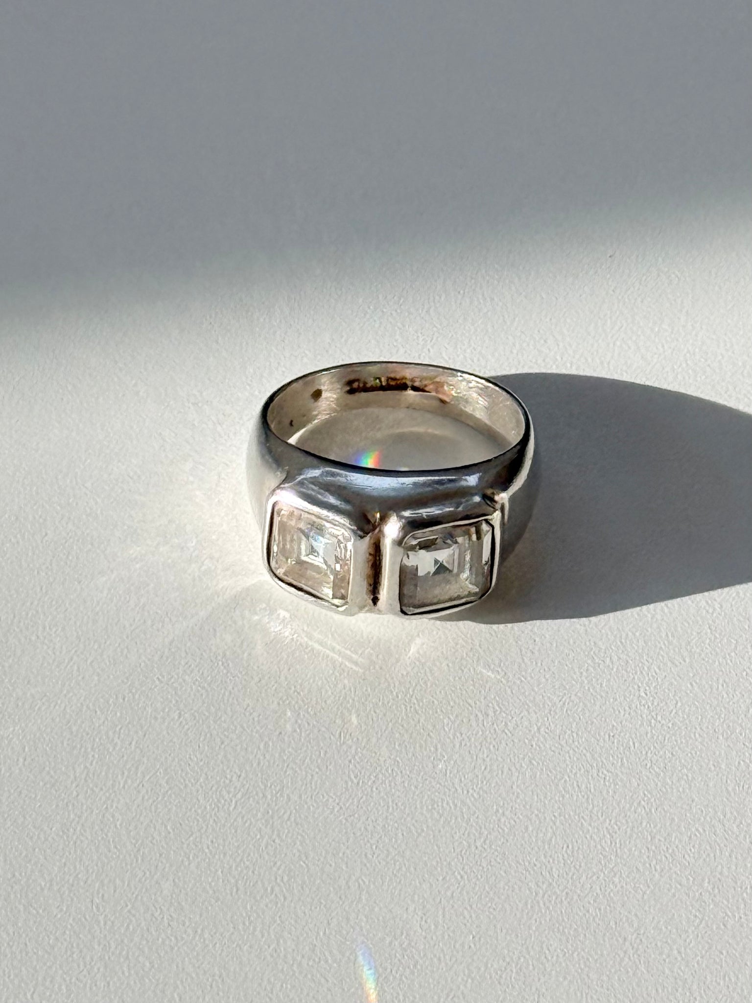 Double Quartz Sterling Silver Ring Size 7.75