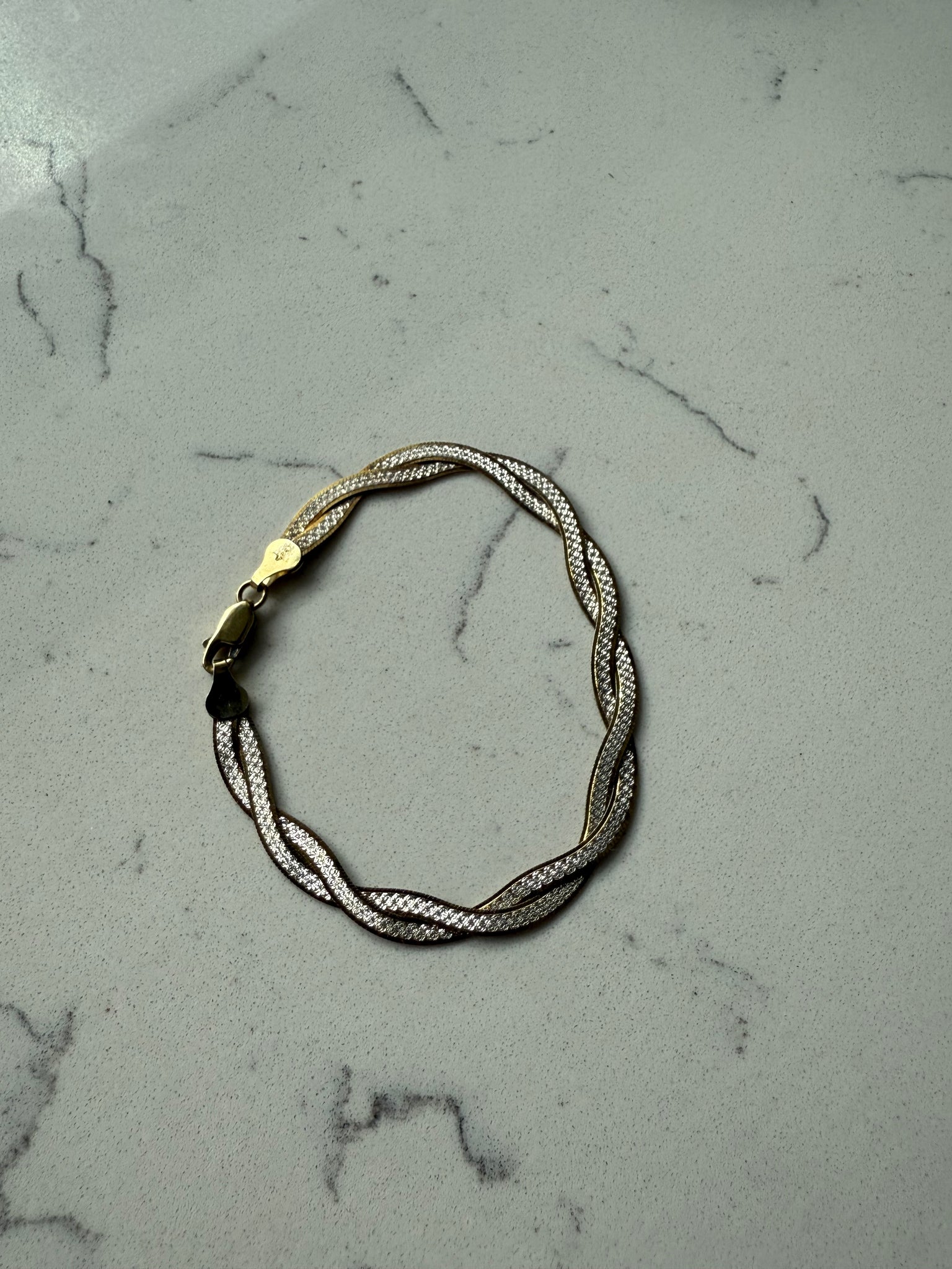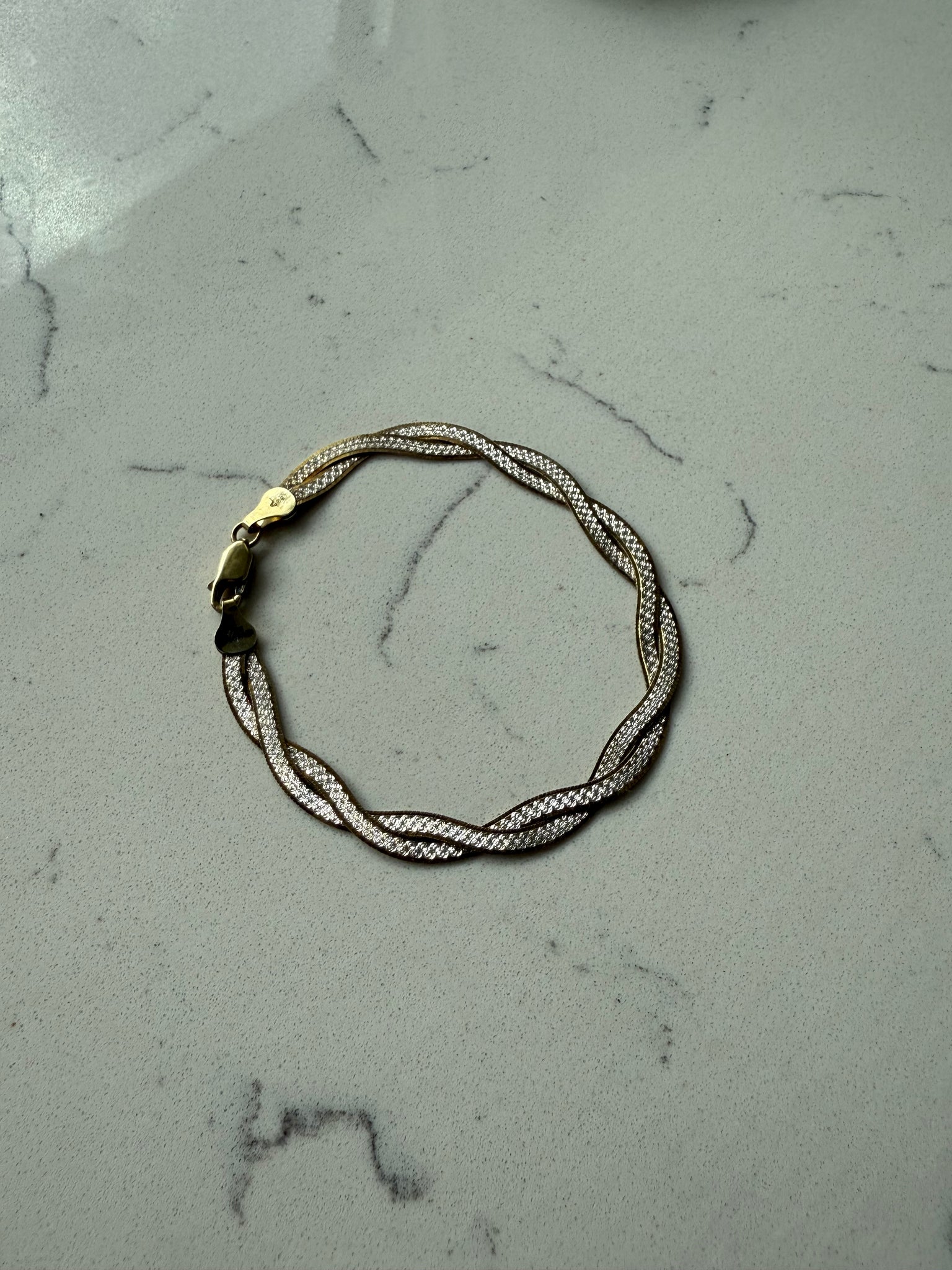 Double Sided Gold Vermeil Braided Herringbone Sterling Bracelet 7.5”