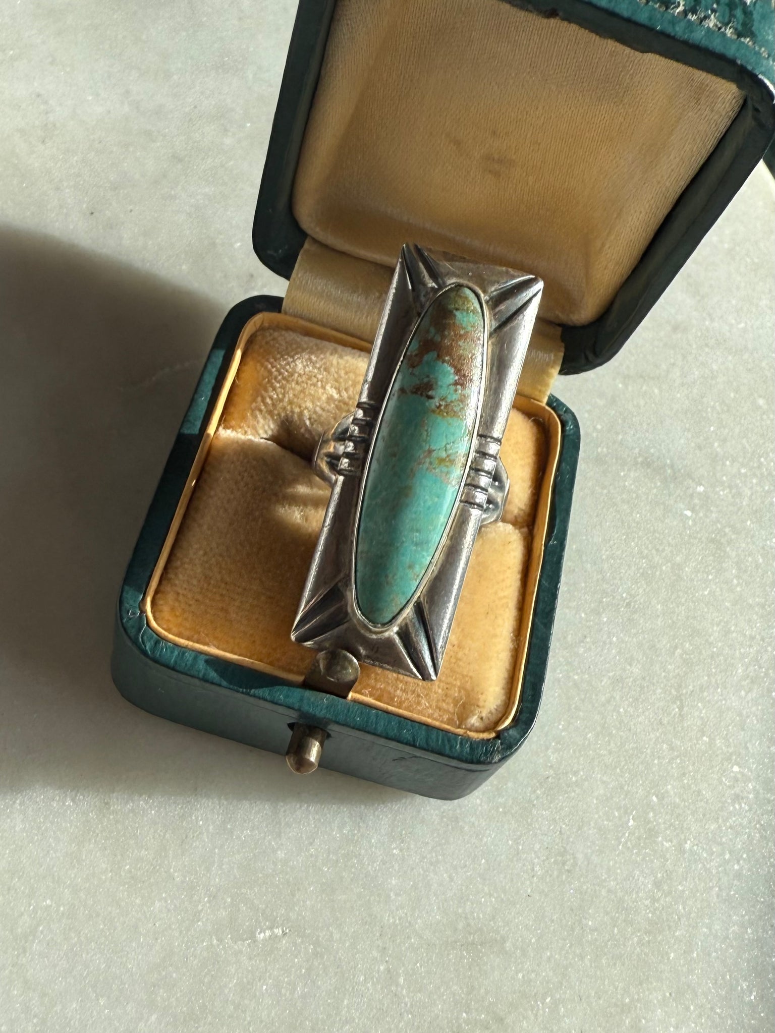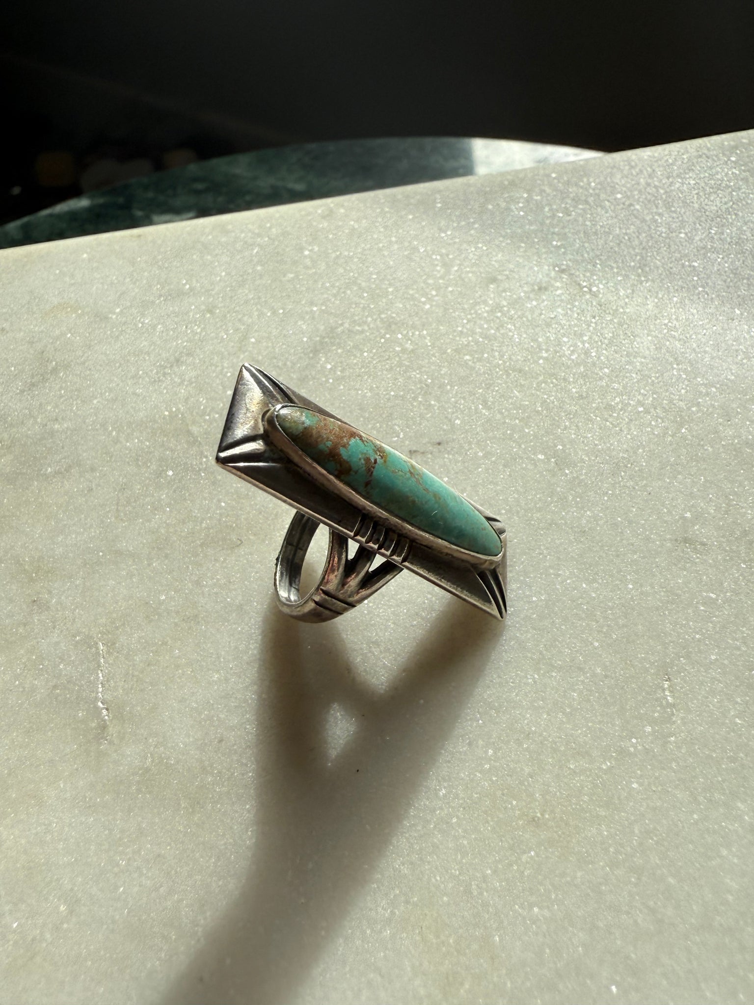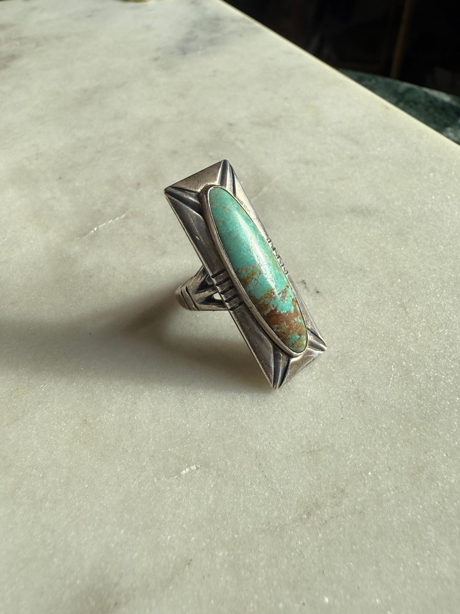 Elongated Turquoise Sterling Silver Ring Size 4.75