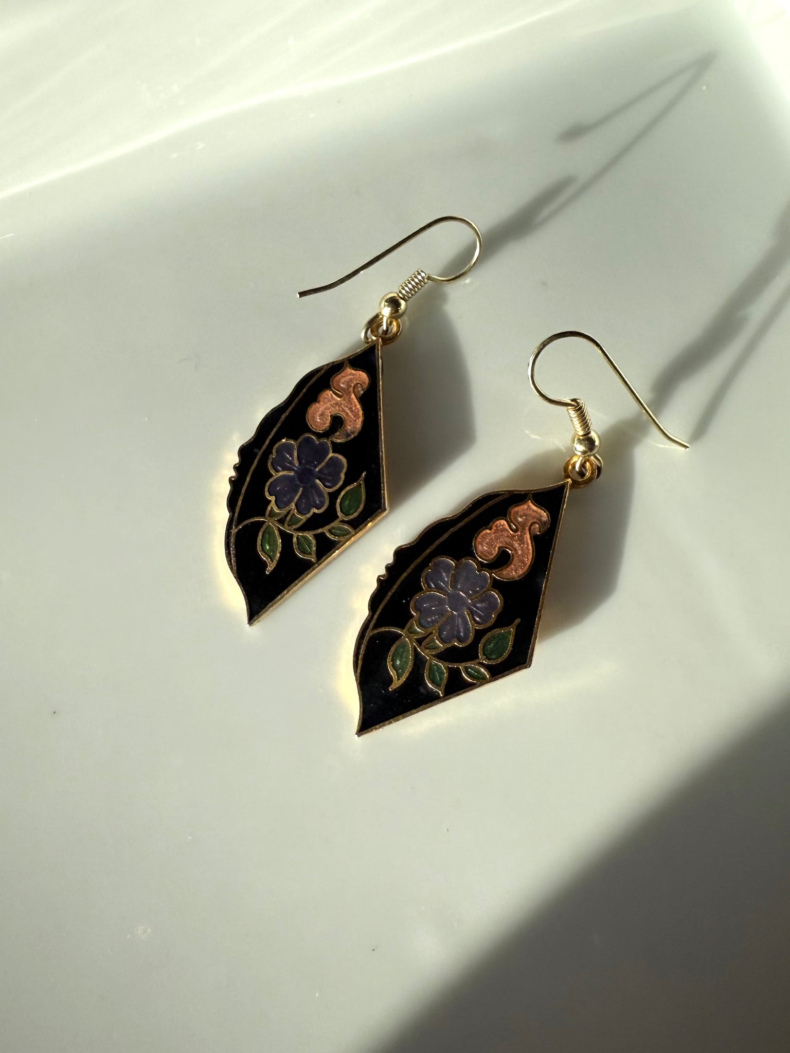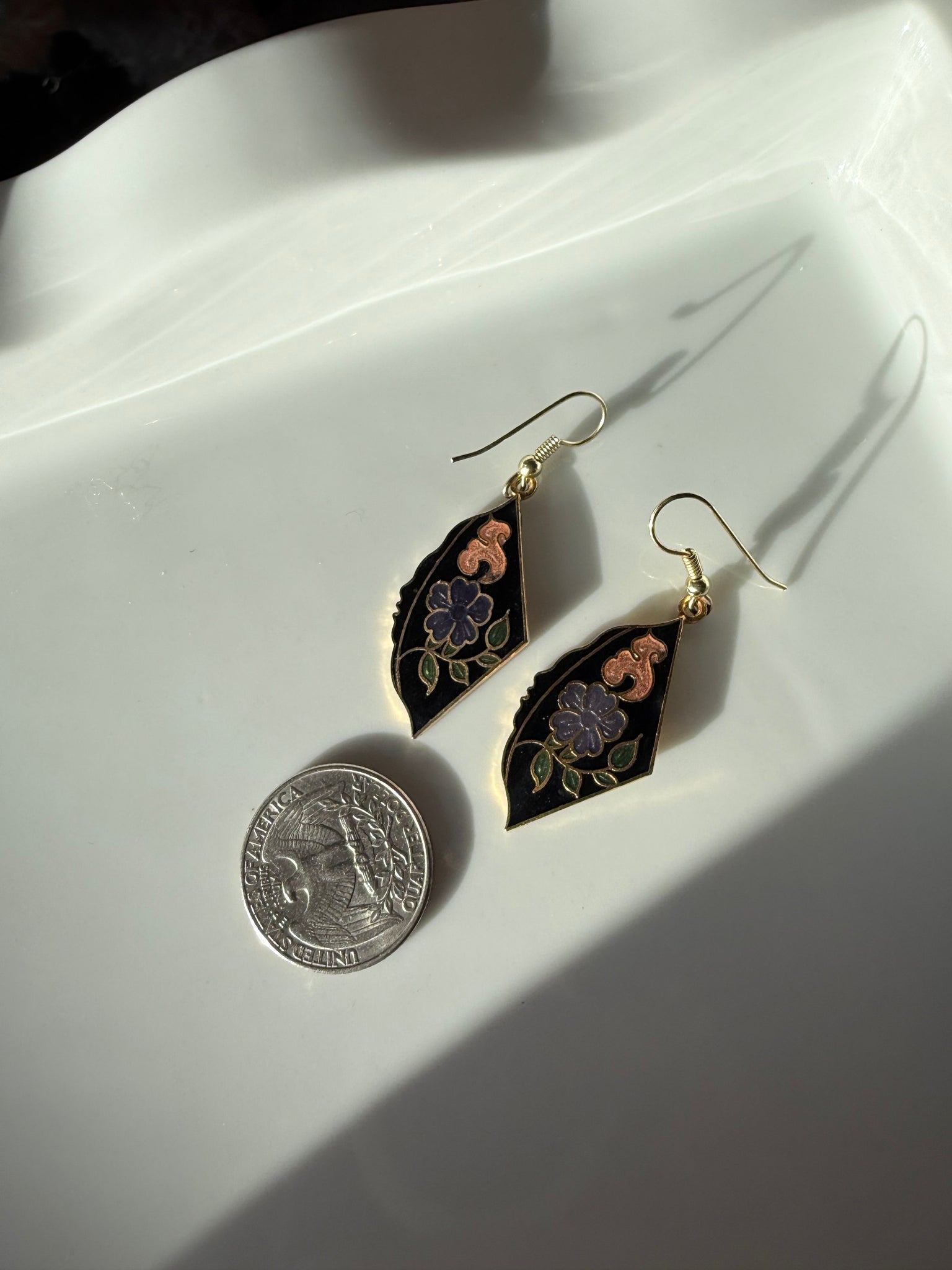 Vintage Cloisonné Enamel Floral Gold Plated Earrings