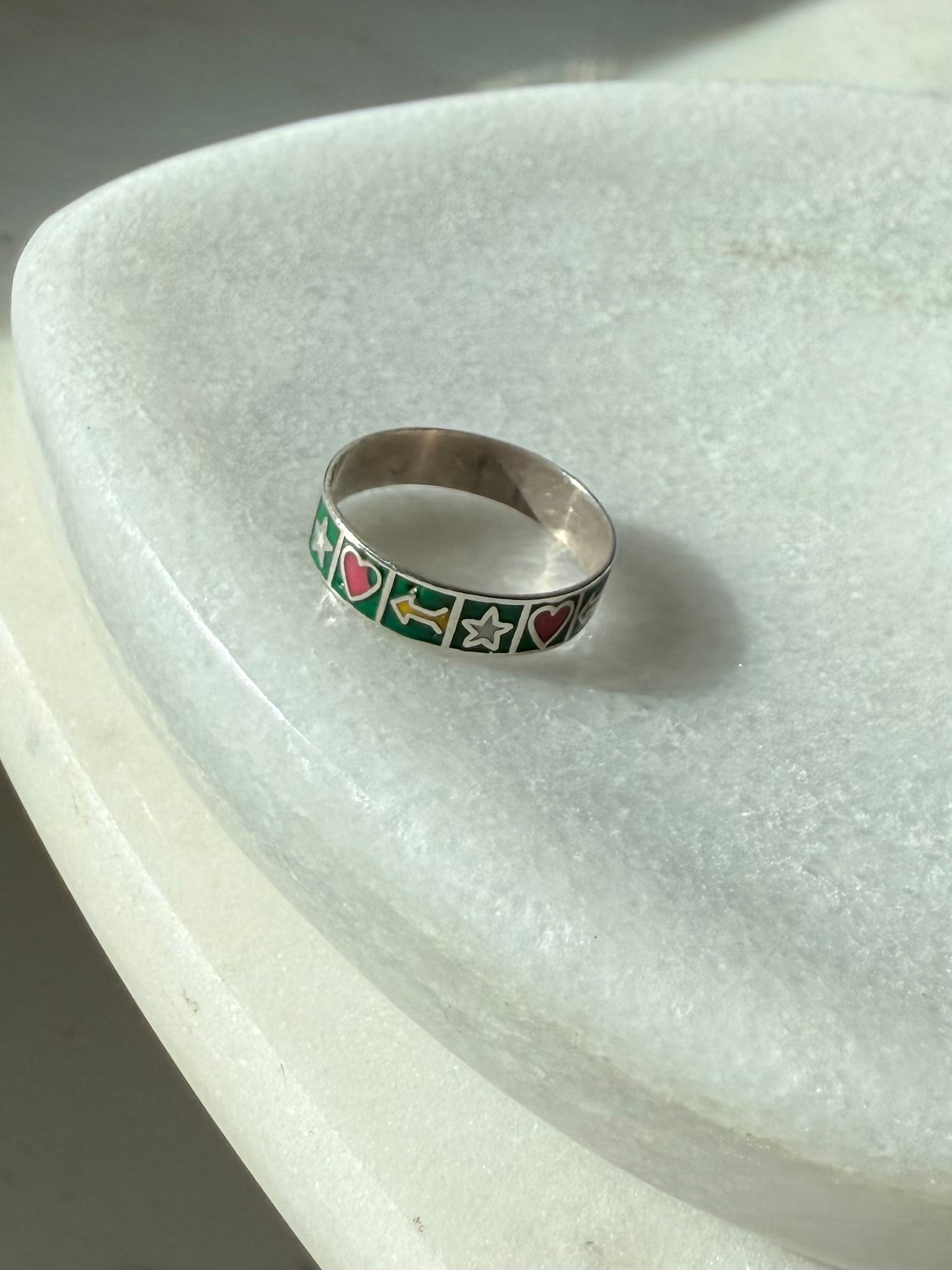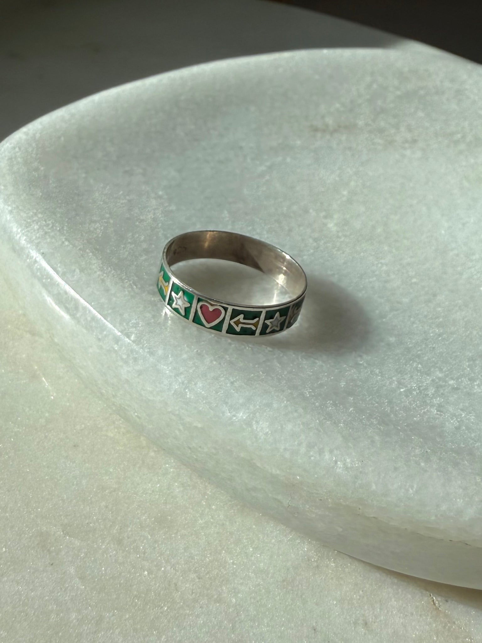 Enamel Heart Star Sterling Silver Ring Size 7