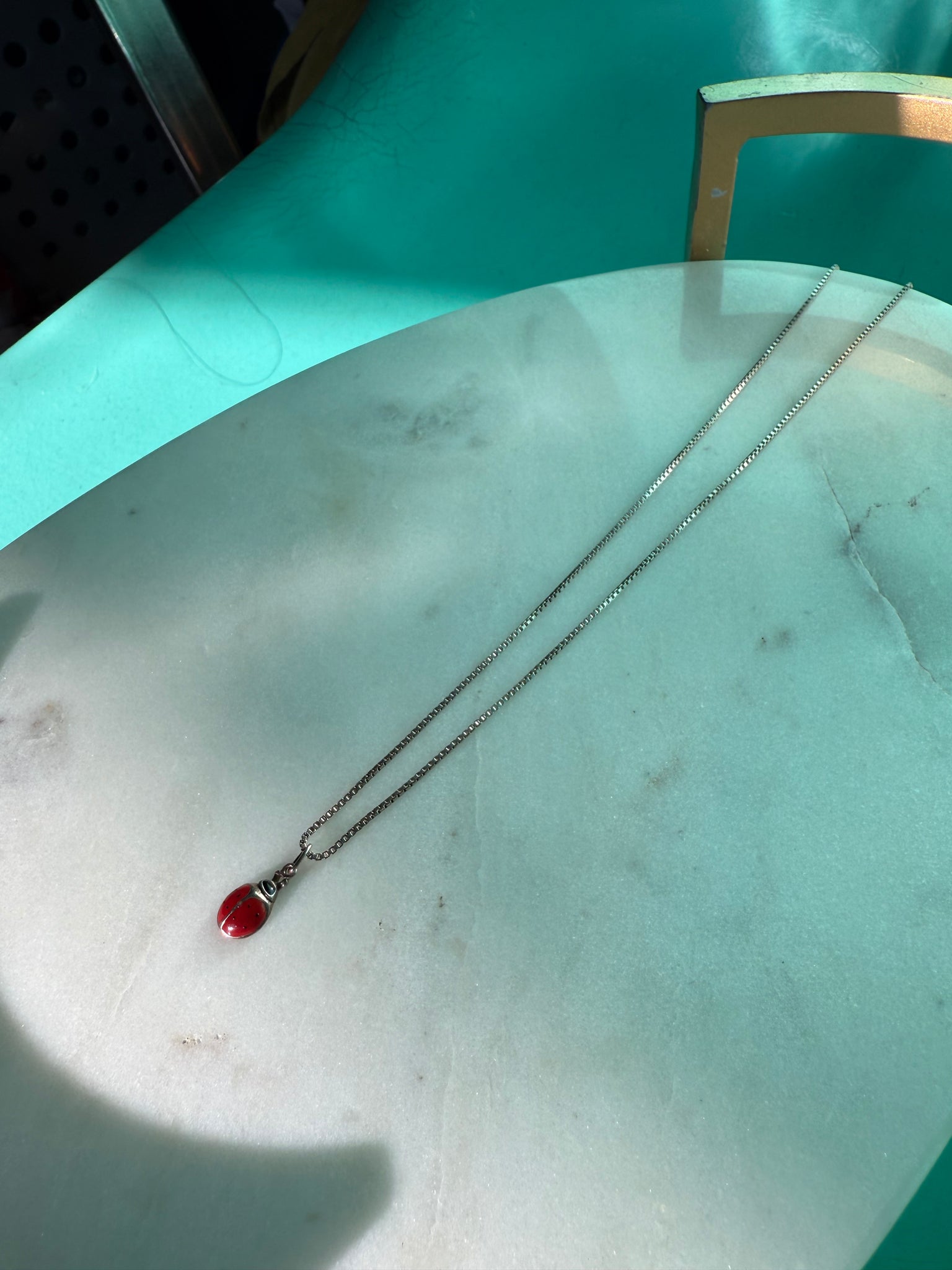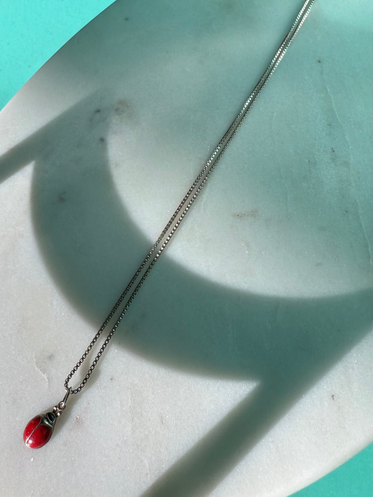 3.6 grams (charm and chain) both are .925 Sterling silver • chain measures 20” length • ladybug is 7.5mm