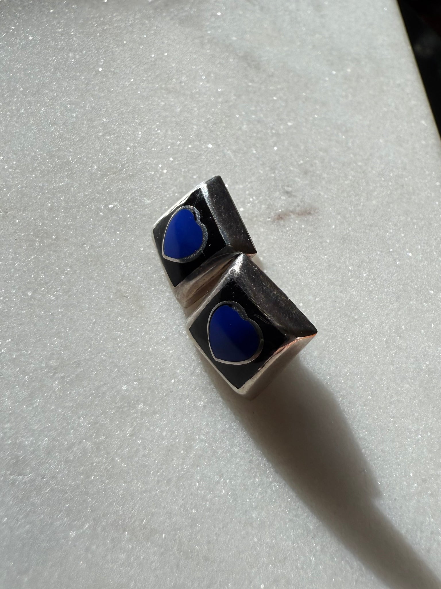 Blue & Black Enamel Sterling Silver Push Back Earrings