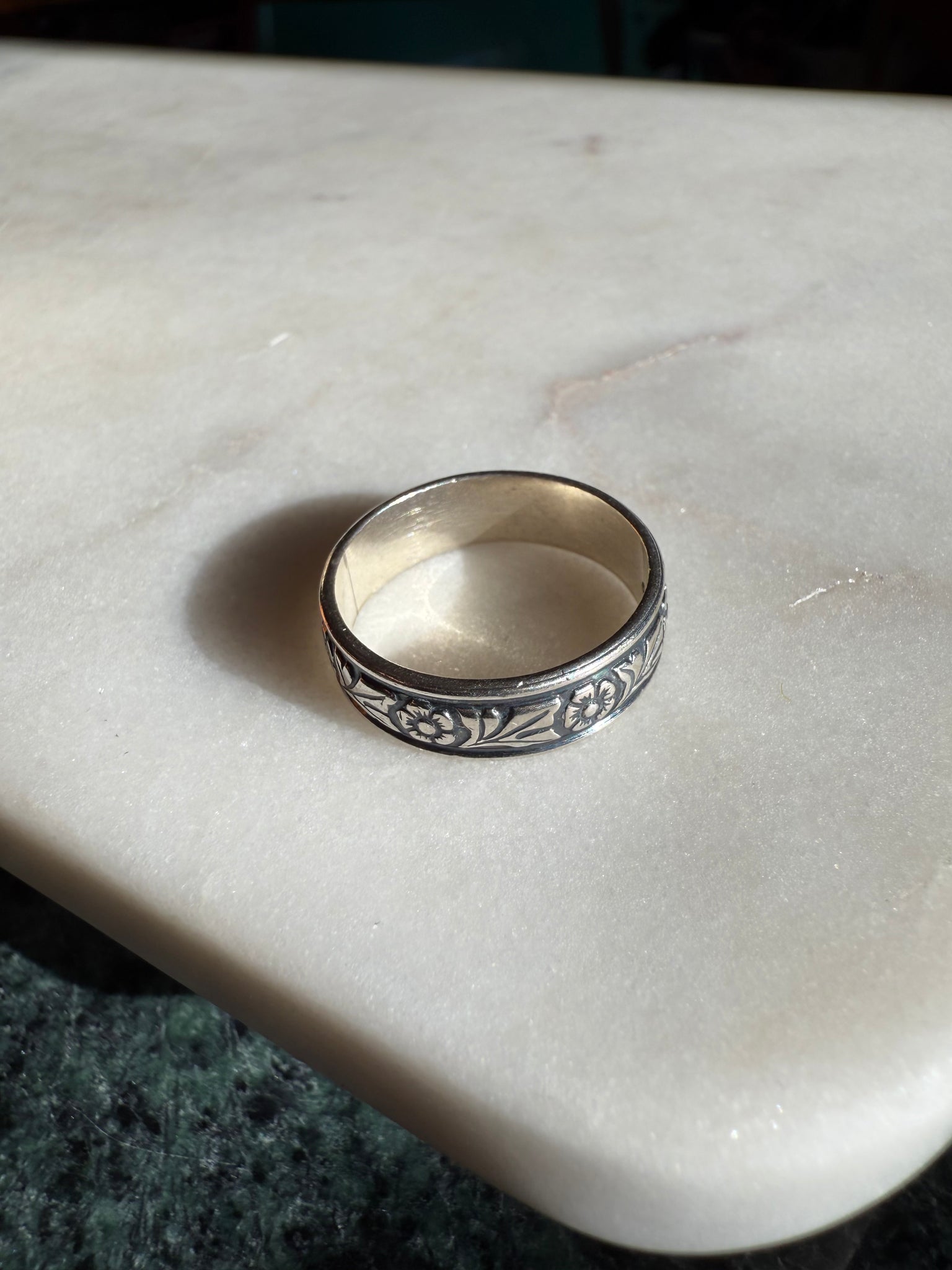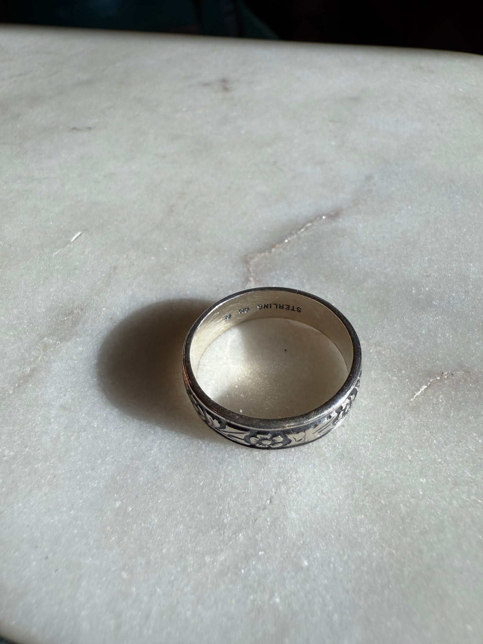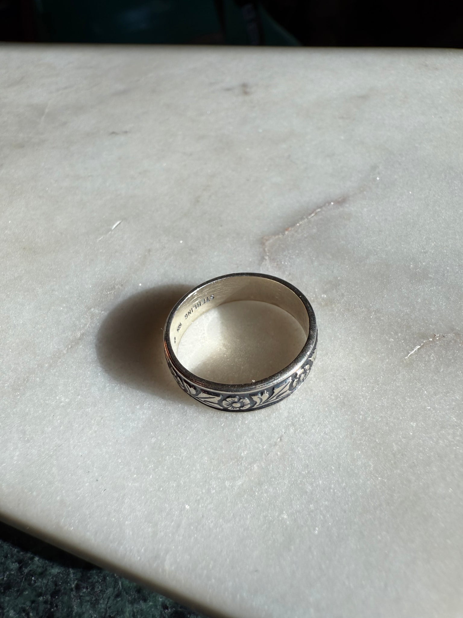 Floral Etched Sterling Silver Band Size 9