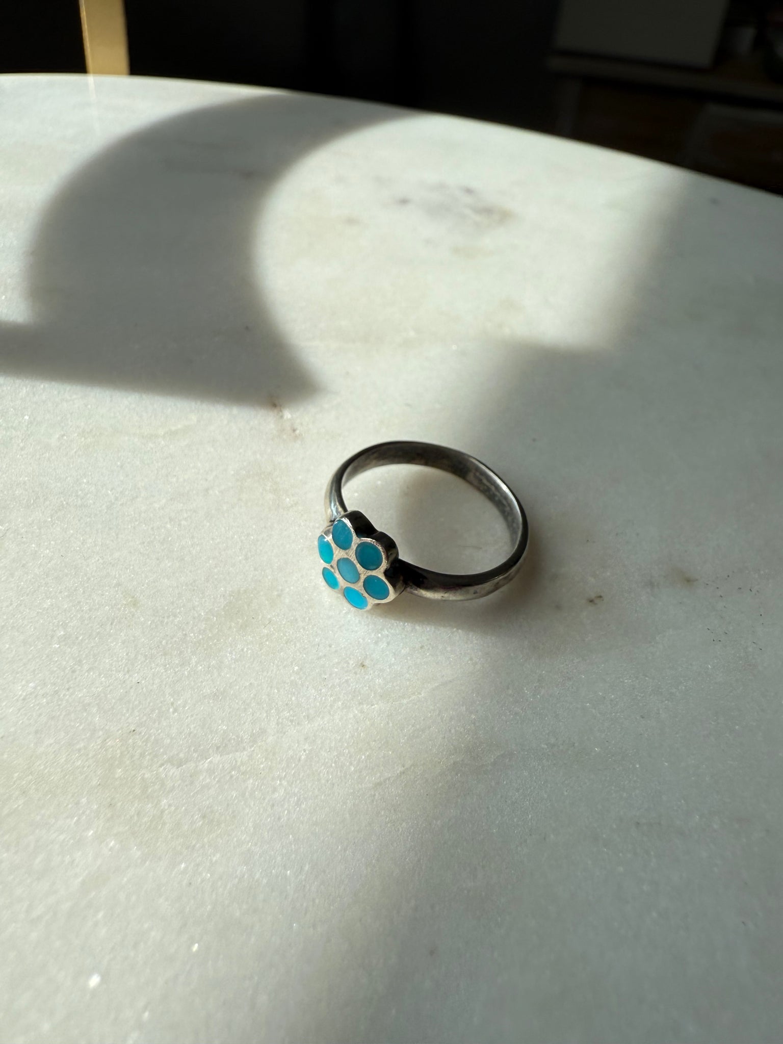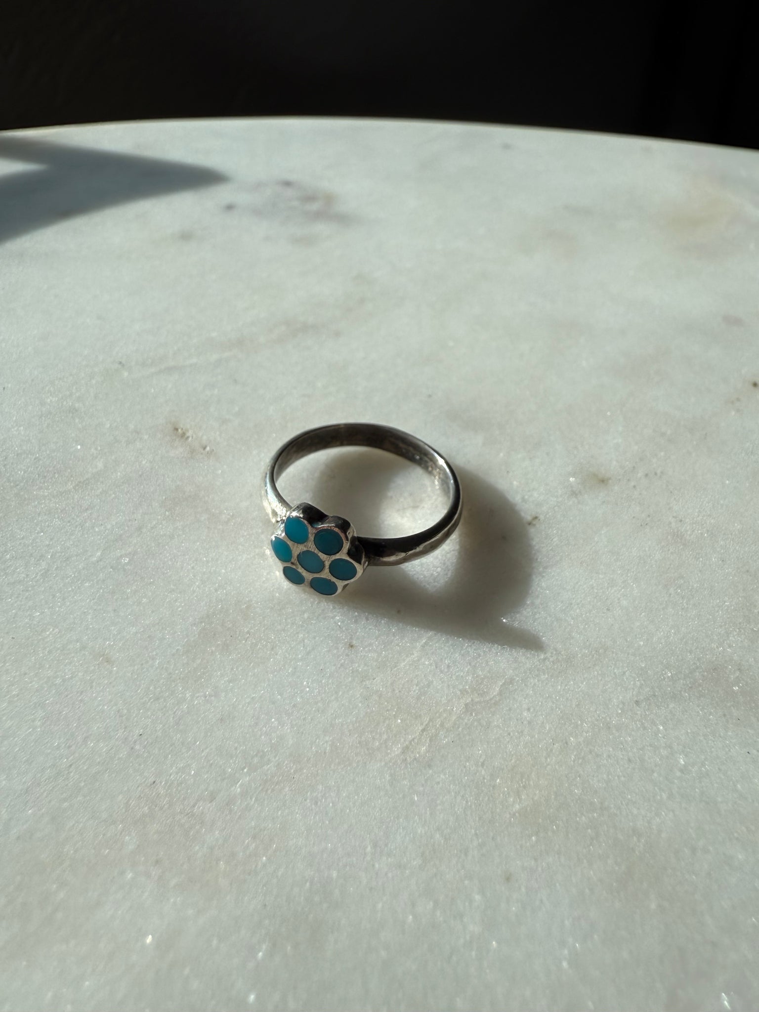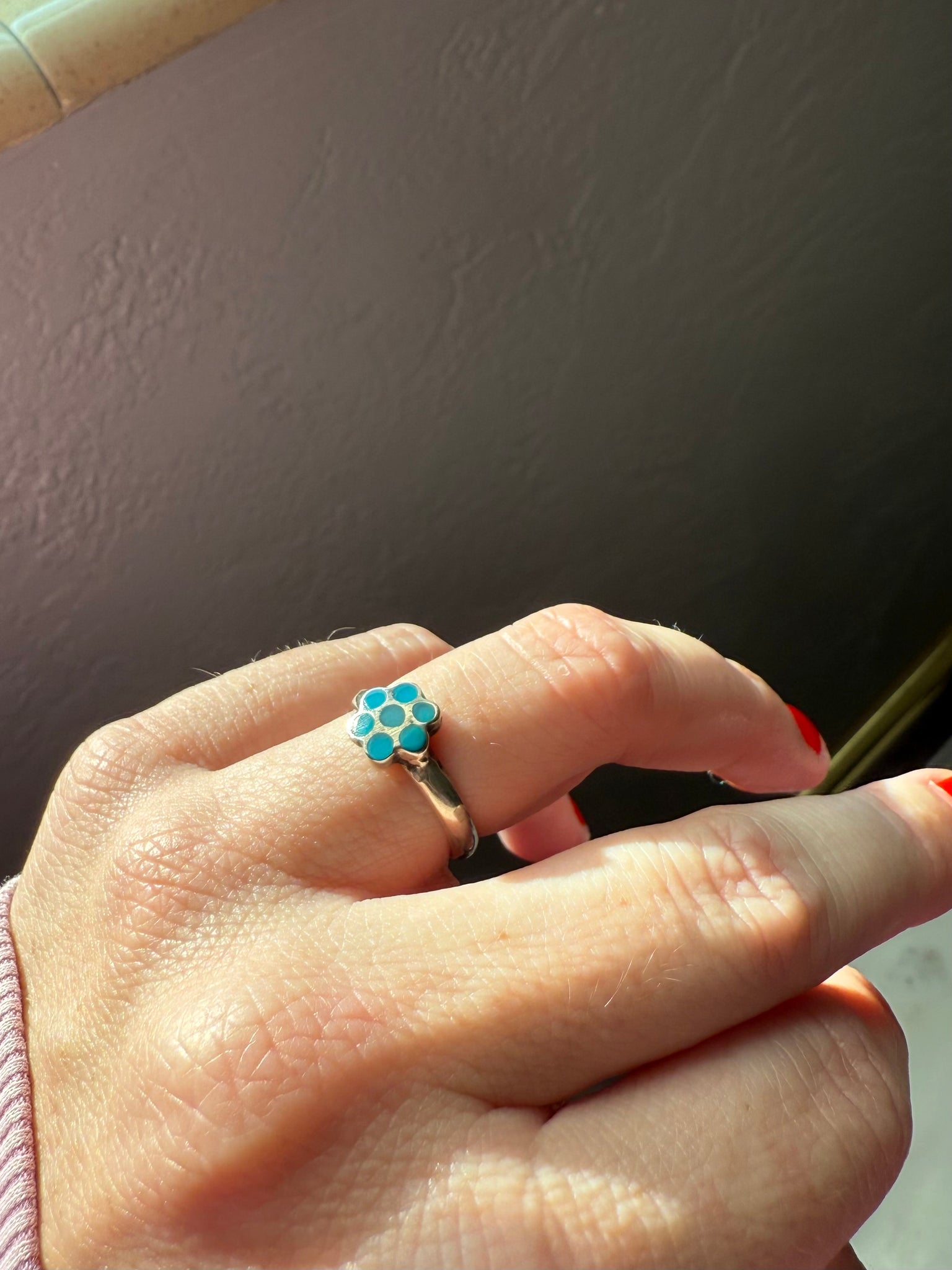 Turquoise Inlay Flower Sterling Silver Vintage Ring Size 6.25