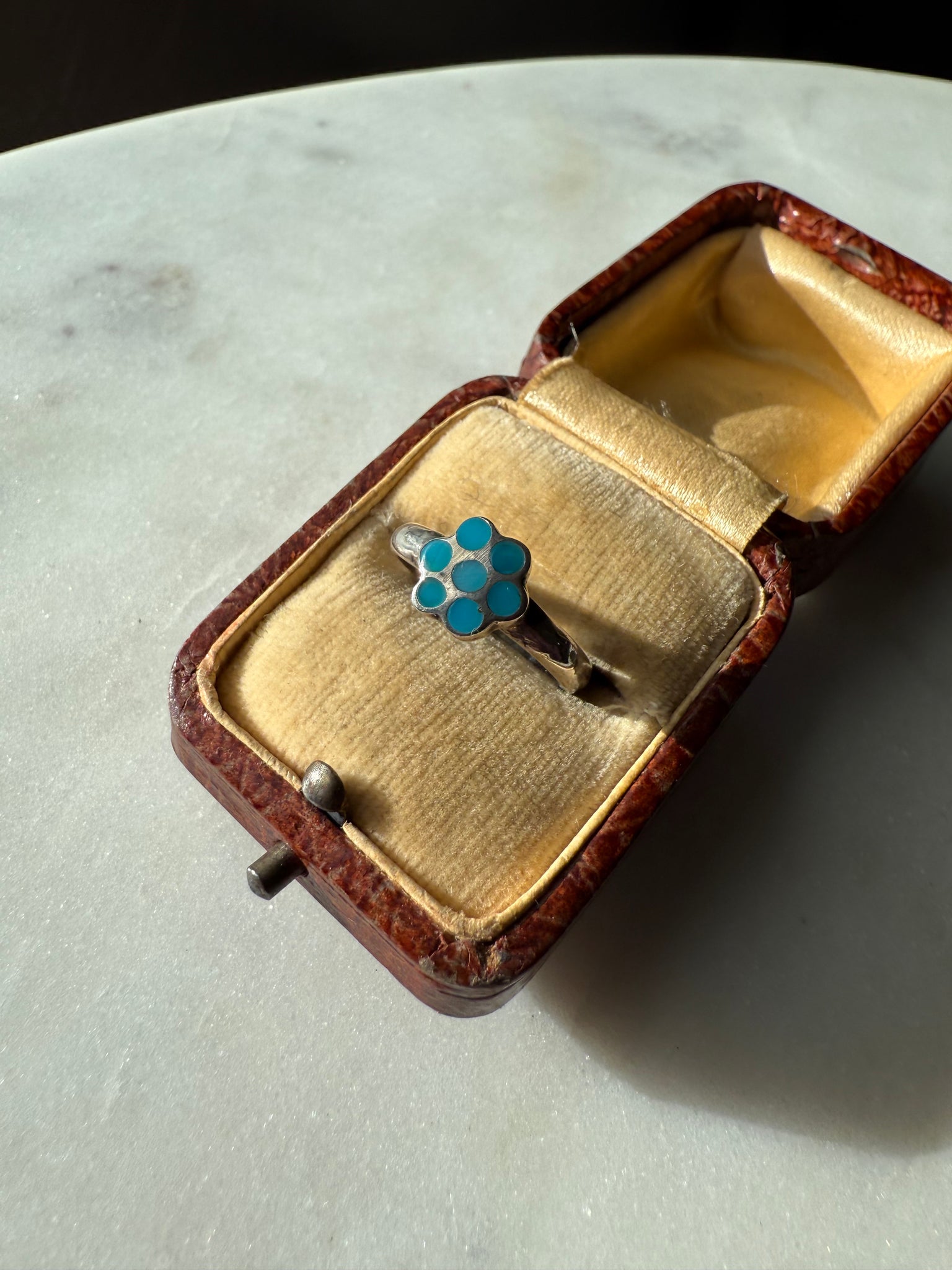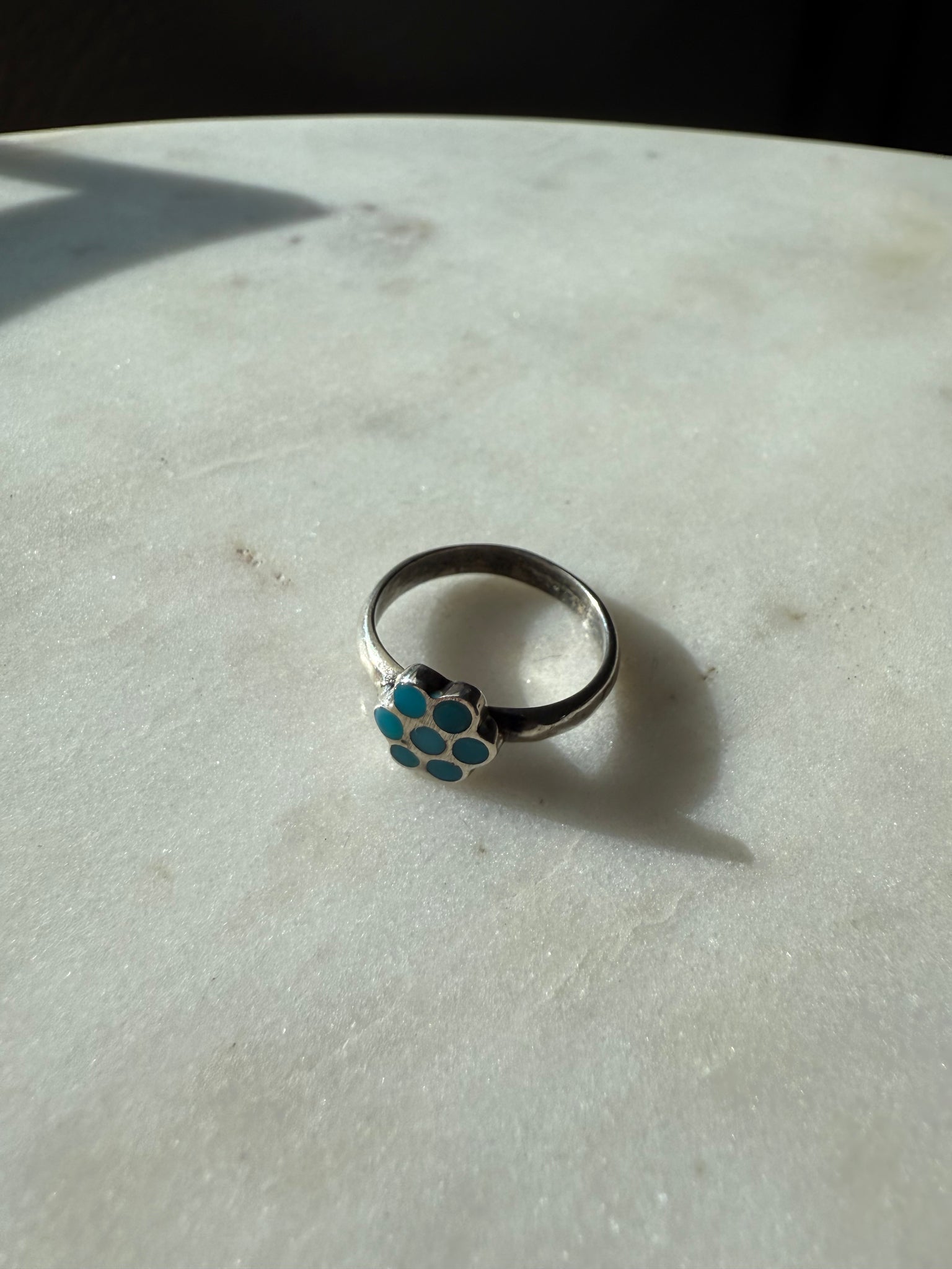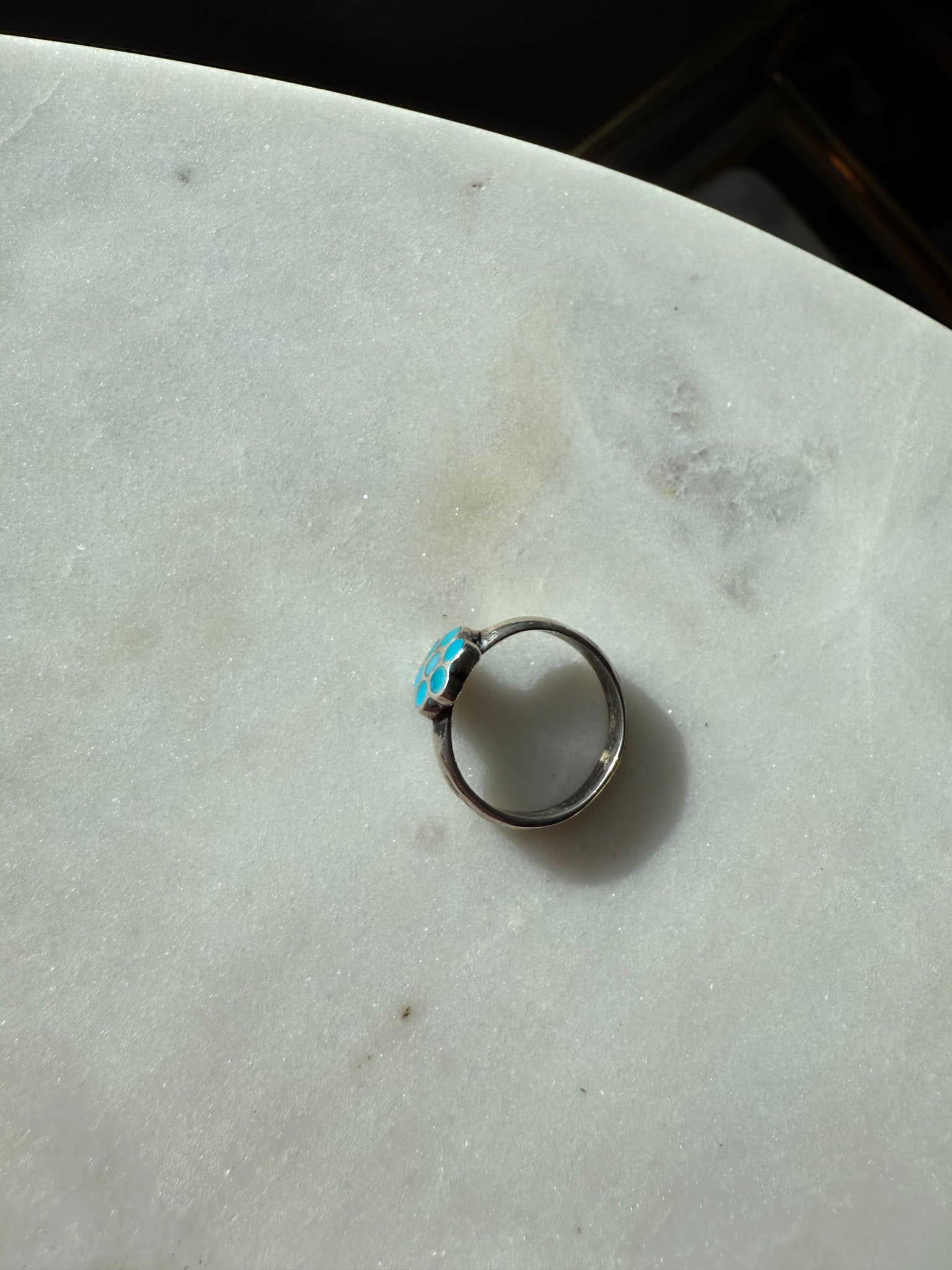 Turquoise Inlay Flower Sterling Silver Vintage Ring Size 6.25