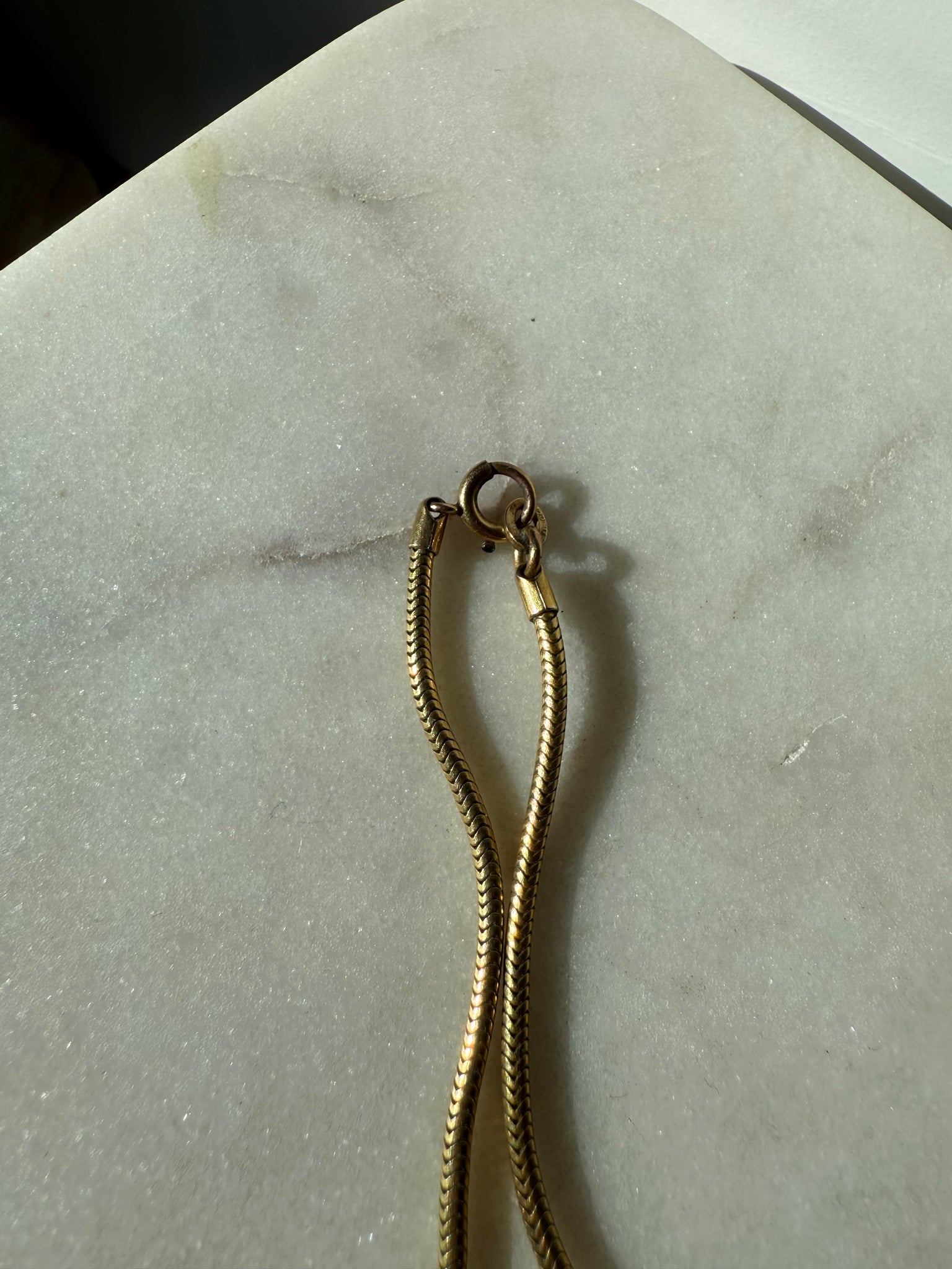 12.1 grams • front piece measures 1.85” x 1” • chain measures 16” length