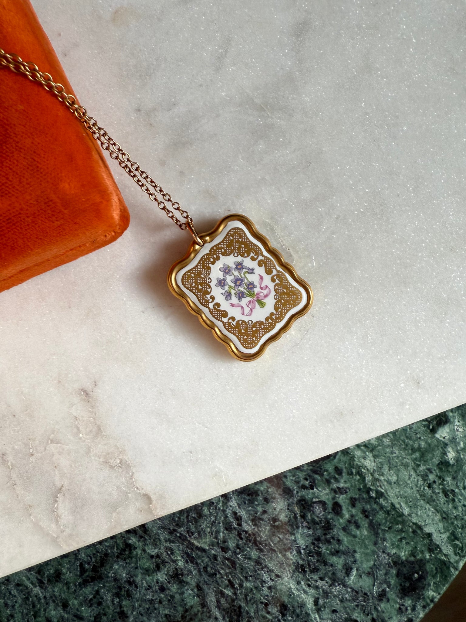 Gold plated costume jewelry • 9.6 grams • pendant measures 1.15” x 1” • chain is 20” length