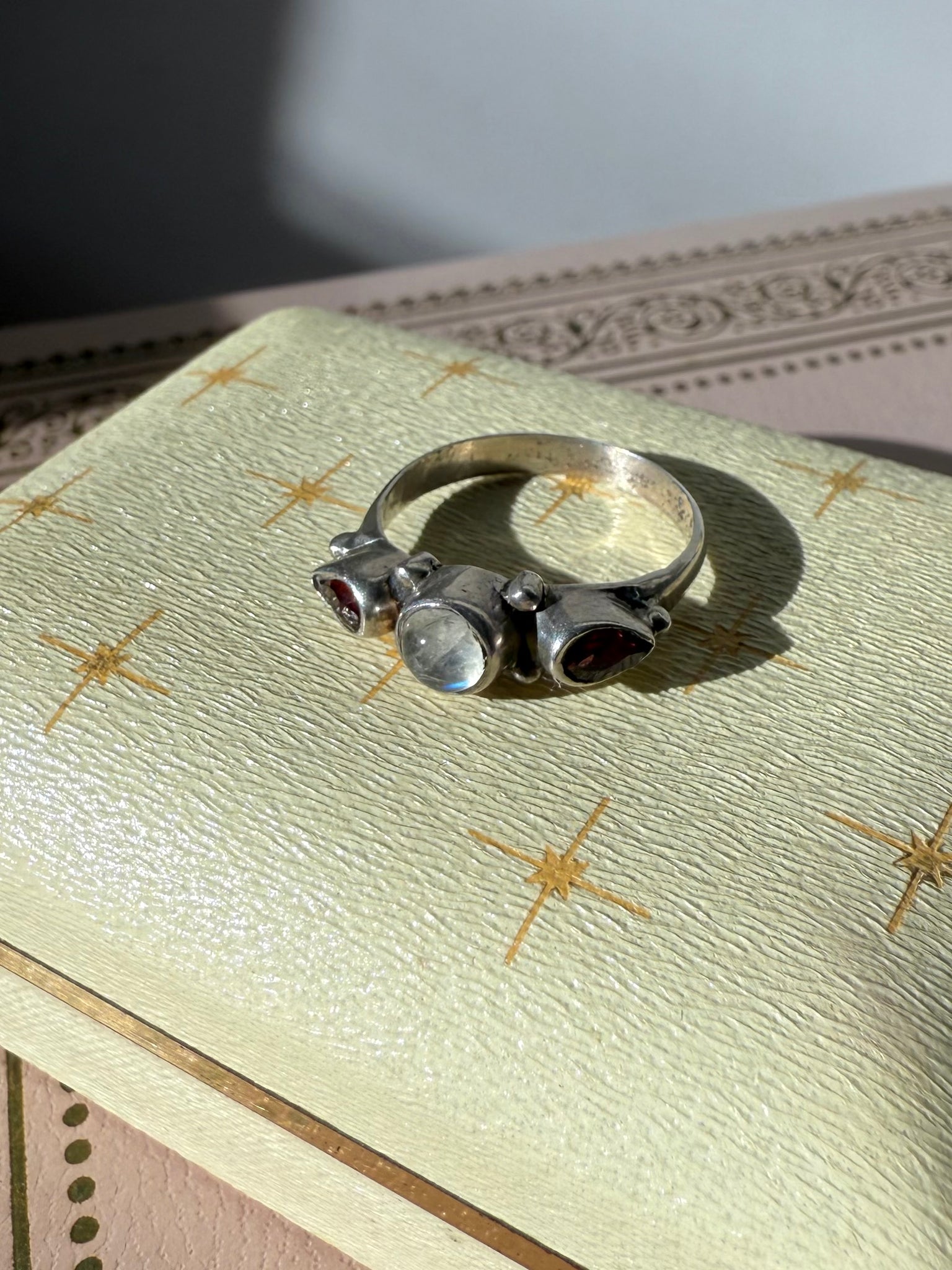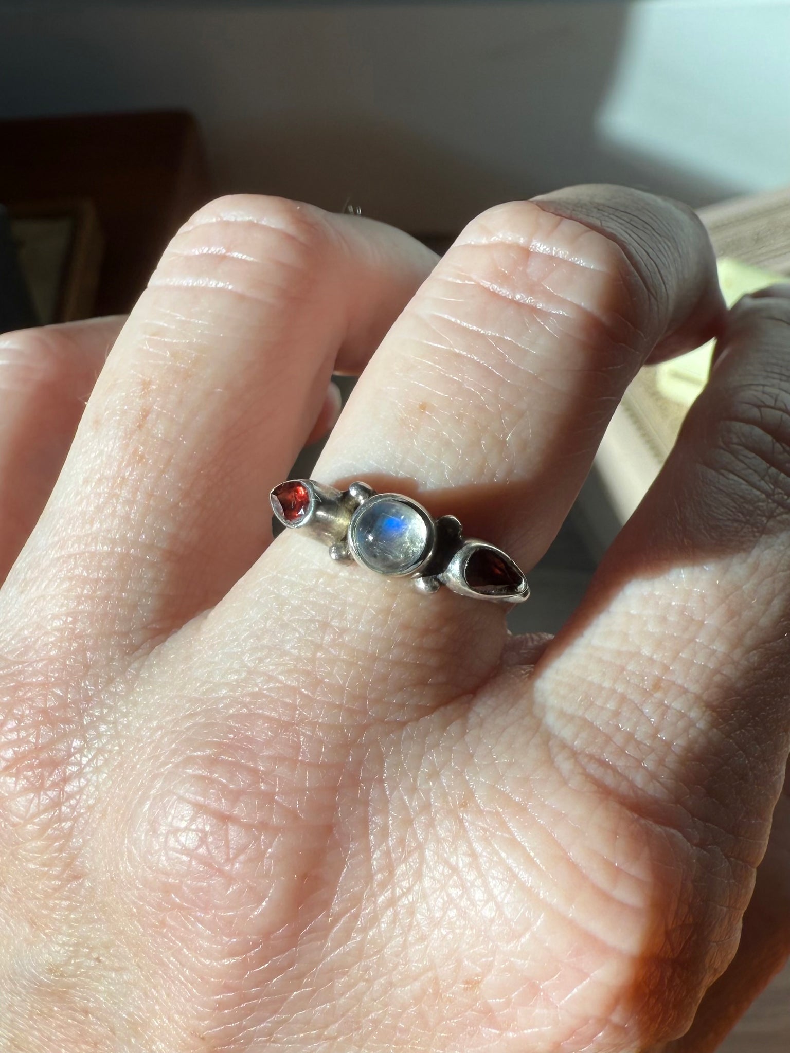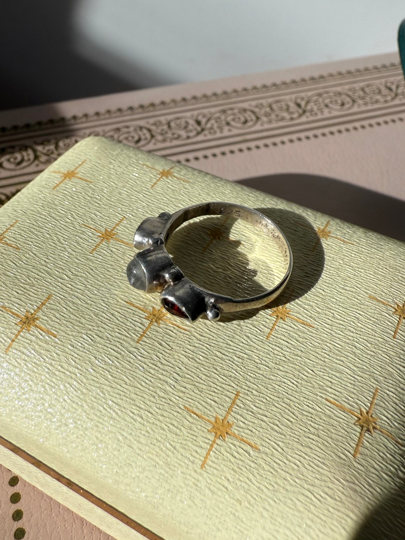 Garnet & Moonstone Sterling Silver Ring Size 7