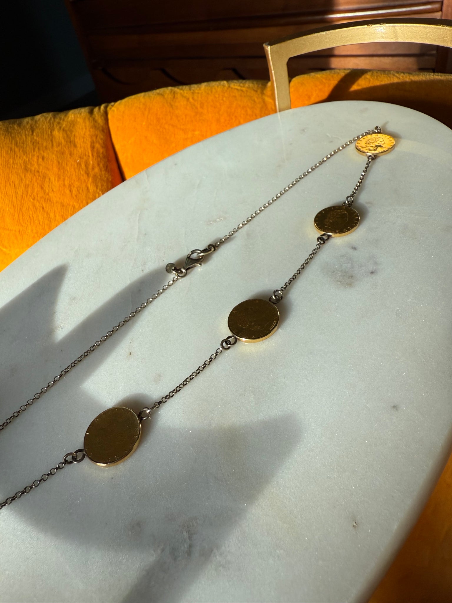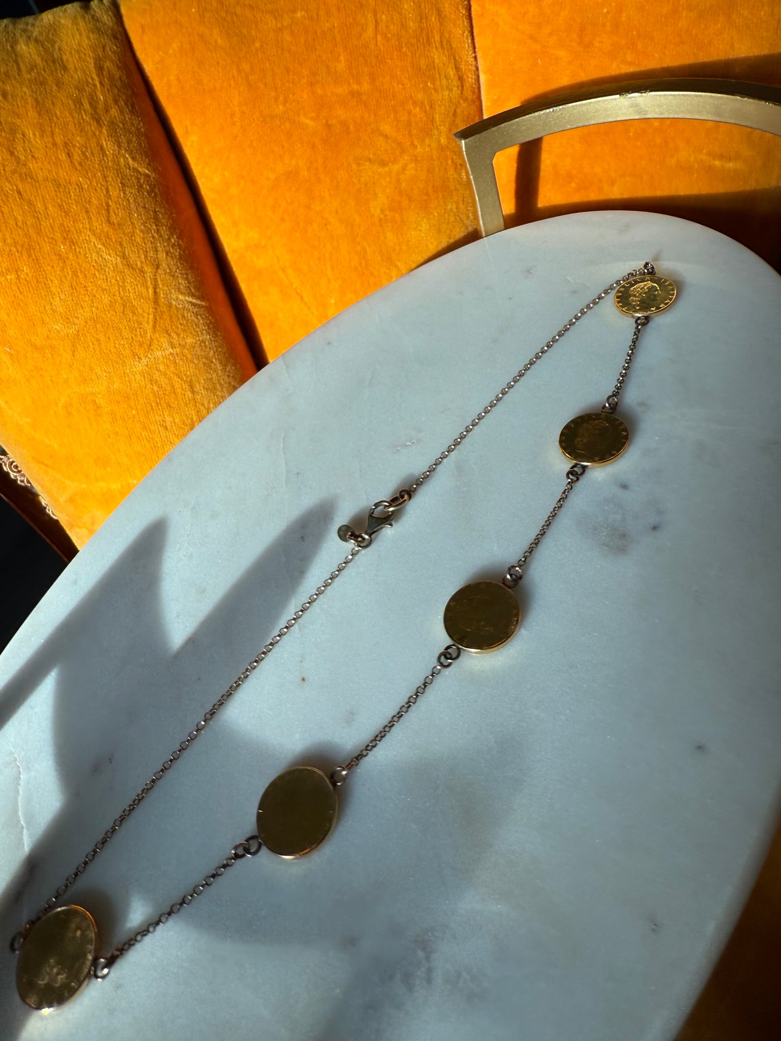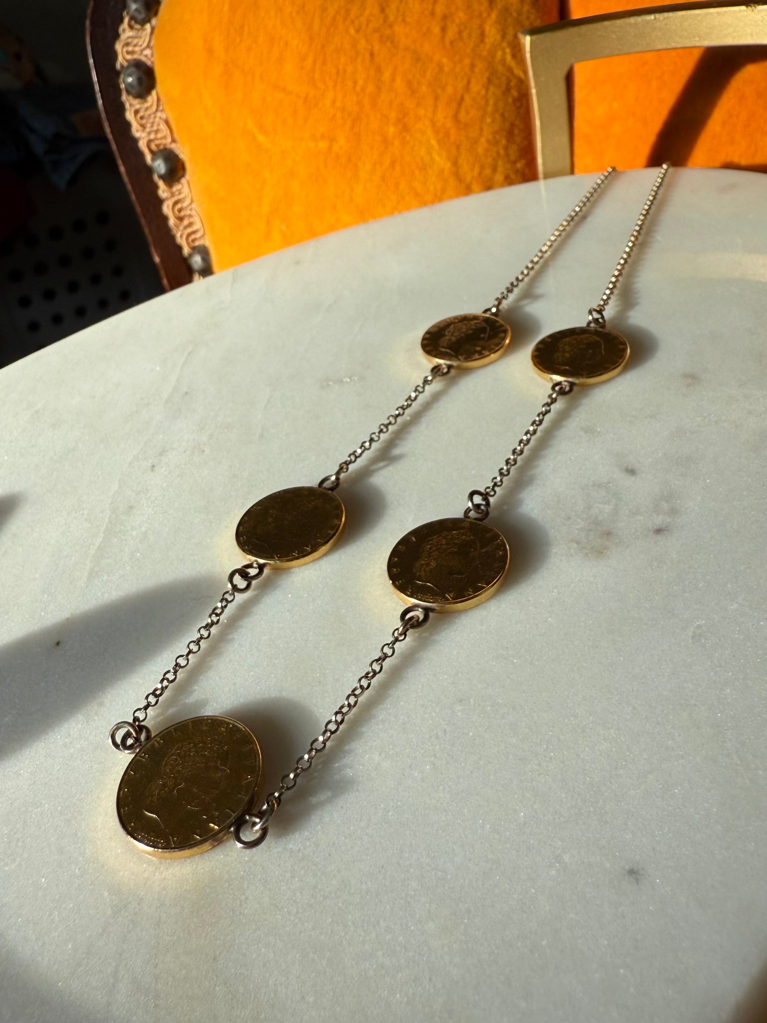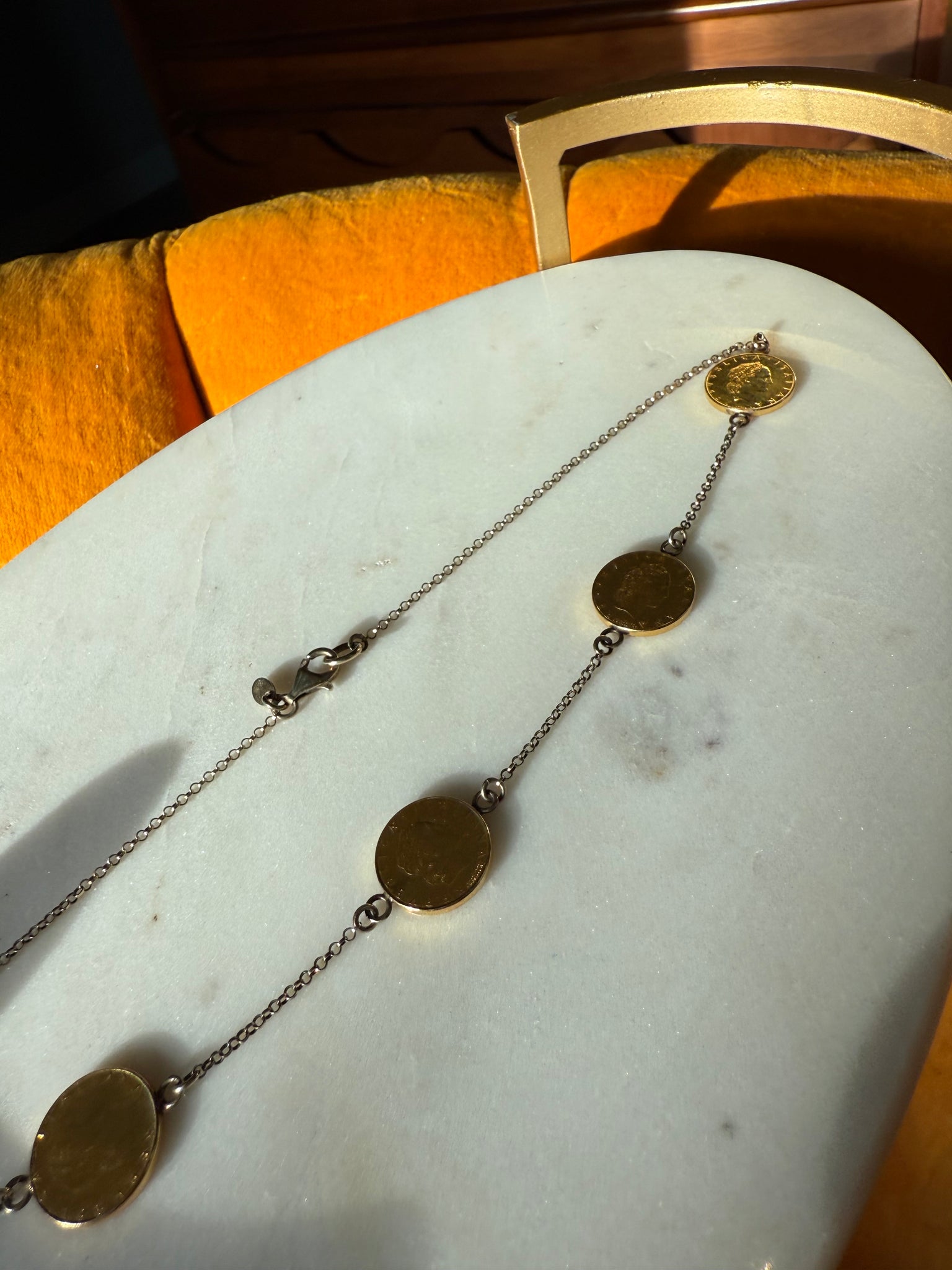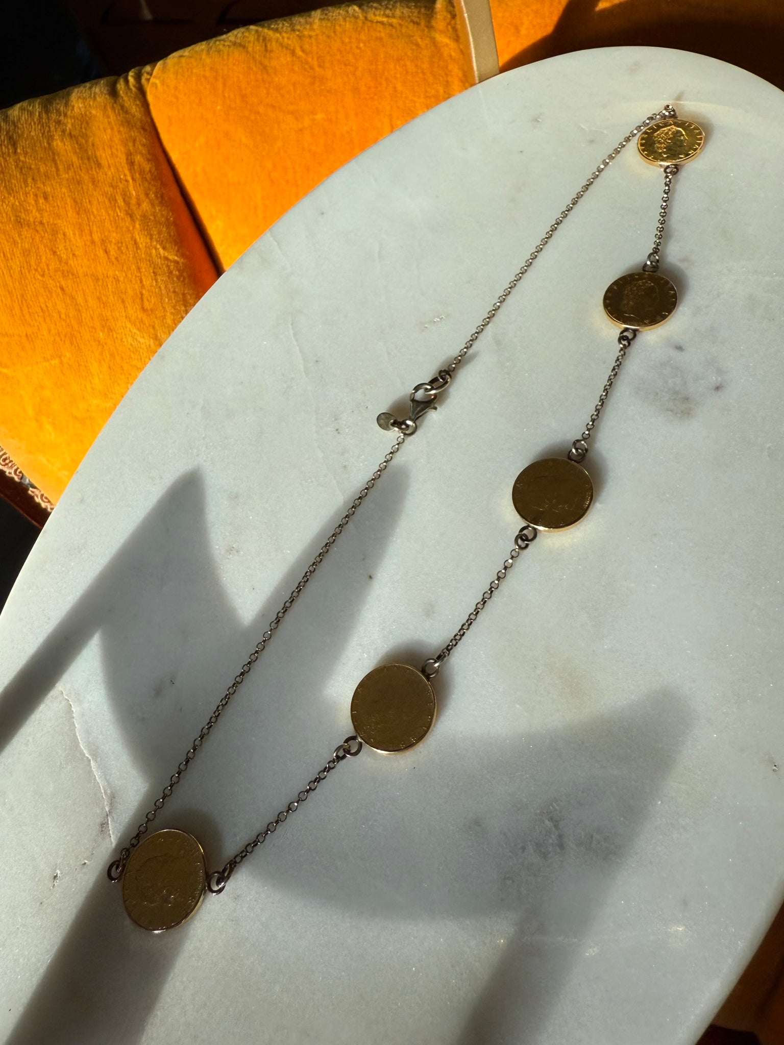 .925 gold vermeil • 17.1 grams • 17mm width coins • 18” length