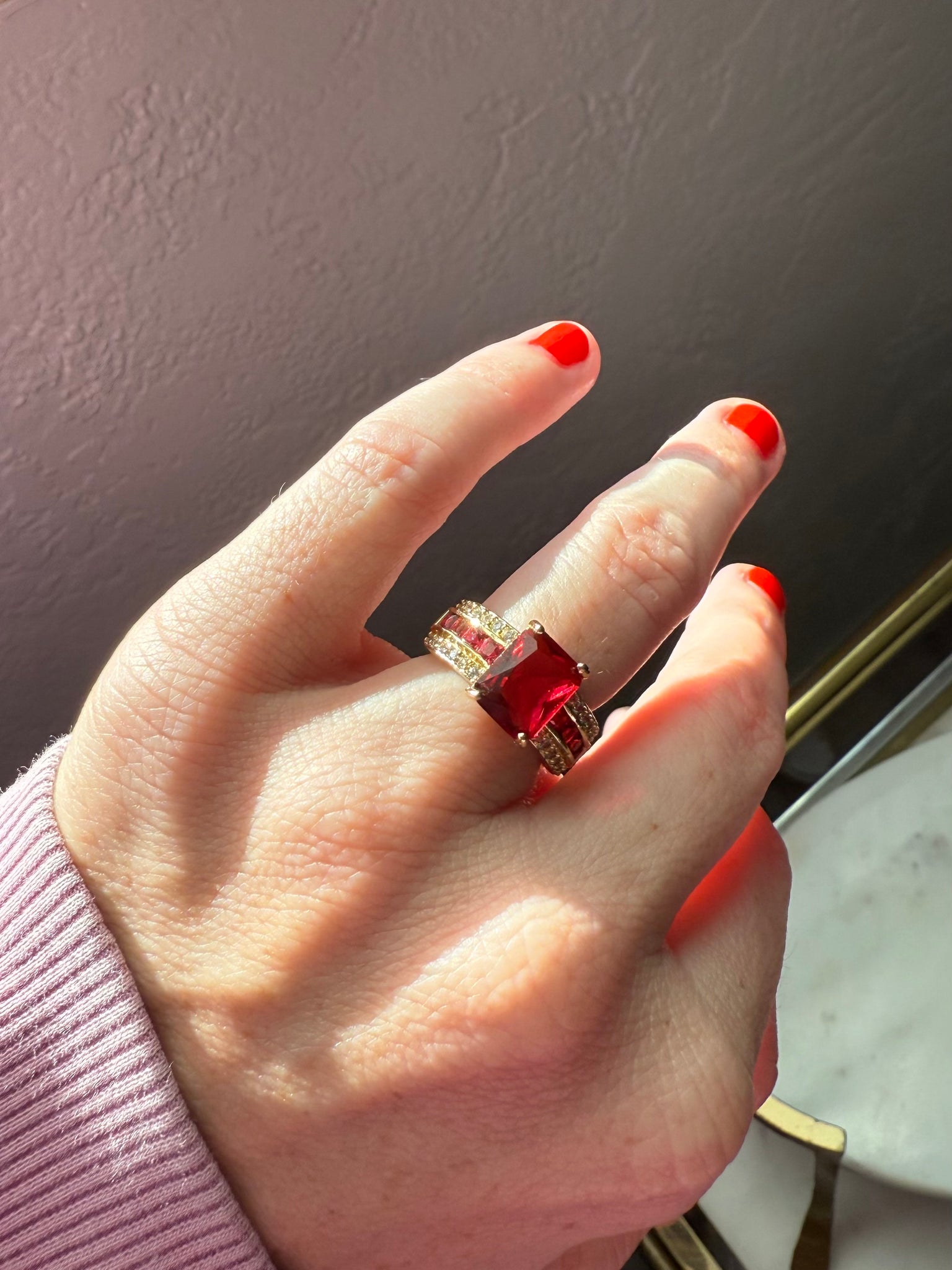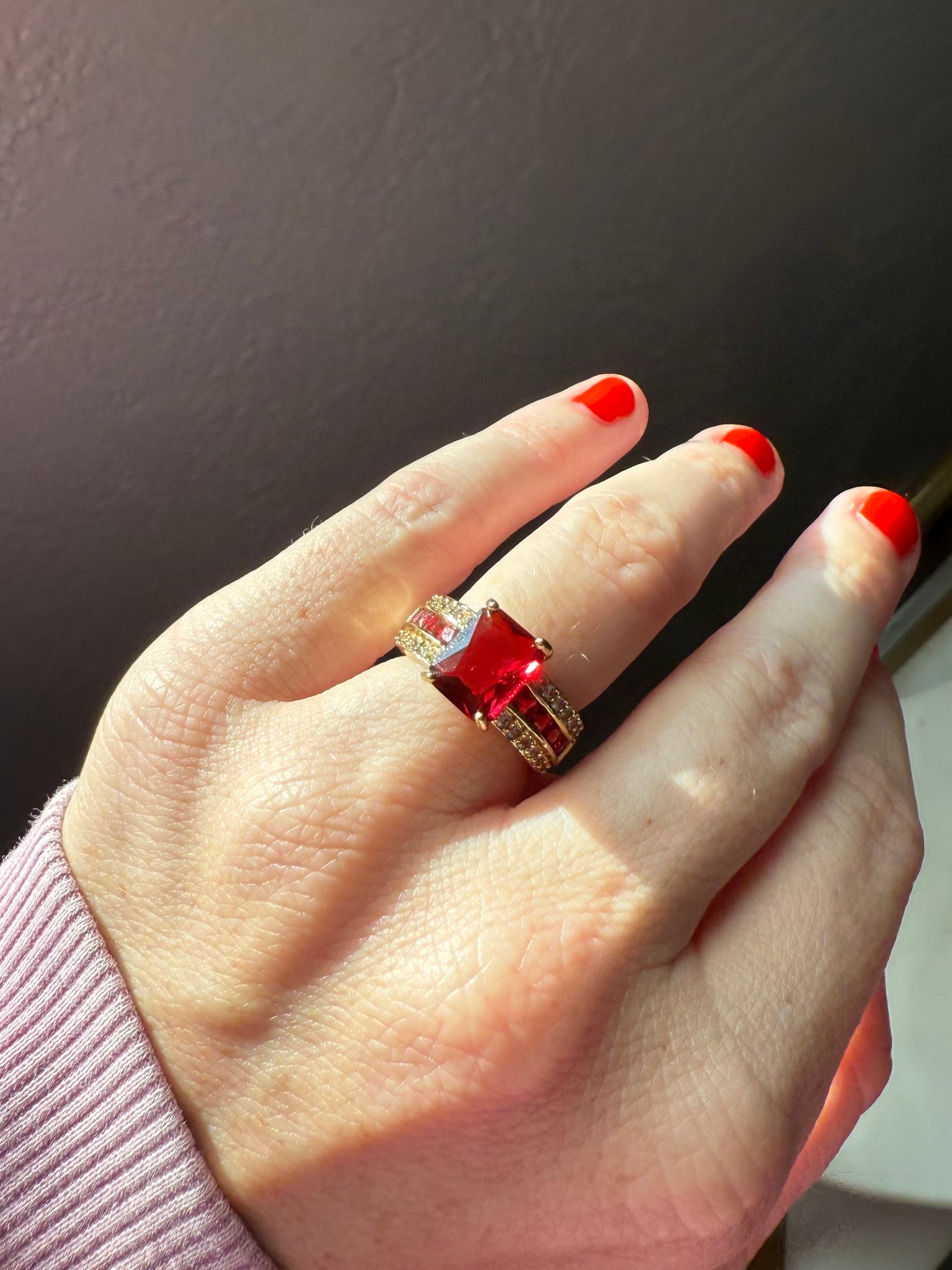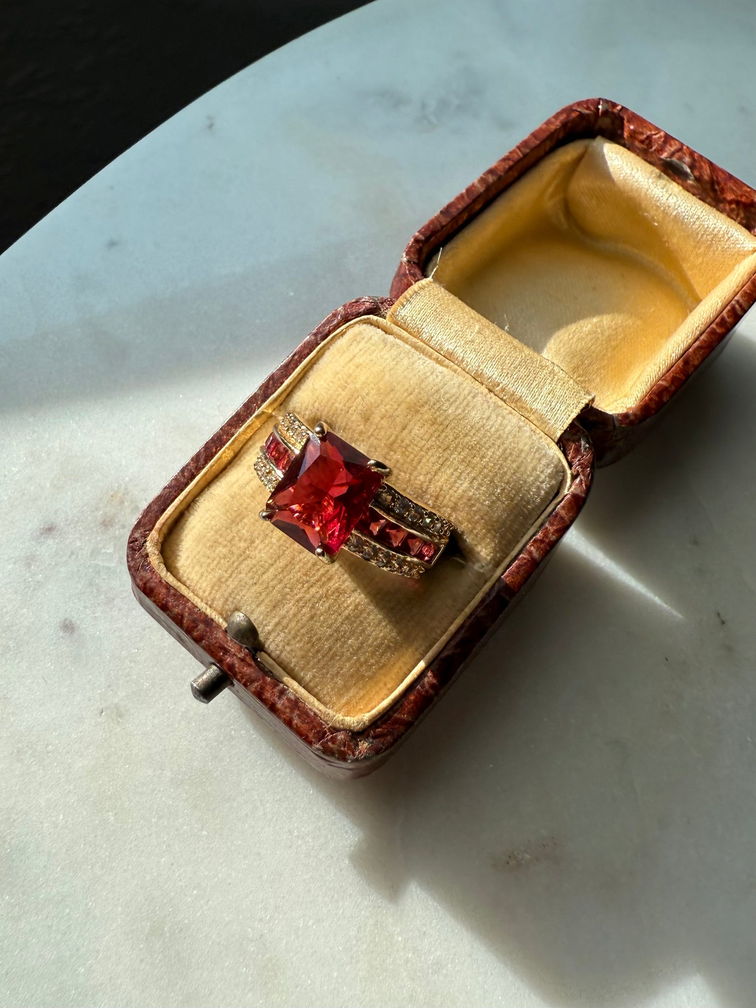 Red Synthetic Stone & Spinel Gold Vermeil Ring Size 6