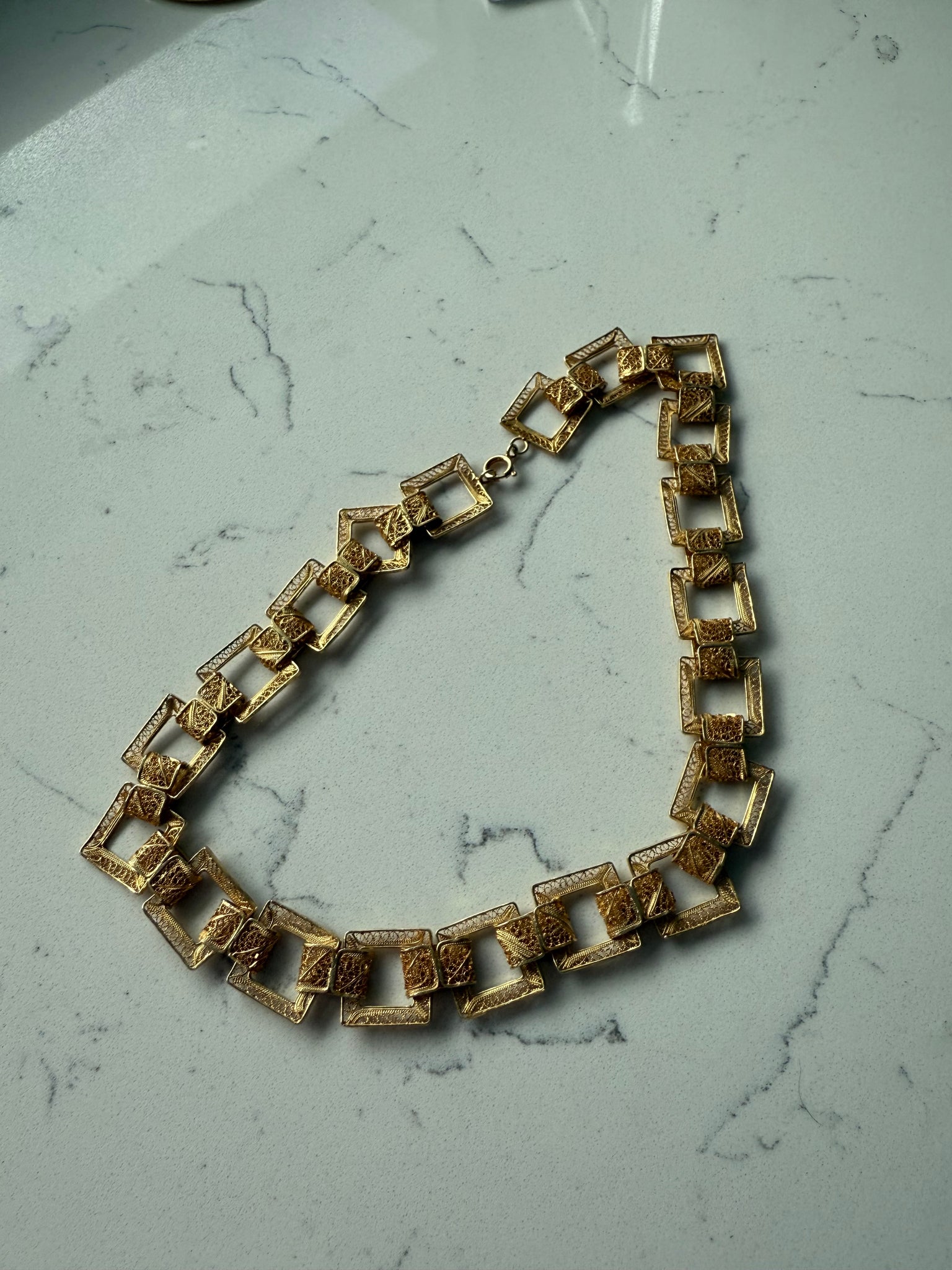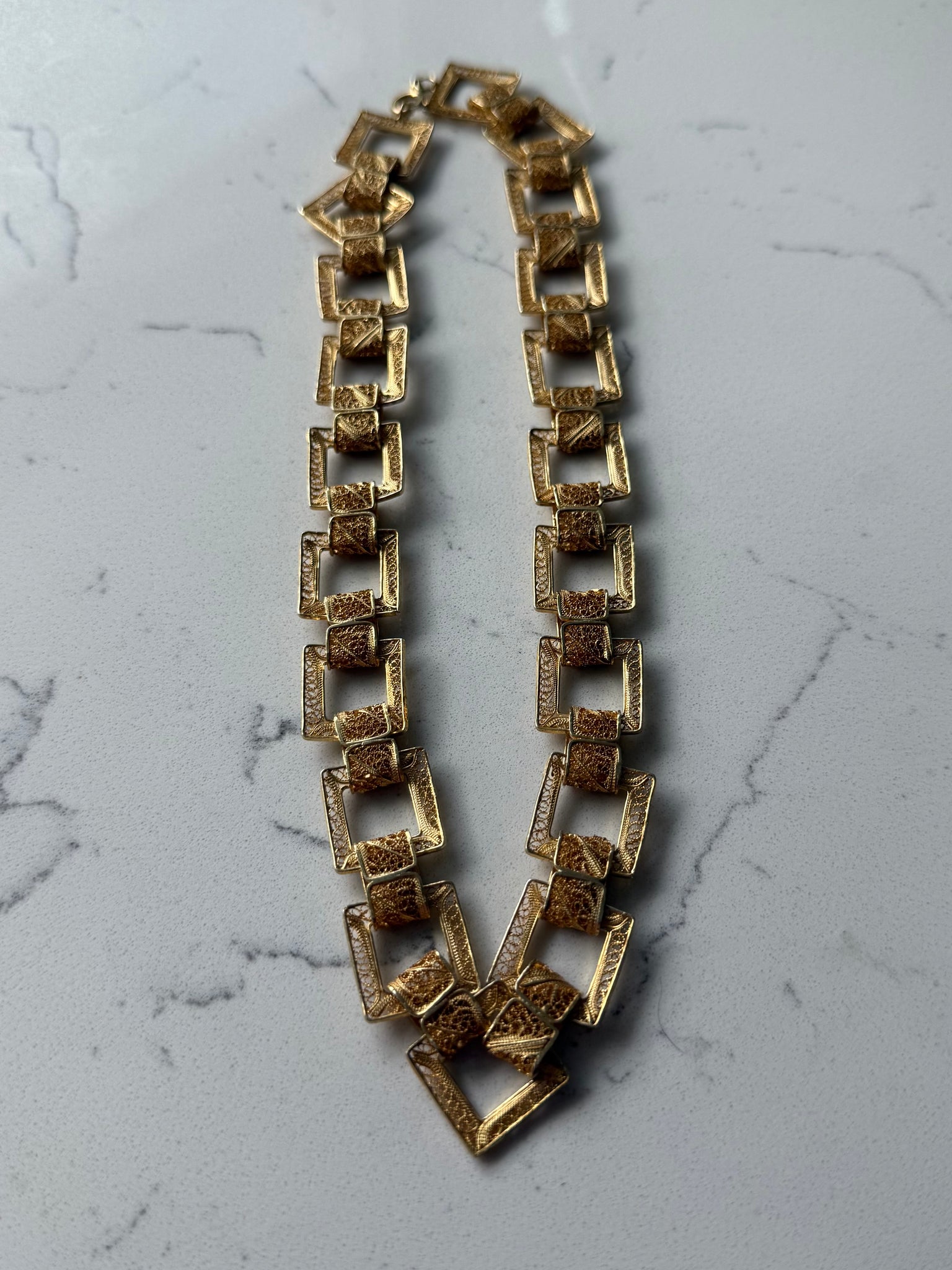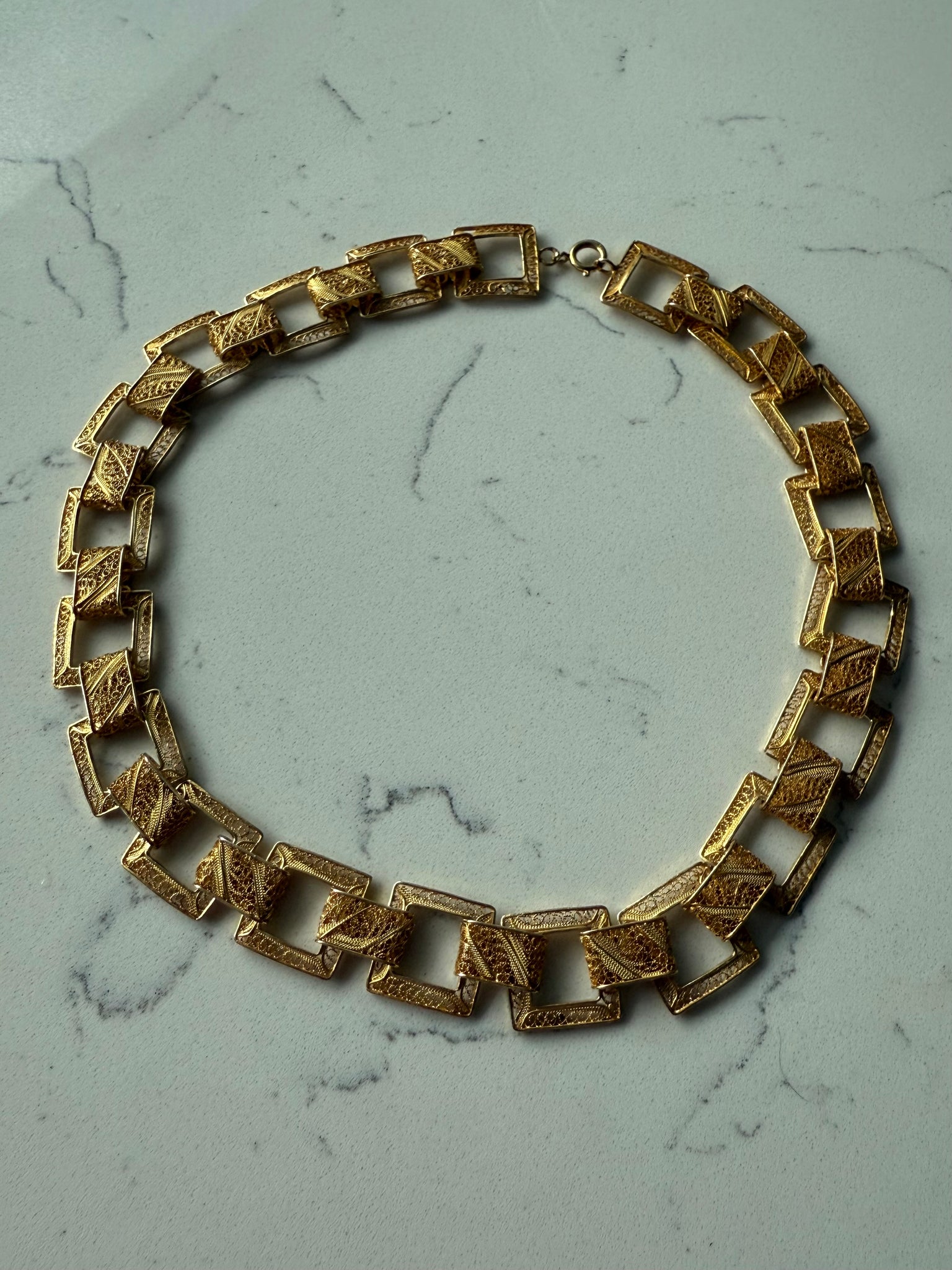 43 grams • 18mm width links • 17.5” length when fully lying flat with measuring tape • .925 gold vermeil