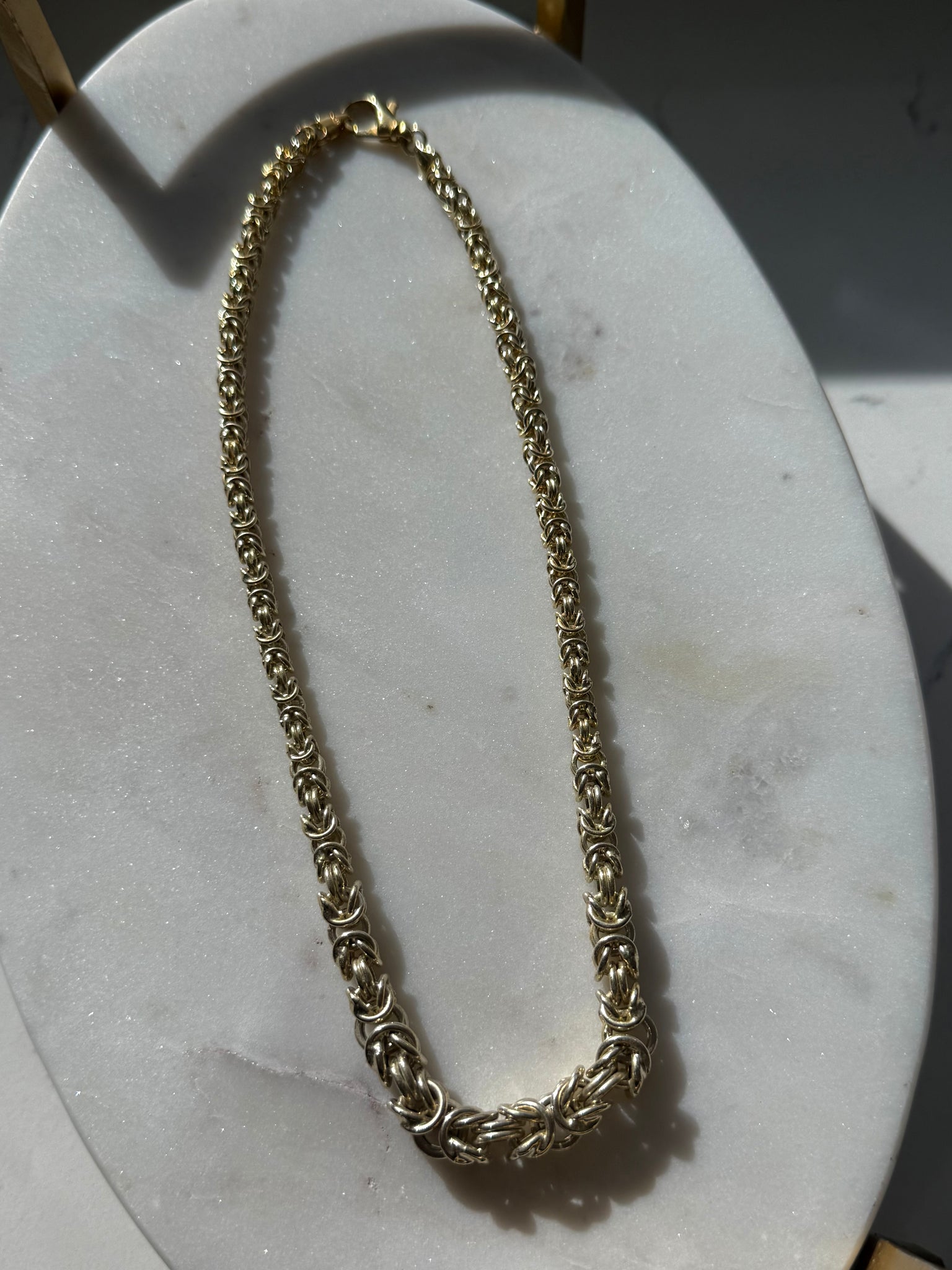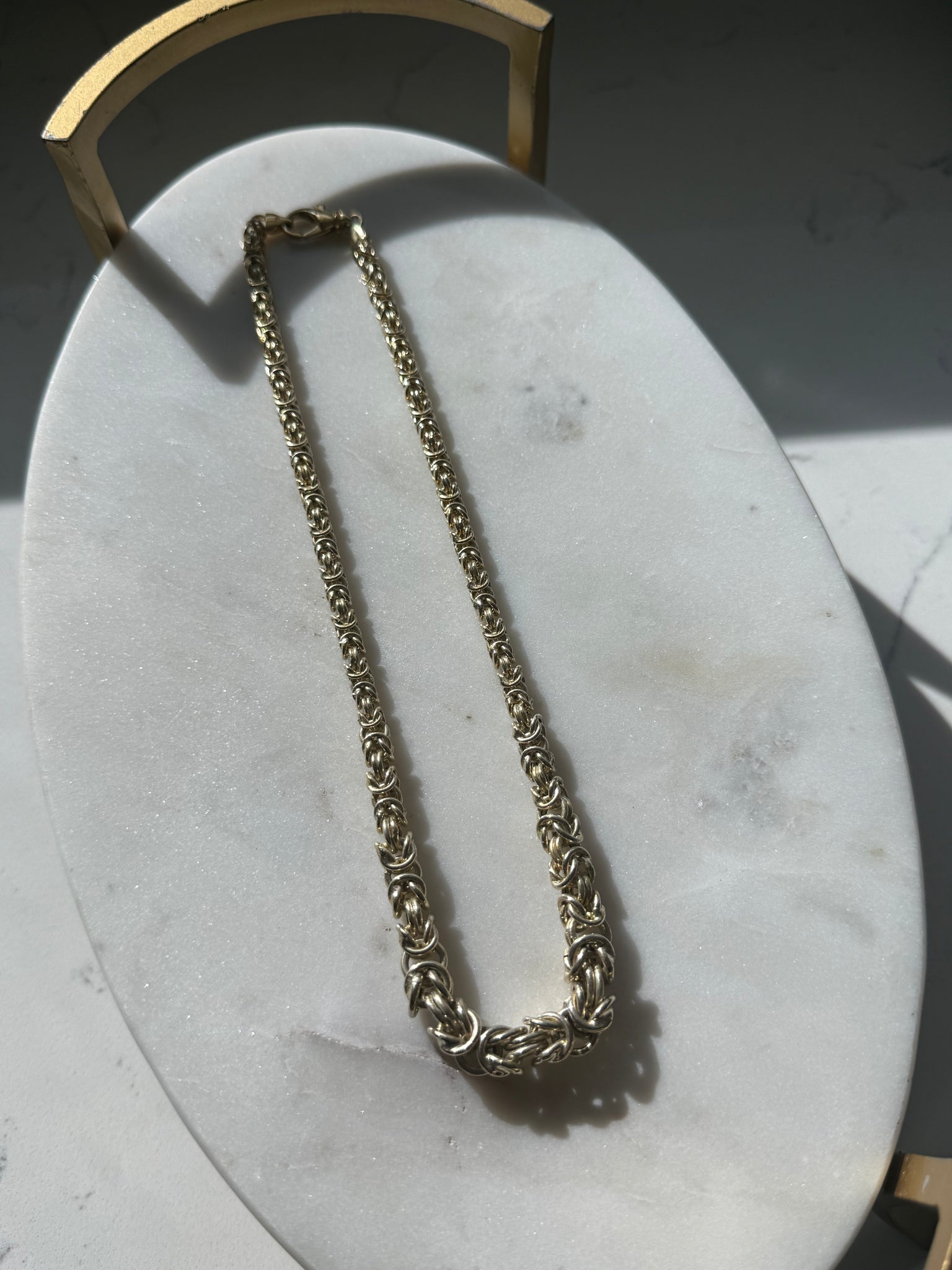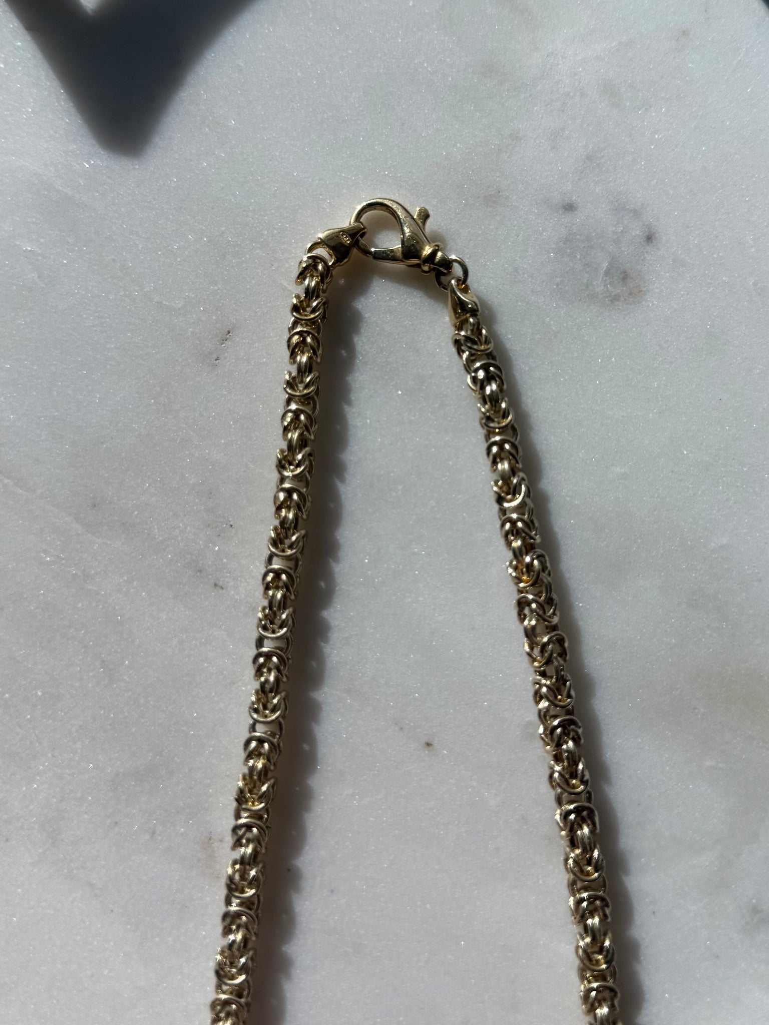 Has a very light tone of gold vermeil • .925 • 26.3 grams • graduated so the links range from 5mm to 9mm • 18” length