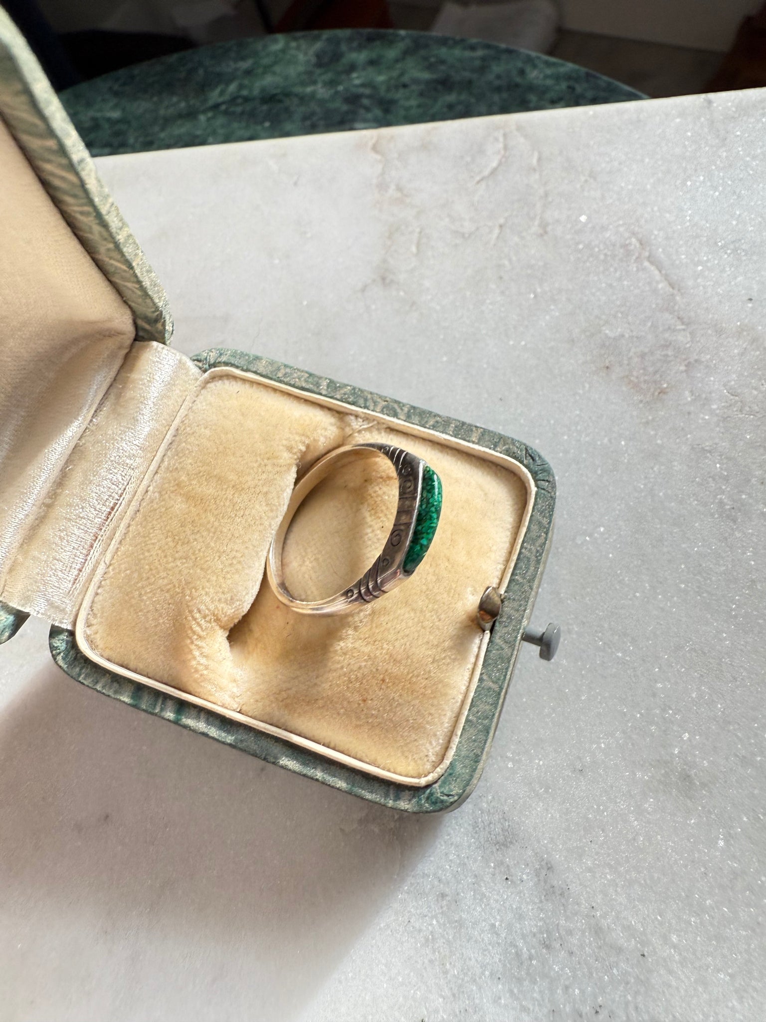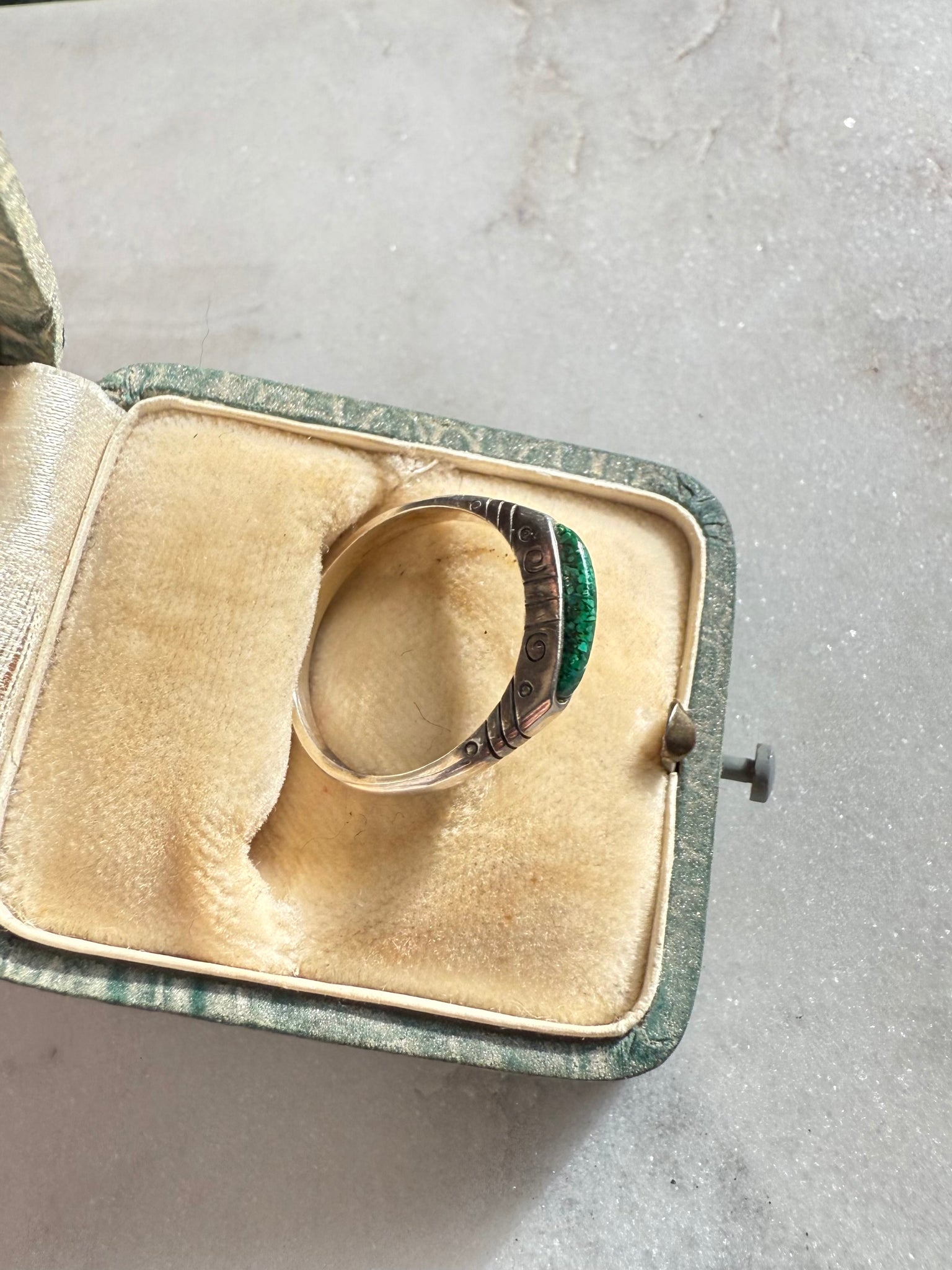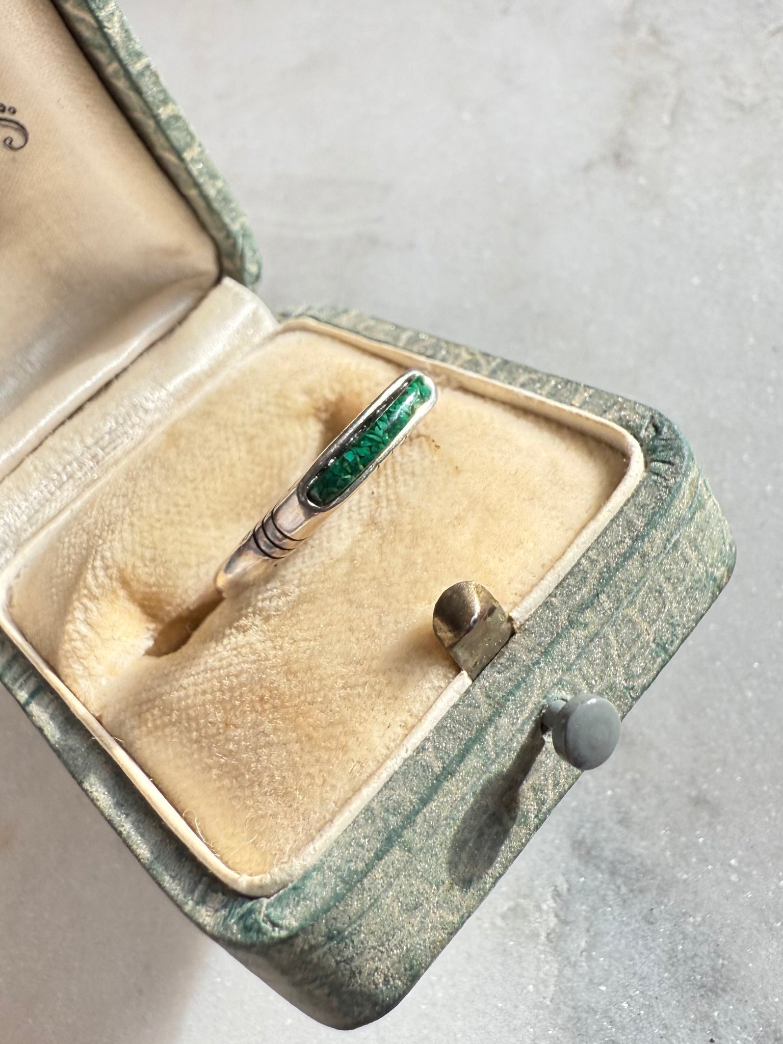 Green Crushed Turquoise Sterling Silver Ring Size 8.25