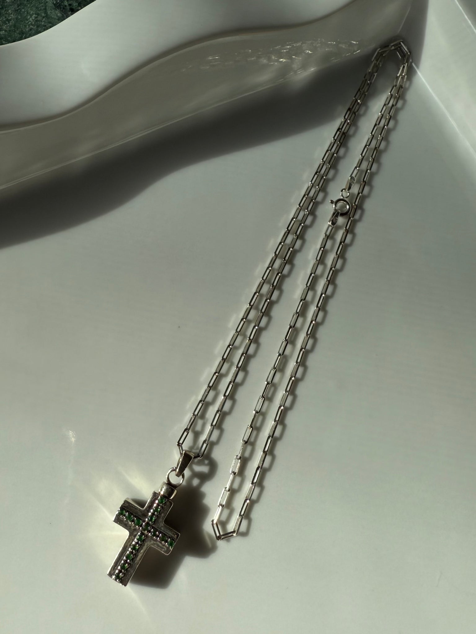 .925 Sterling silver • 9.6 grams (pendant and chain total weight) • pendant measures 1” • the chain is 24” length