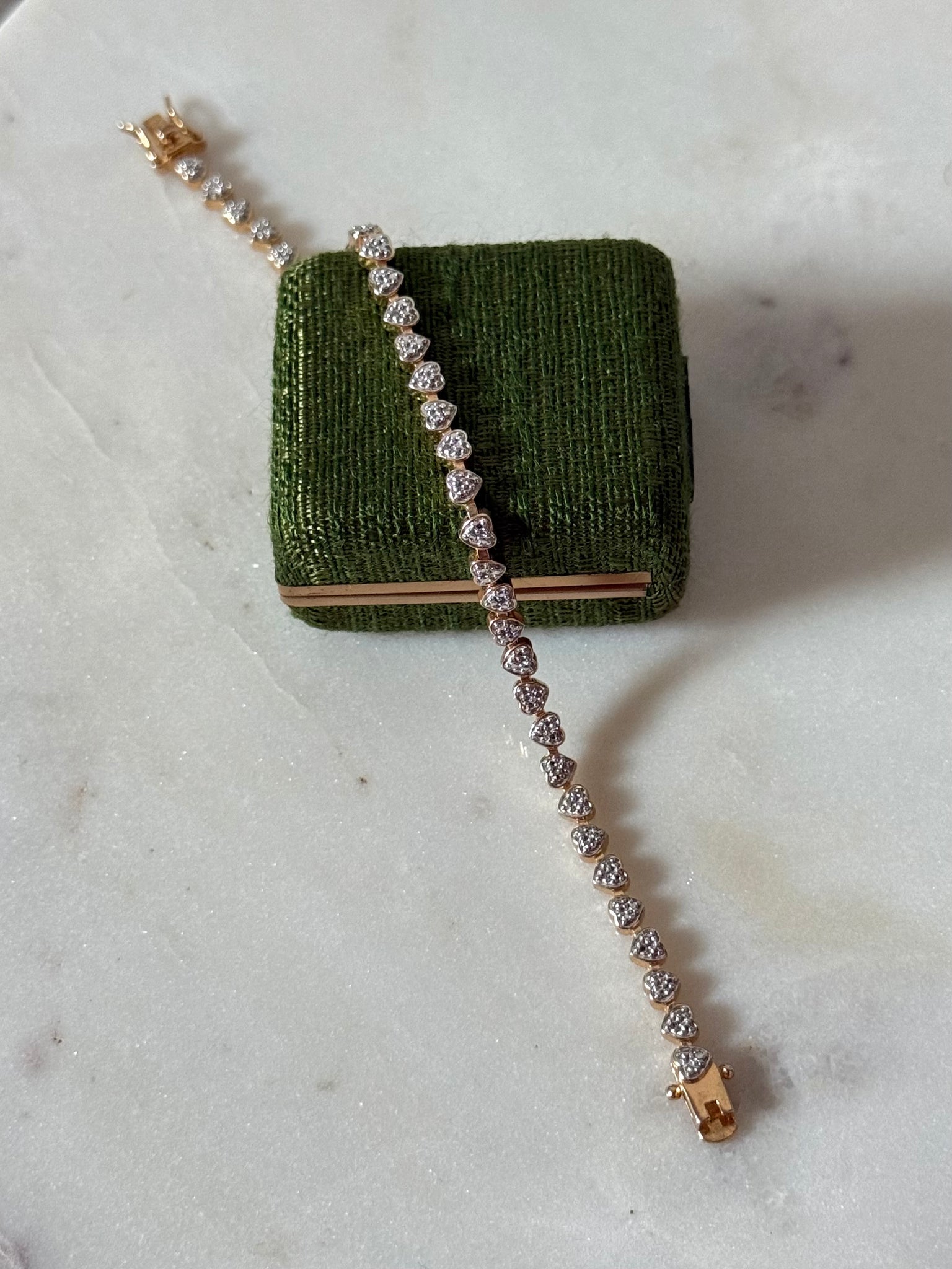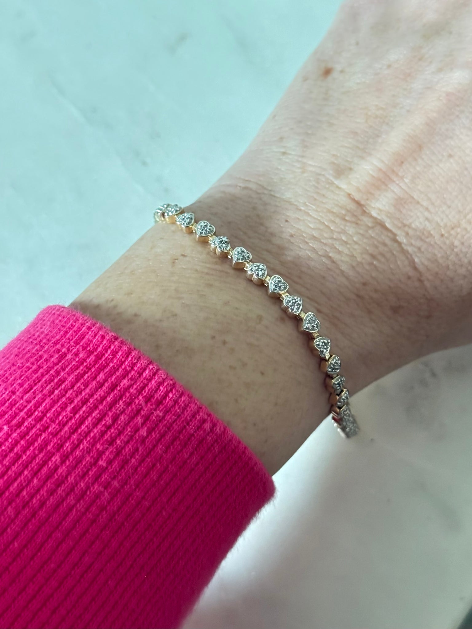 Stamped .925 China • gold vermeil .925 with a silver tone on the top of the hearts • 9.7 grams • 4mm width • 7” length