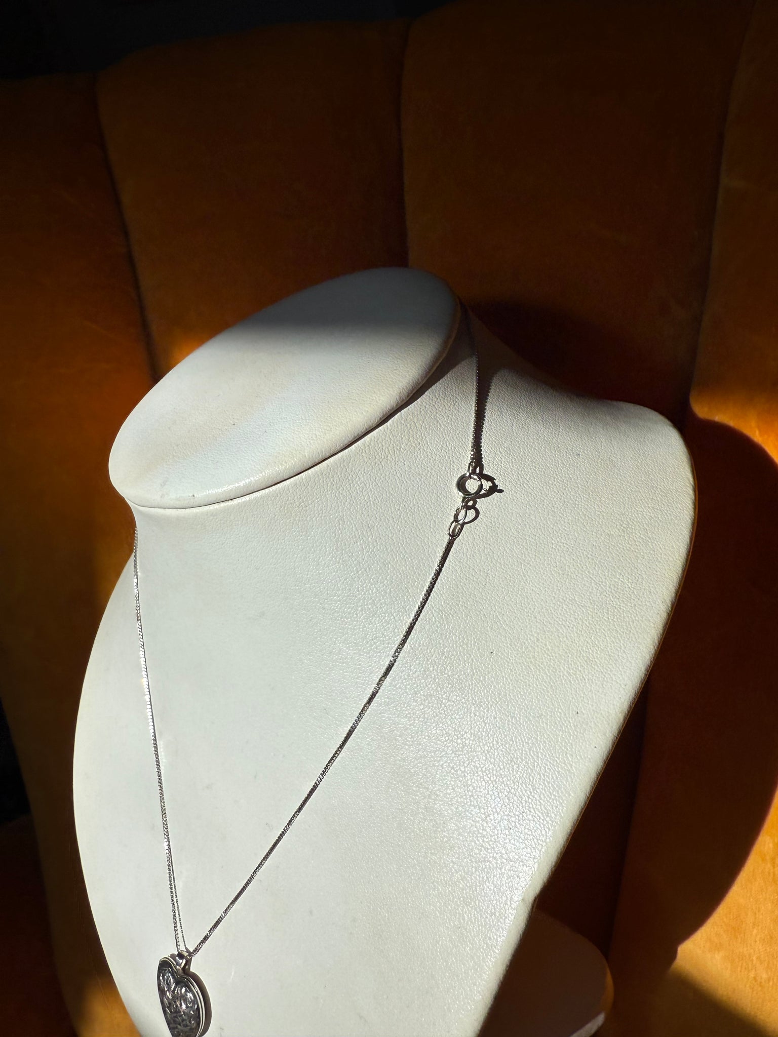 .925 Sterling silver • 4.4 grams • chain measures 18” length • heart measures 20mm x 19mm
