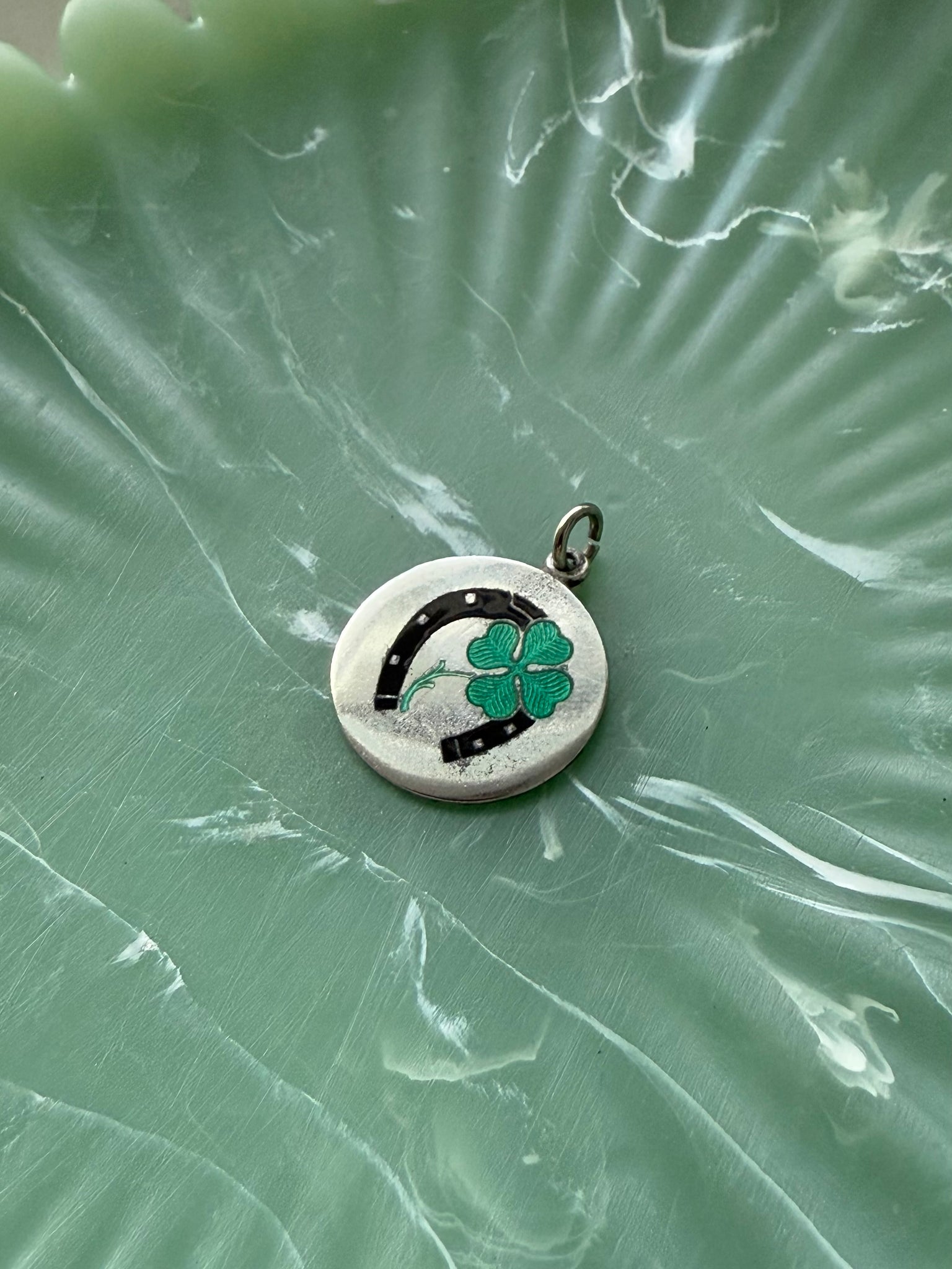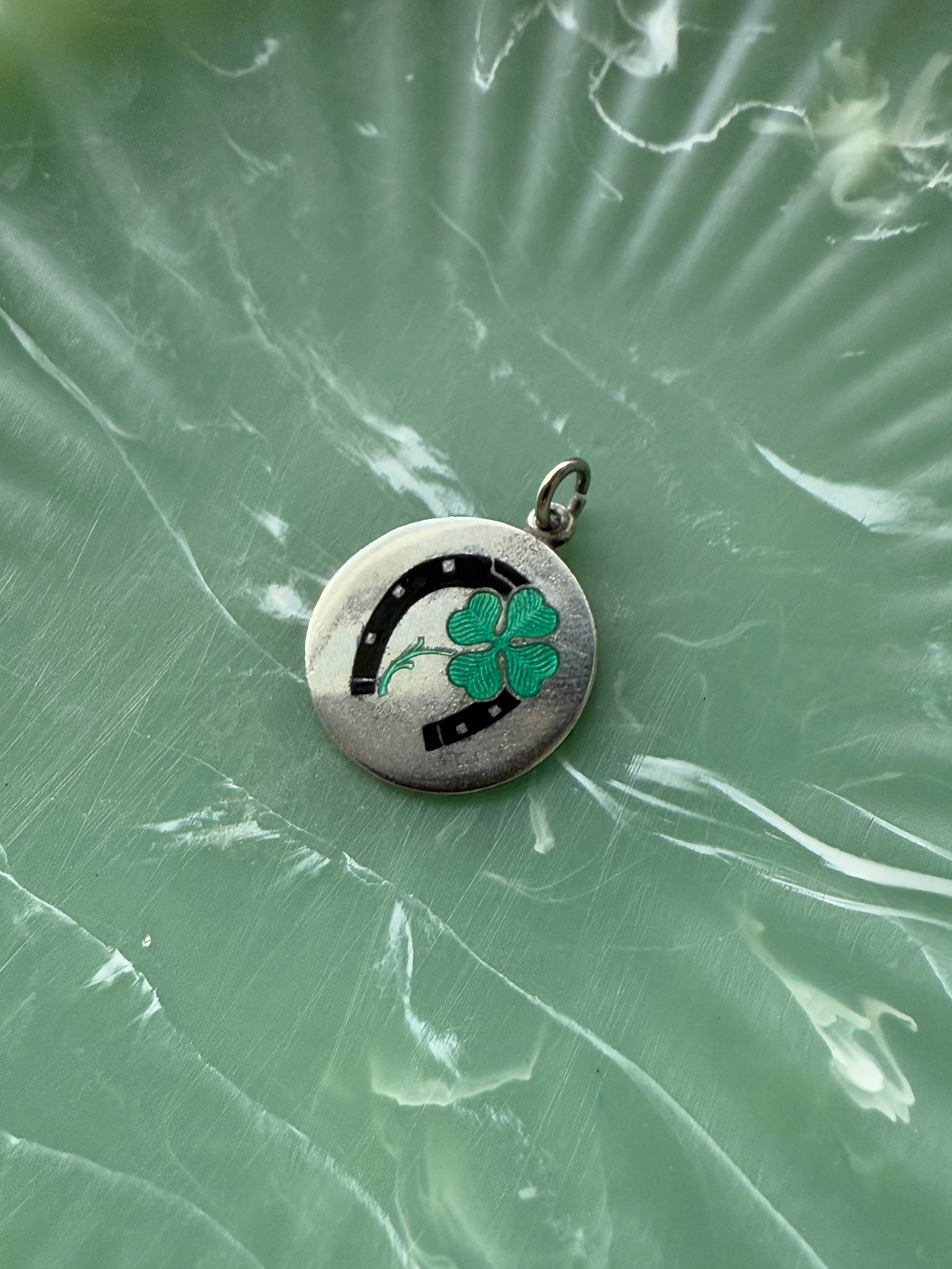 Horseshoe & Four Leaf Clover Enamel Sterling Silver Charm