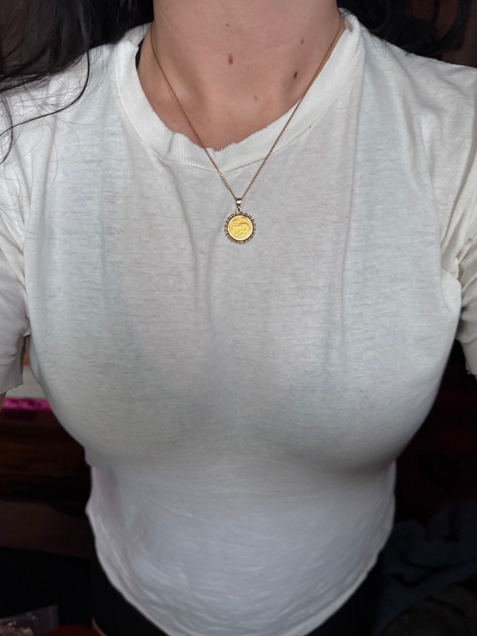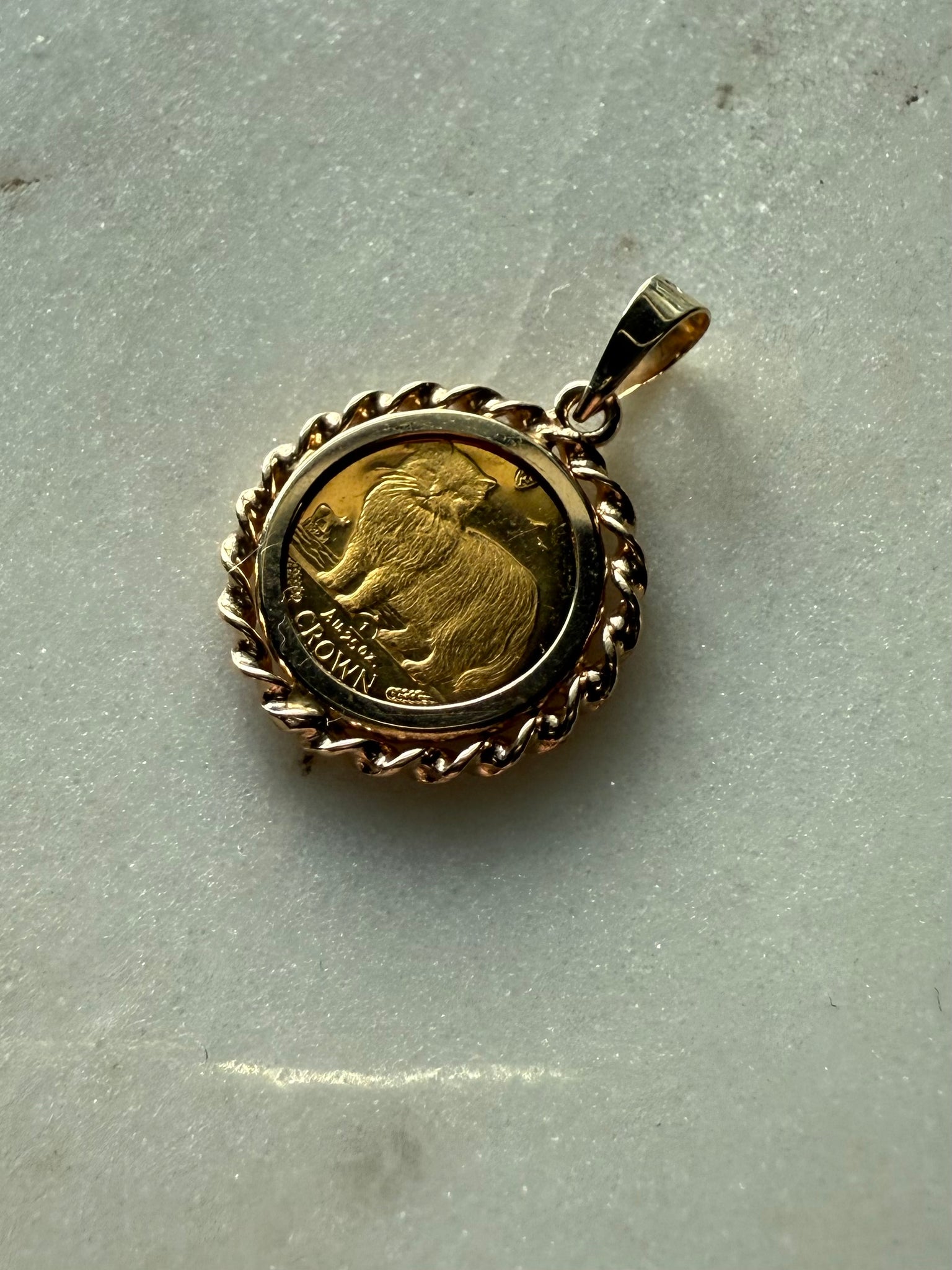 Isle of Man 1989 Crown Persian Cat 1/25th ounce .999 Fine Gold Coin set in 14k Yellow Gold Pendant