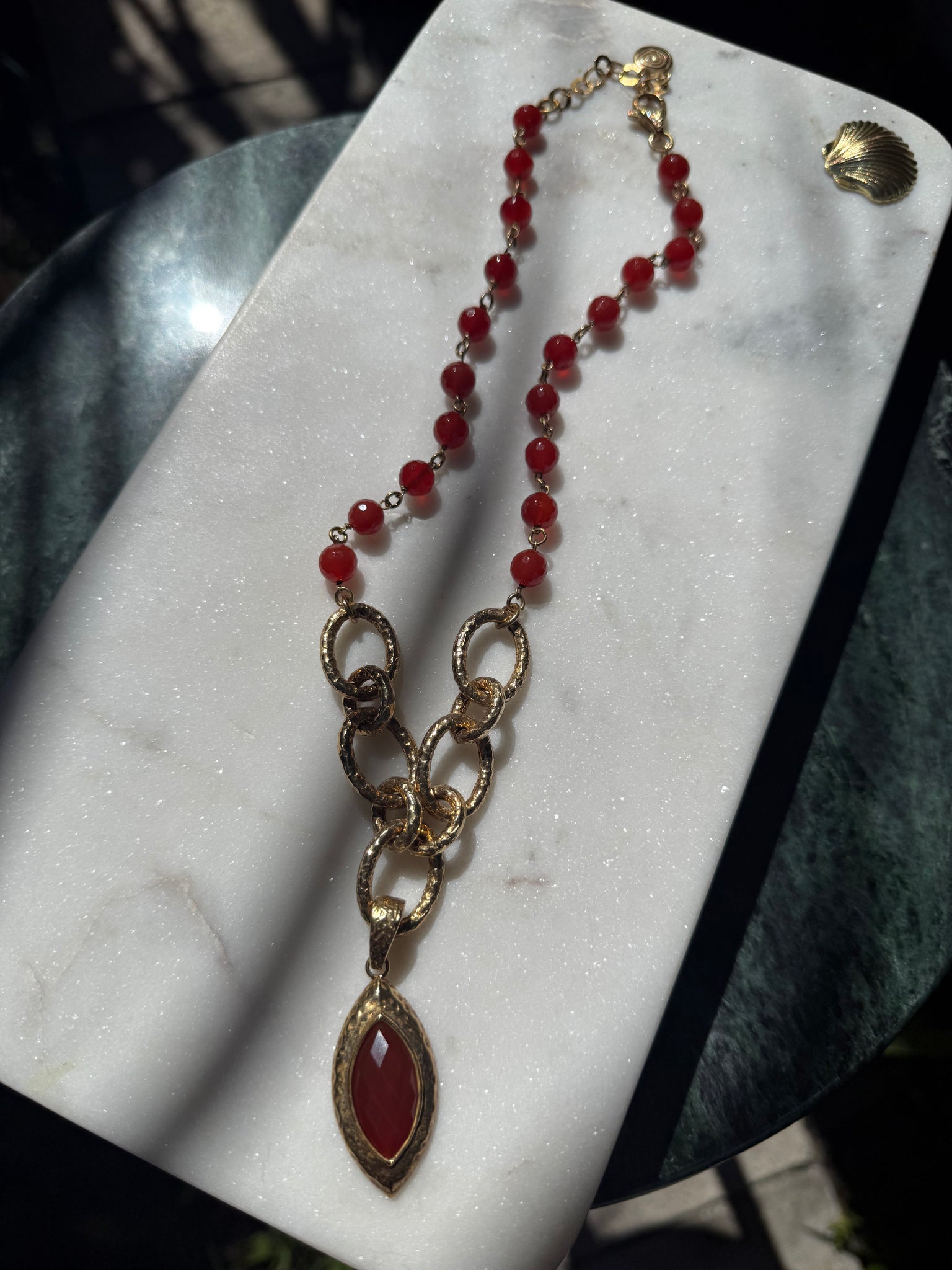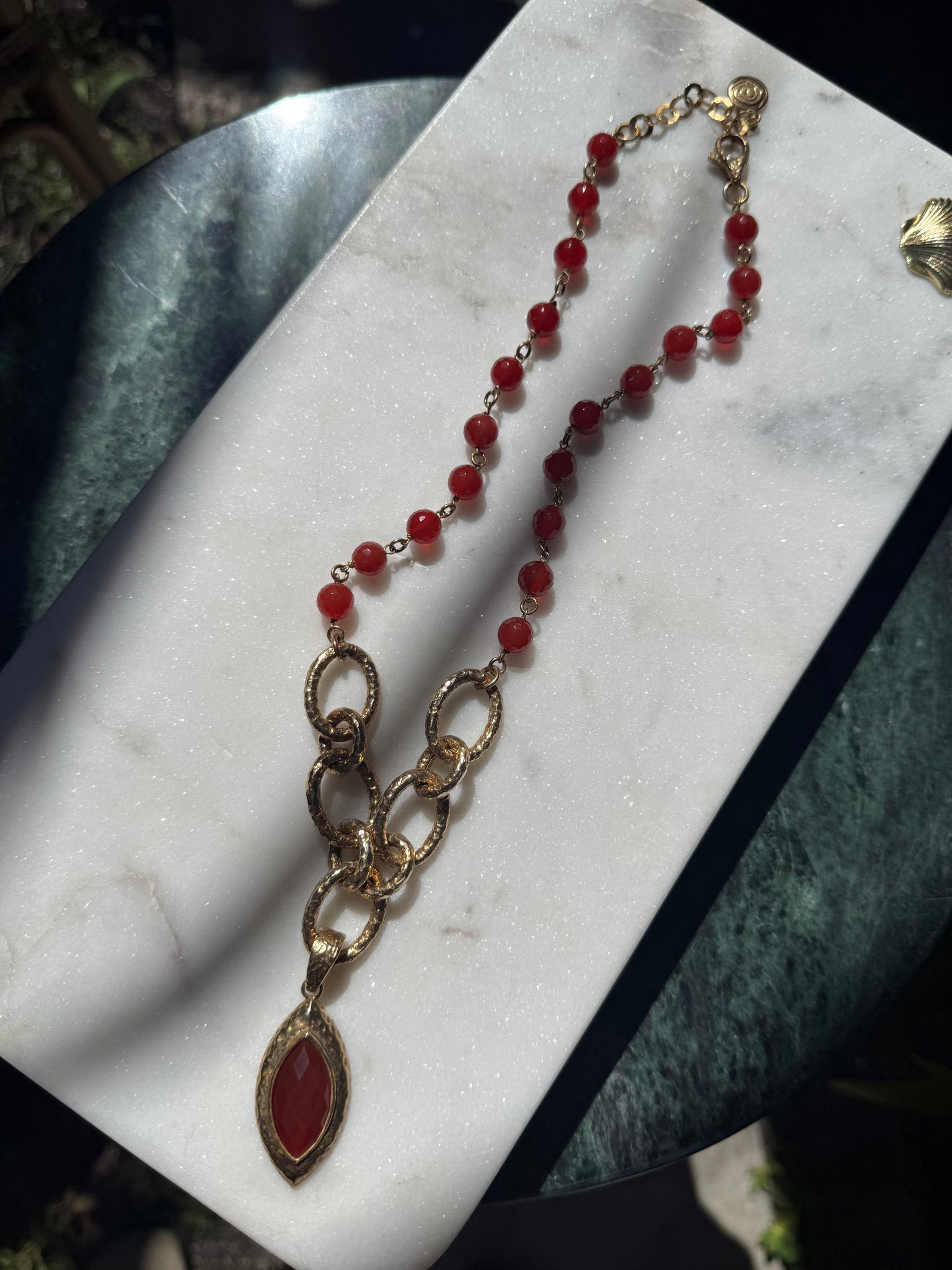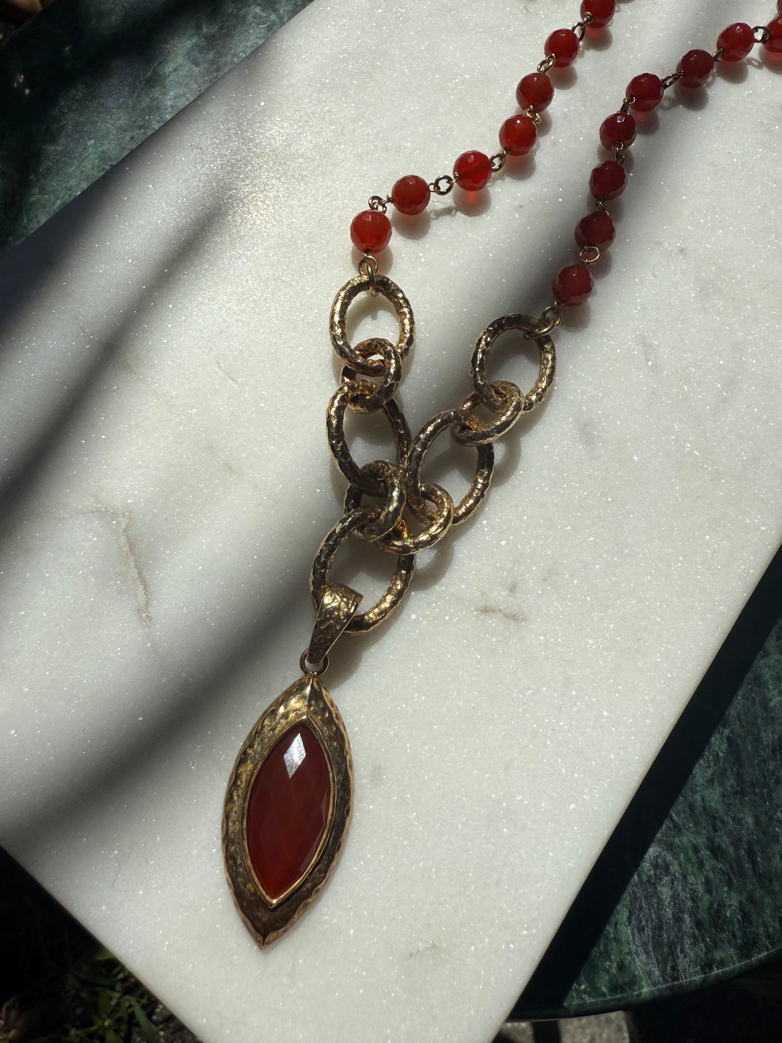 Made in Italy • .925 gold vermeil with beads • 43.7 grams • hallmarked Etrusca • 8mm beads • the front drop pendant measures 2” length