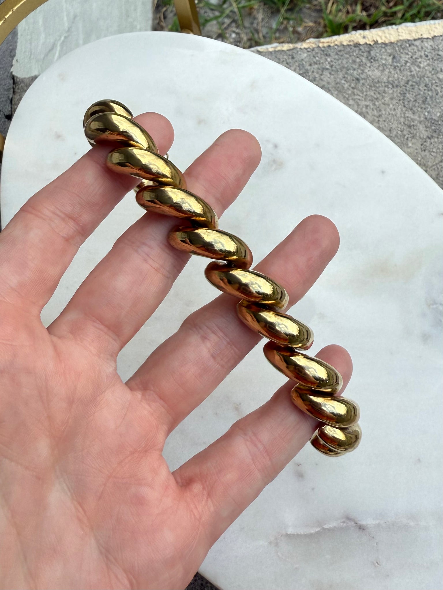41.4 grams • .925 gold vermeil • crafted in Italy • 13.75mm width links • 8.5” length lying flat out, best for 8” wrist and under due to the width of the links