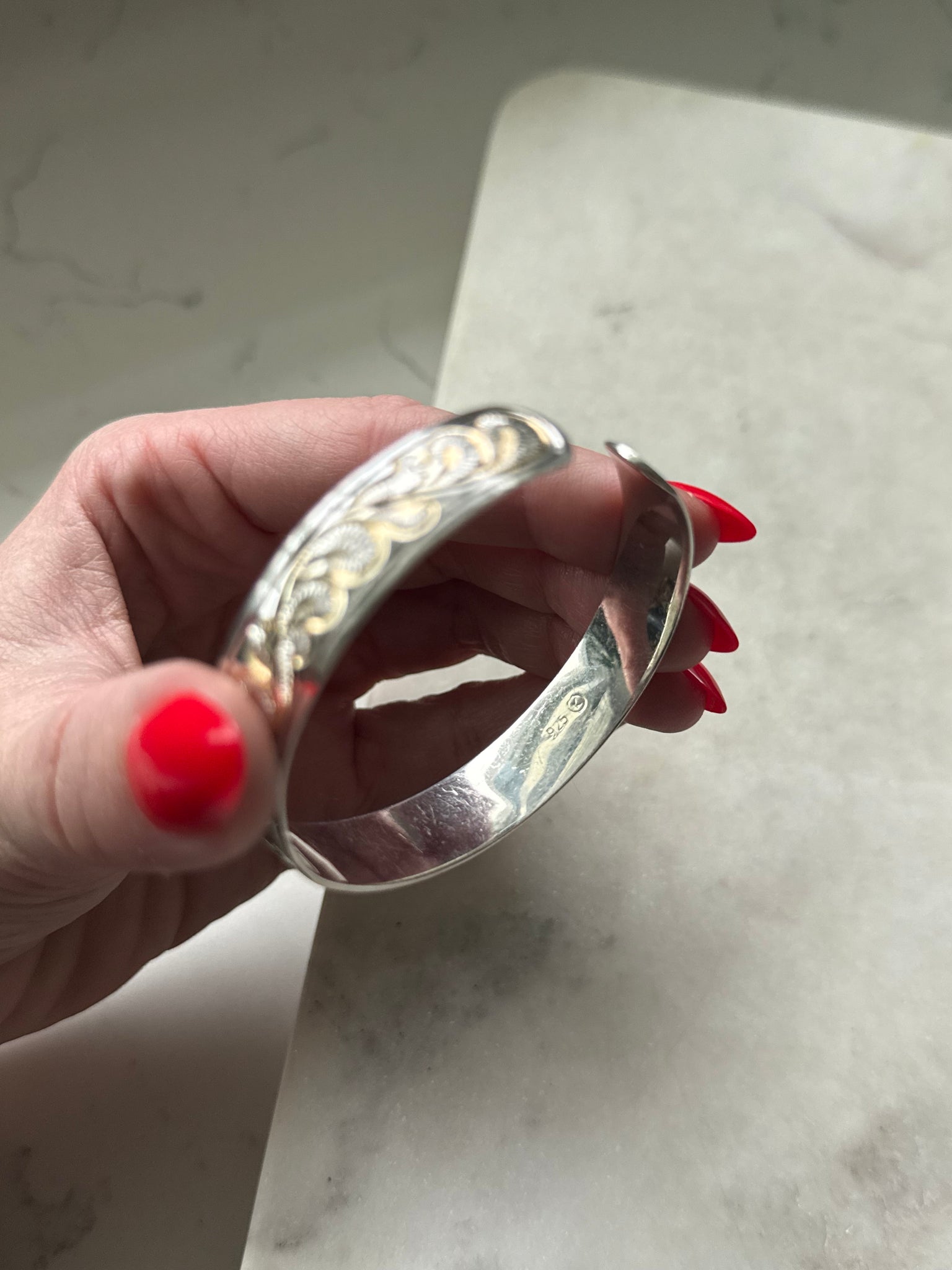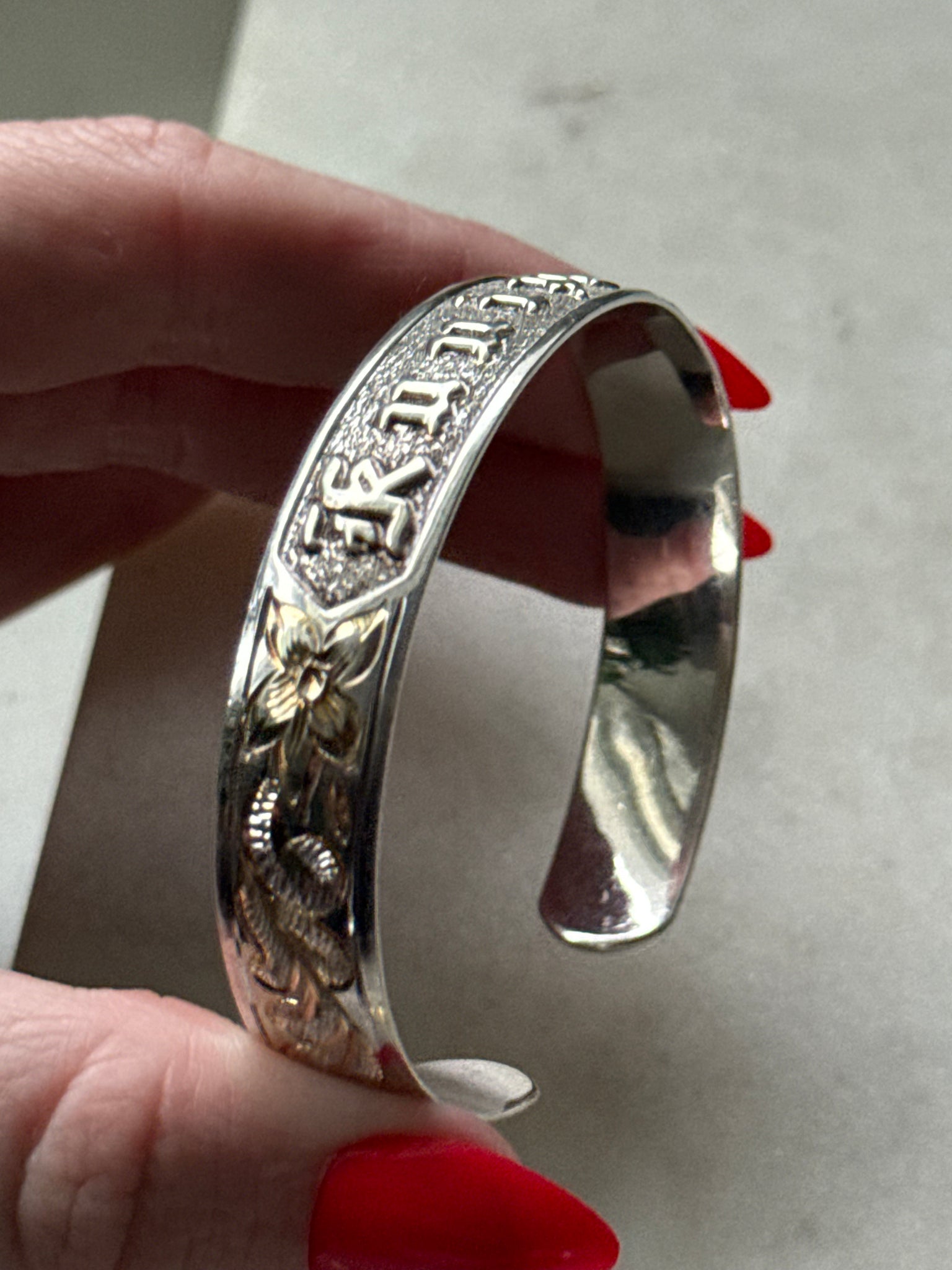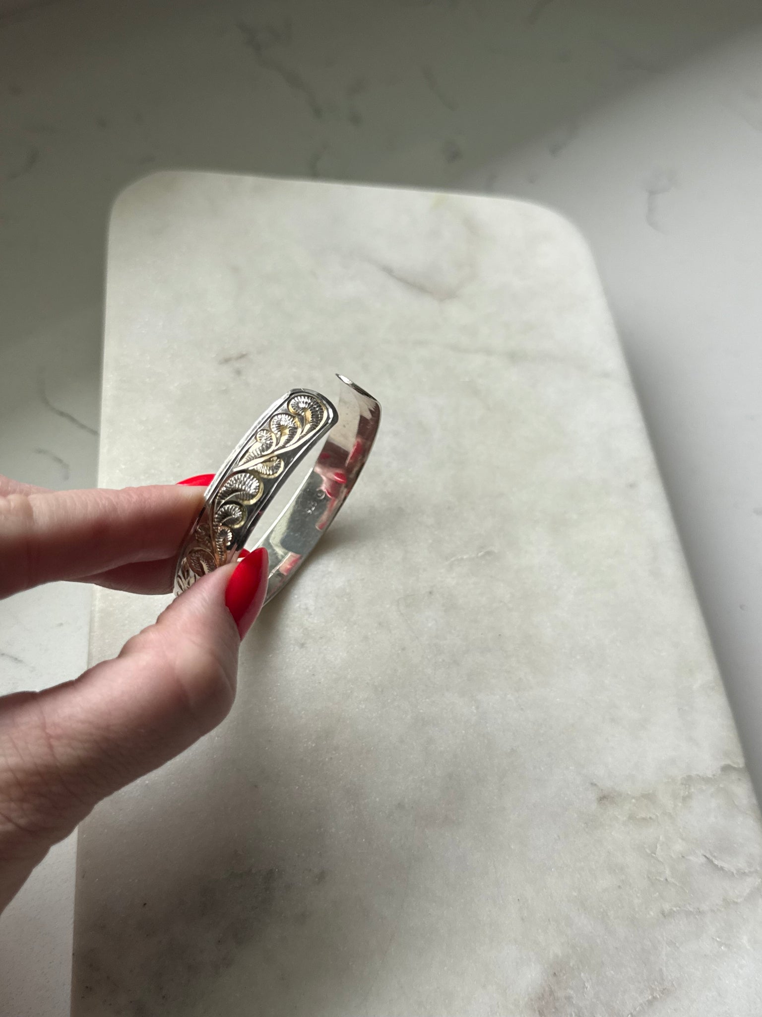 Two-tone .925 • 20.4 grams • 12mm width band • 2.4” inner diameter • best for around 7.5” wrist