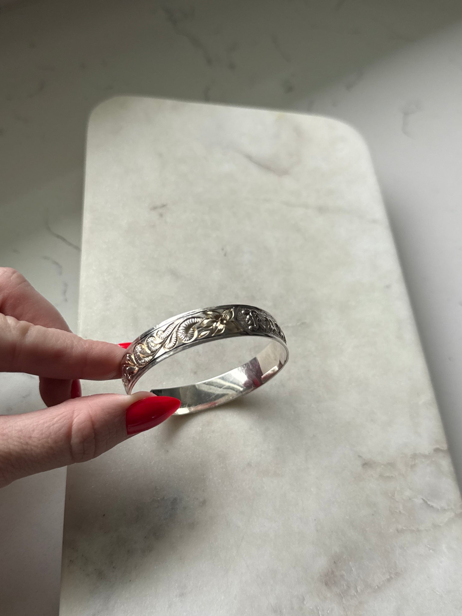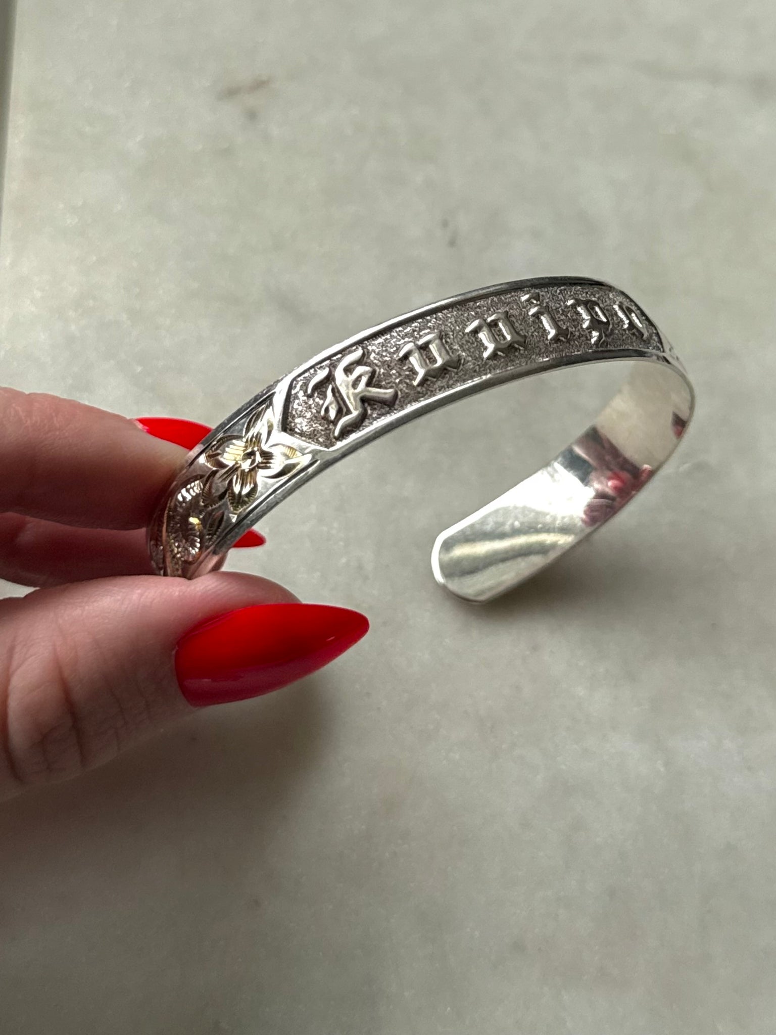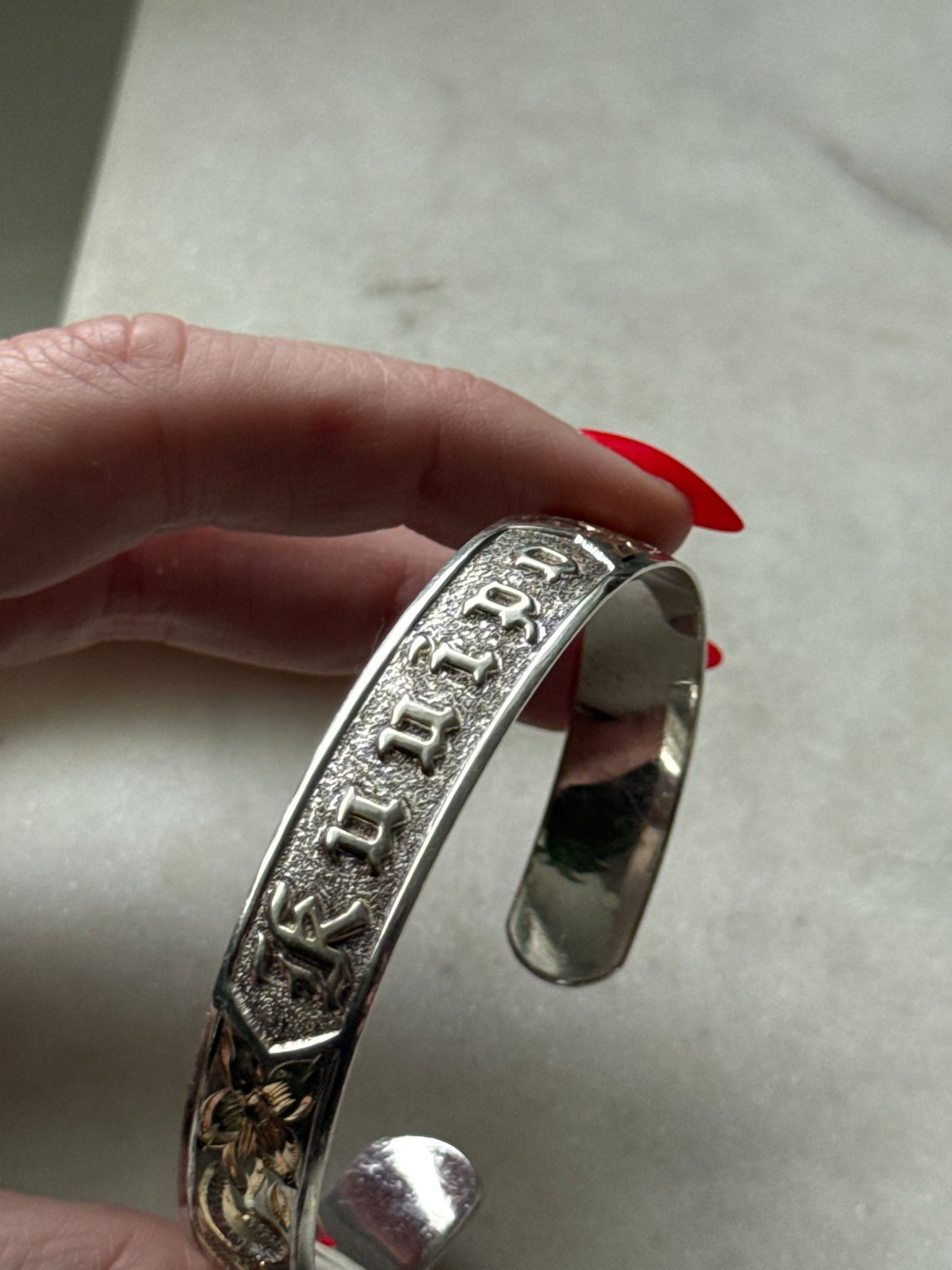 Two-tone .925 • 20.4 grams • 12mm width band • 2.4” inner diameter • best for around 7.5” wrist
