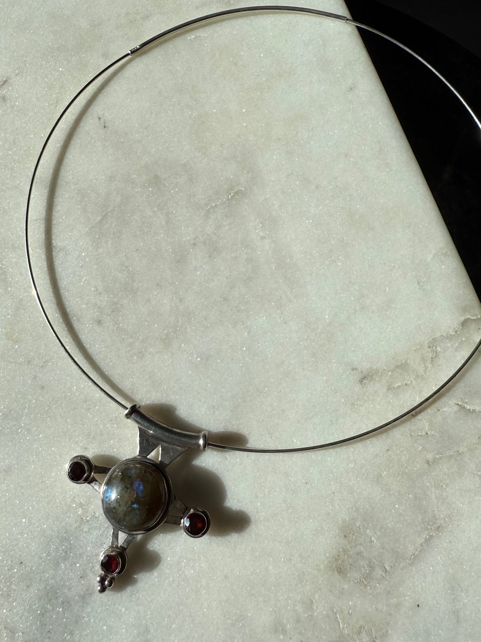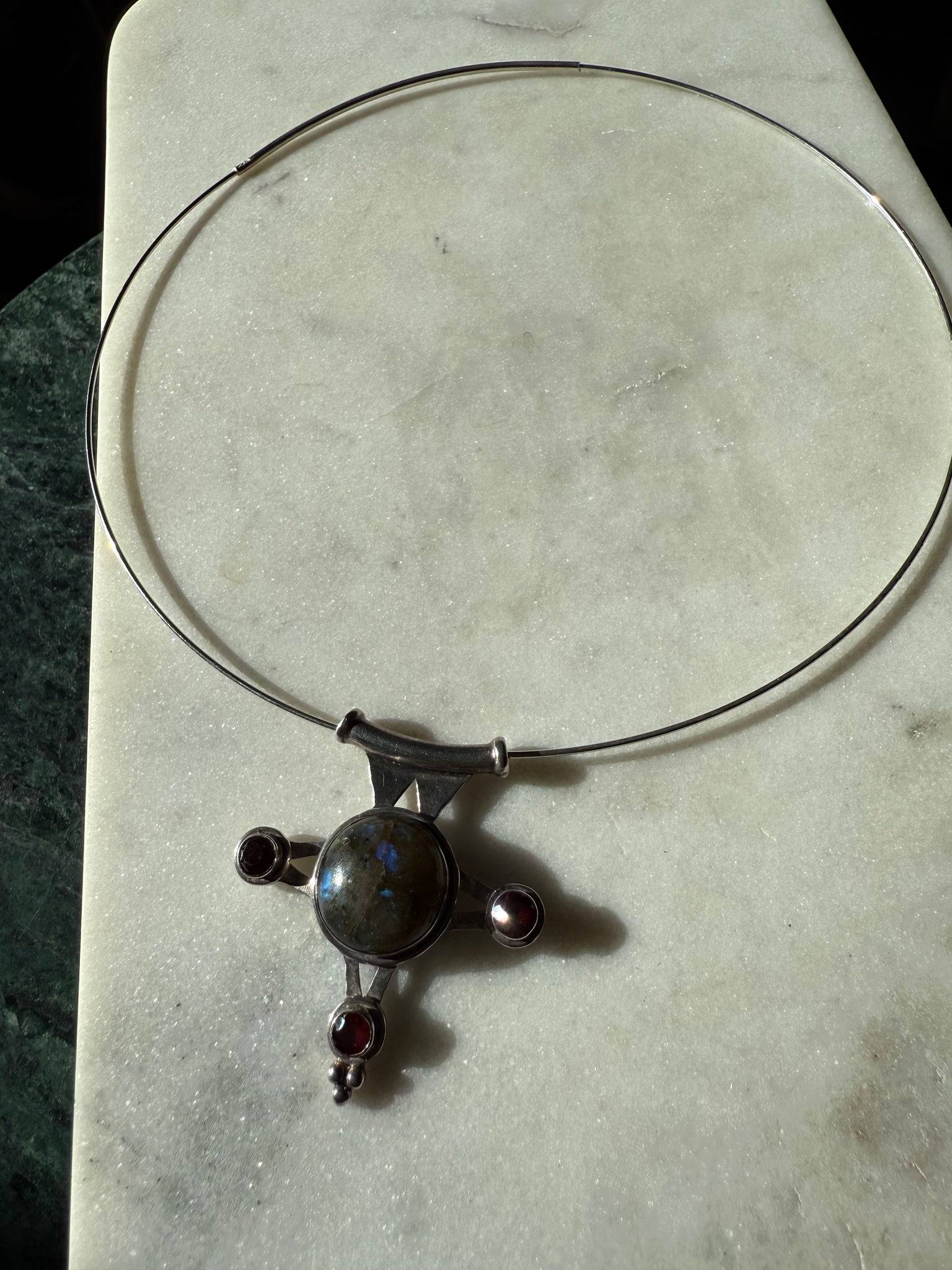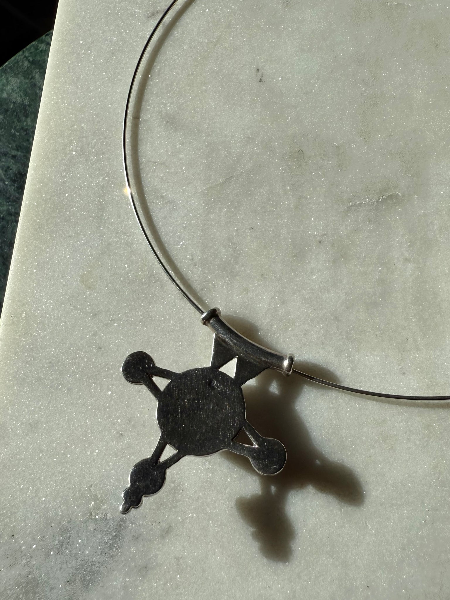 .925 Sterling Silver • 15.5 grams (pendant and torque combined) • pendant measures 1.75” x 1.5” • torque measures 18”