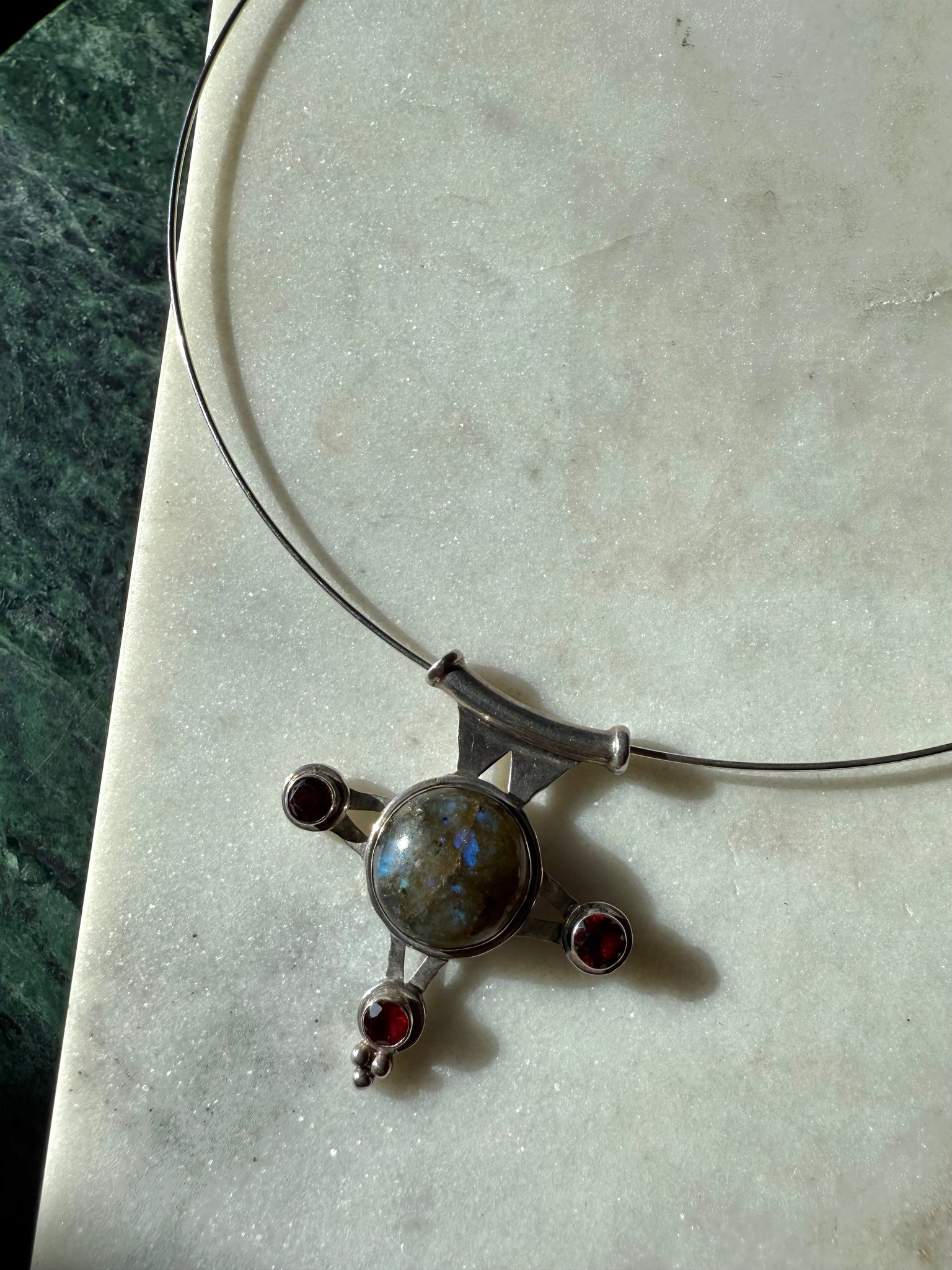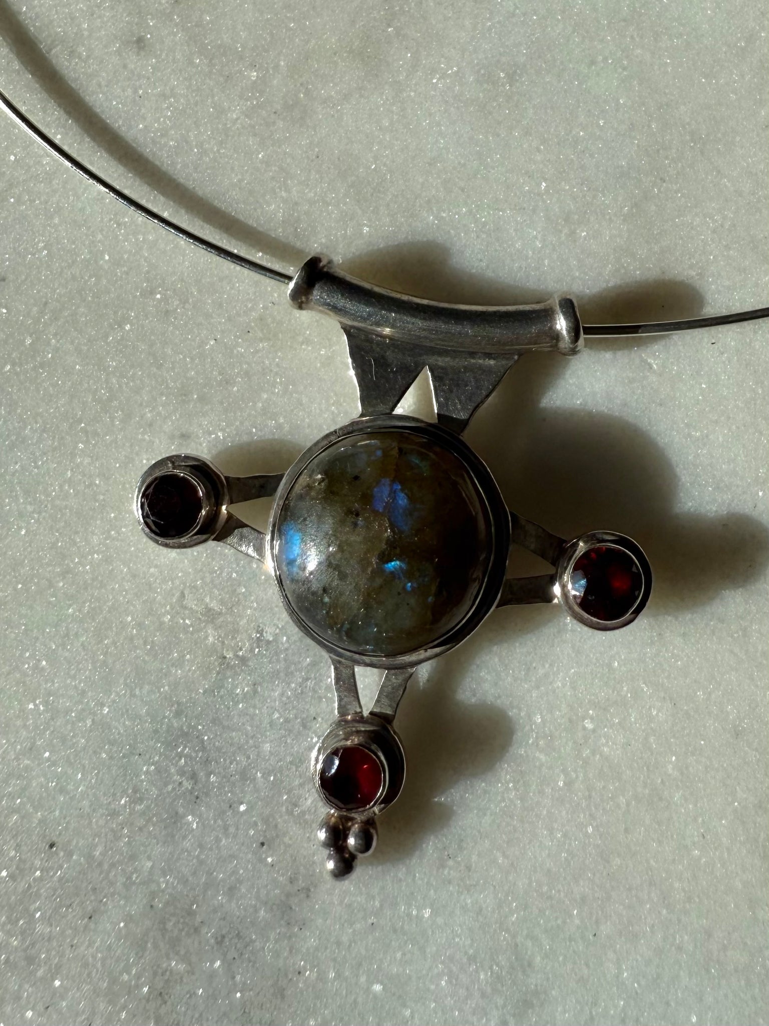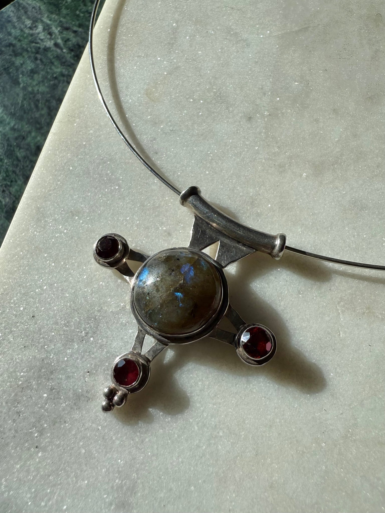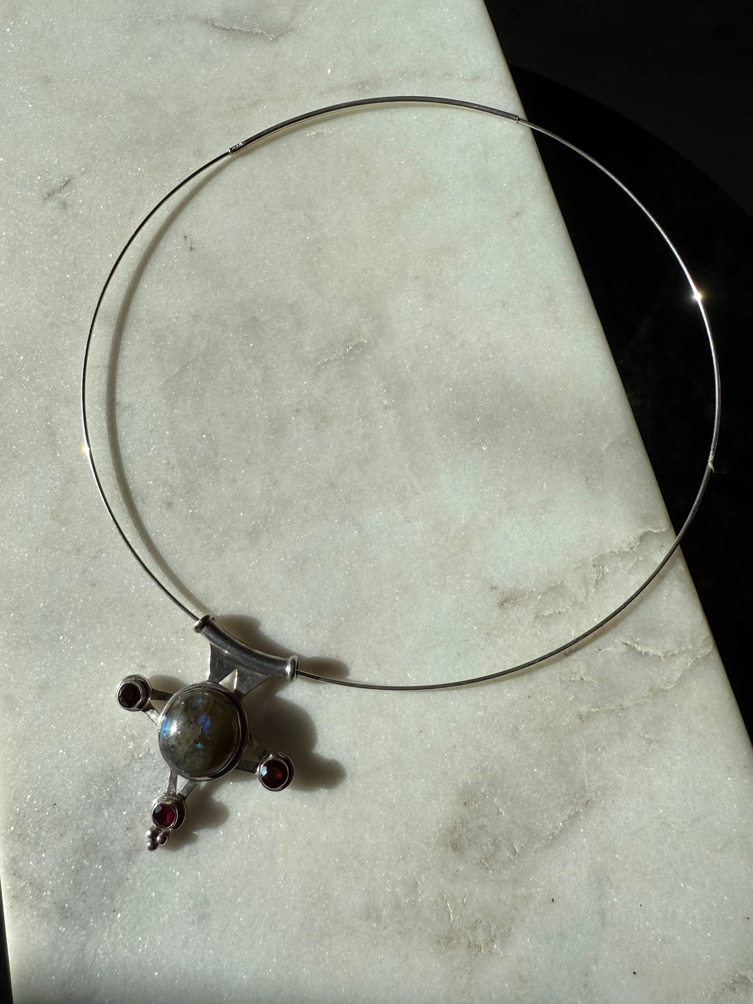 .925 Sterling Silver • 15.5 grams (pendant and torque combined) • pendant measures 1.75” x 1.5” • torque measures 18”
