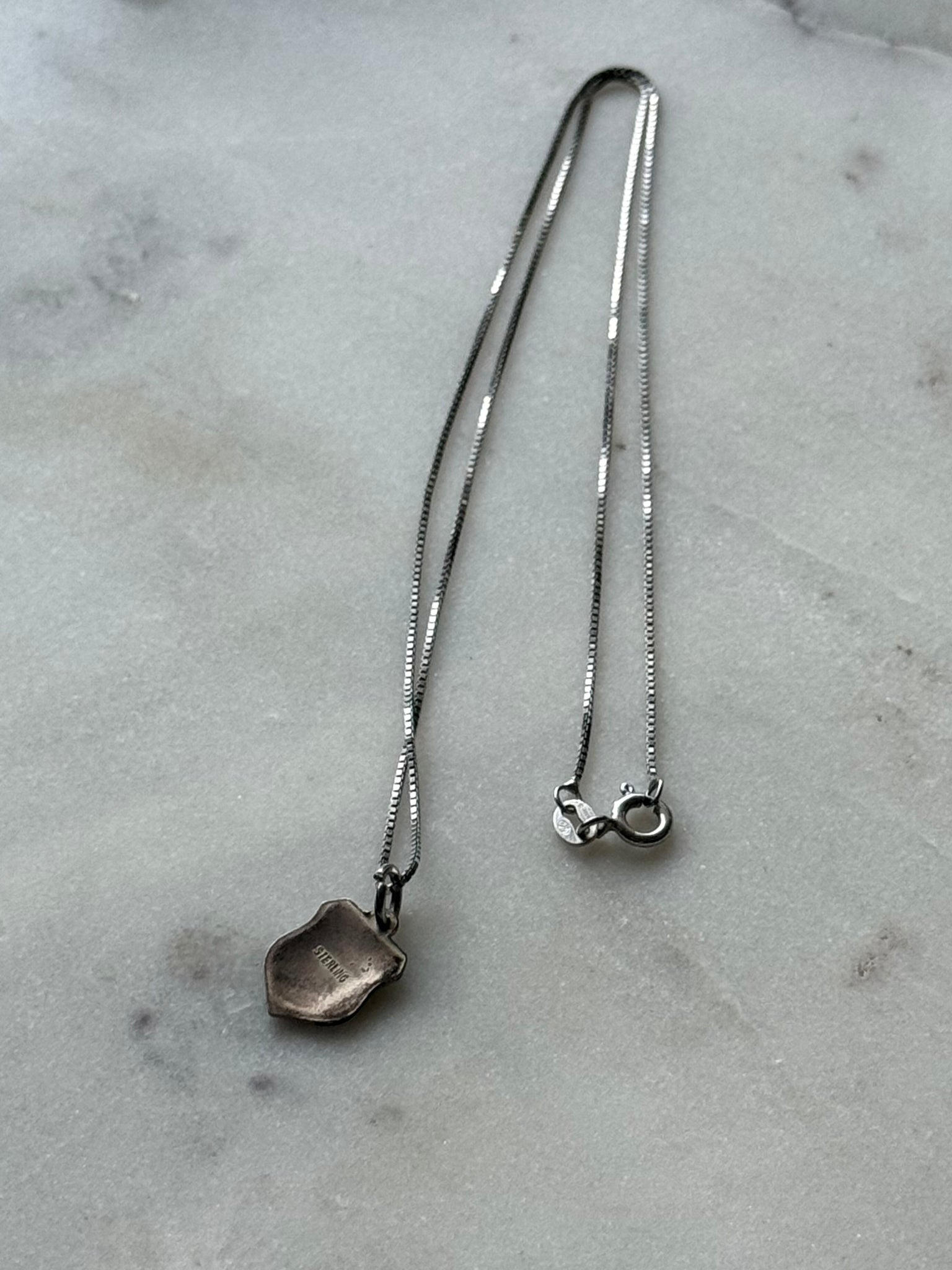 3 grams • .925 Sterling silver • charm measures 10.5mm • chain is 1mm and 17.5” length