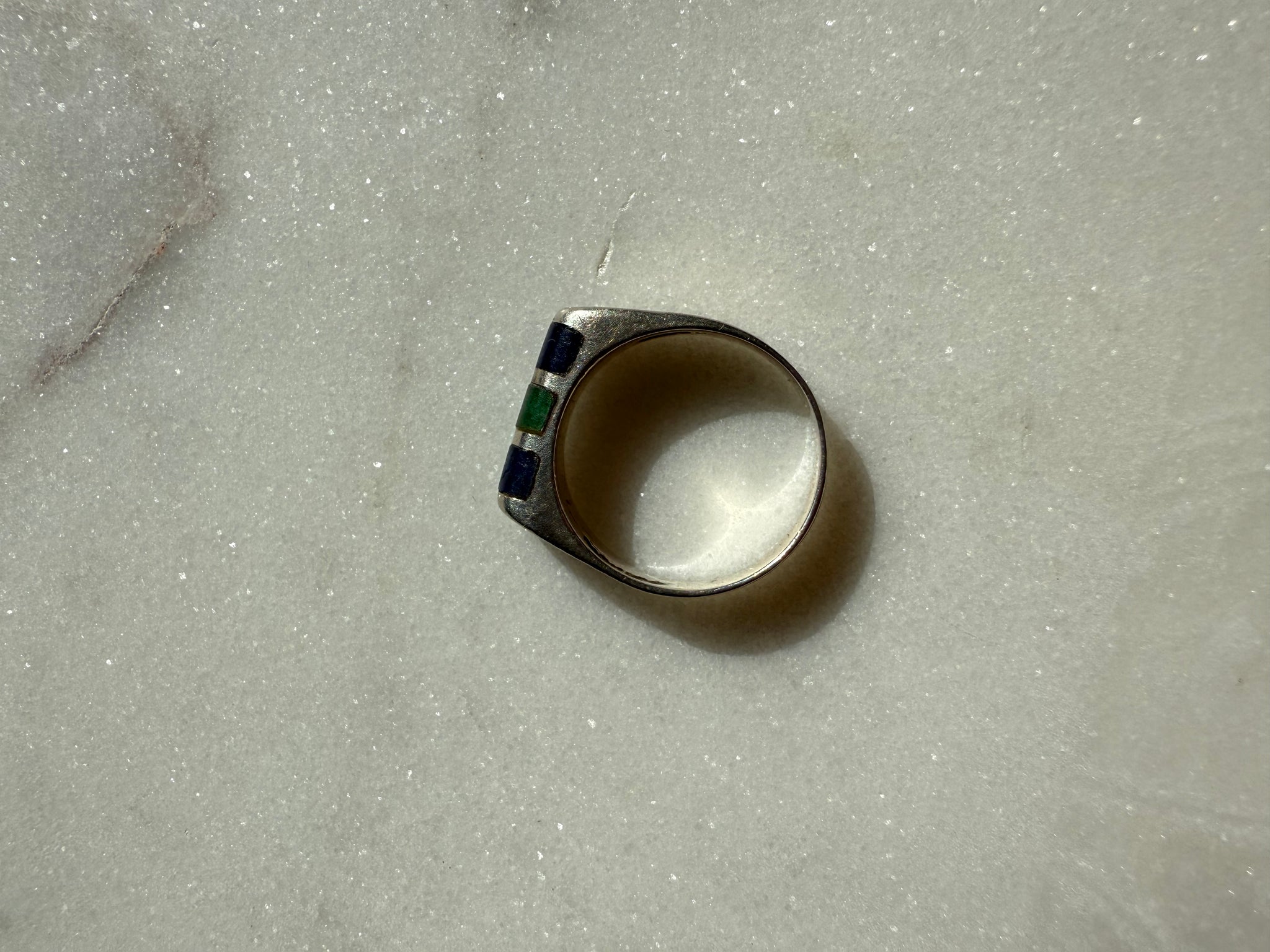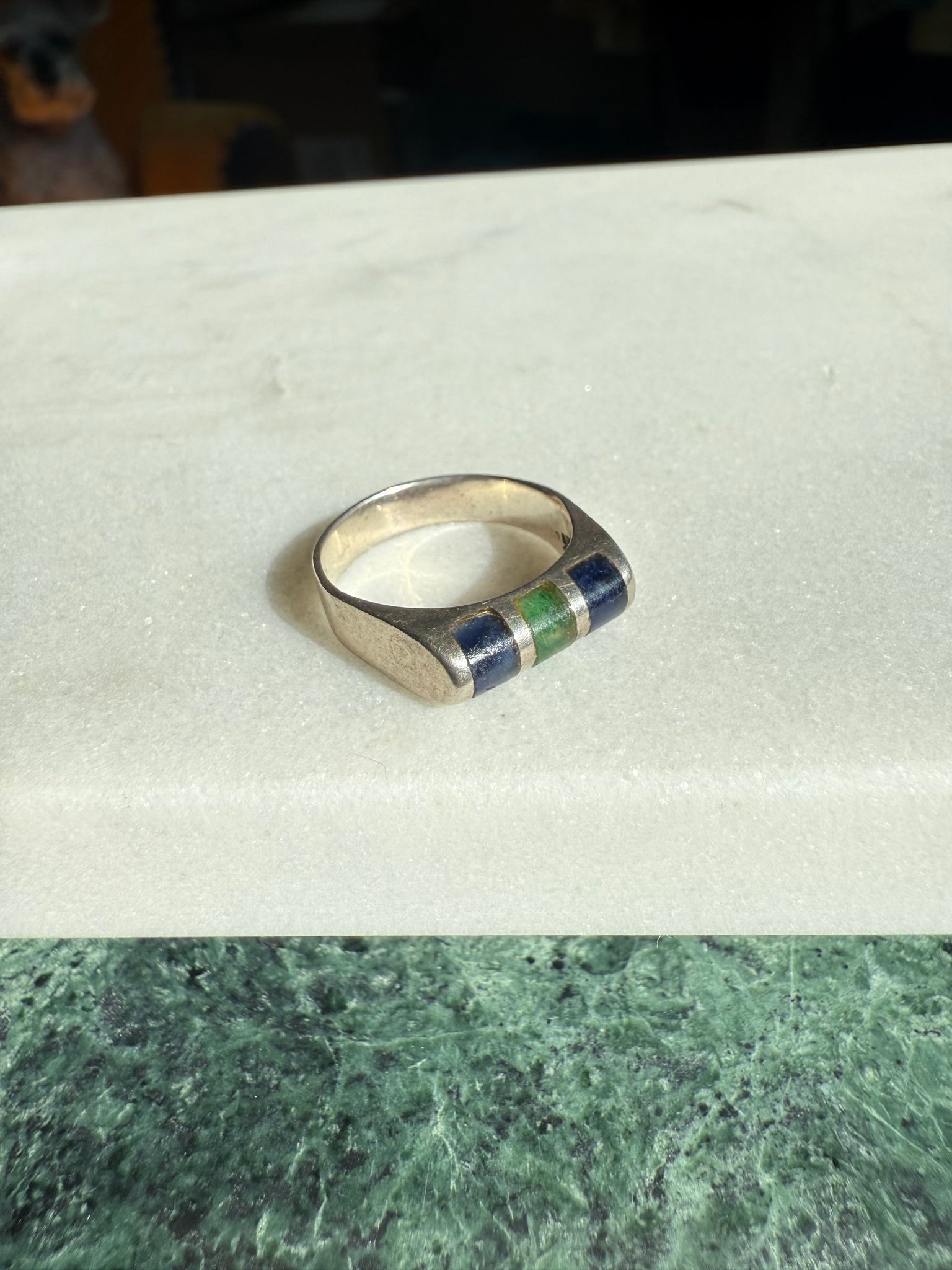 Lapis & Green Stone Inlay Sterling Silver Ring Size 7.25