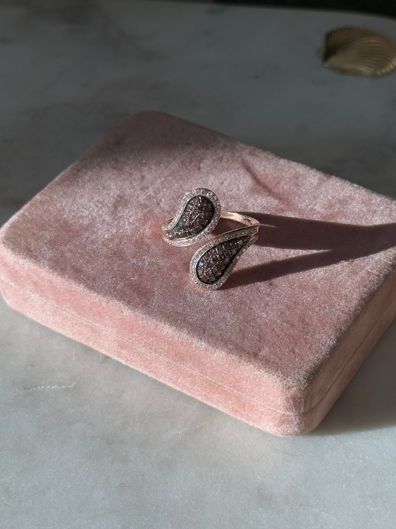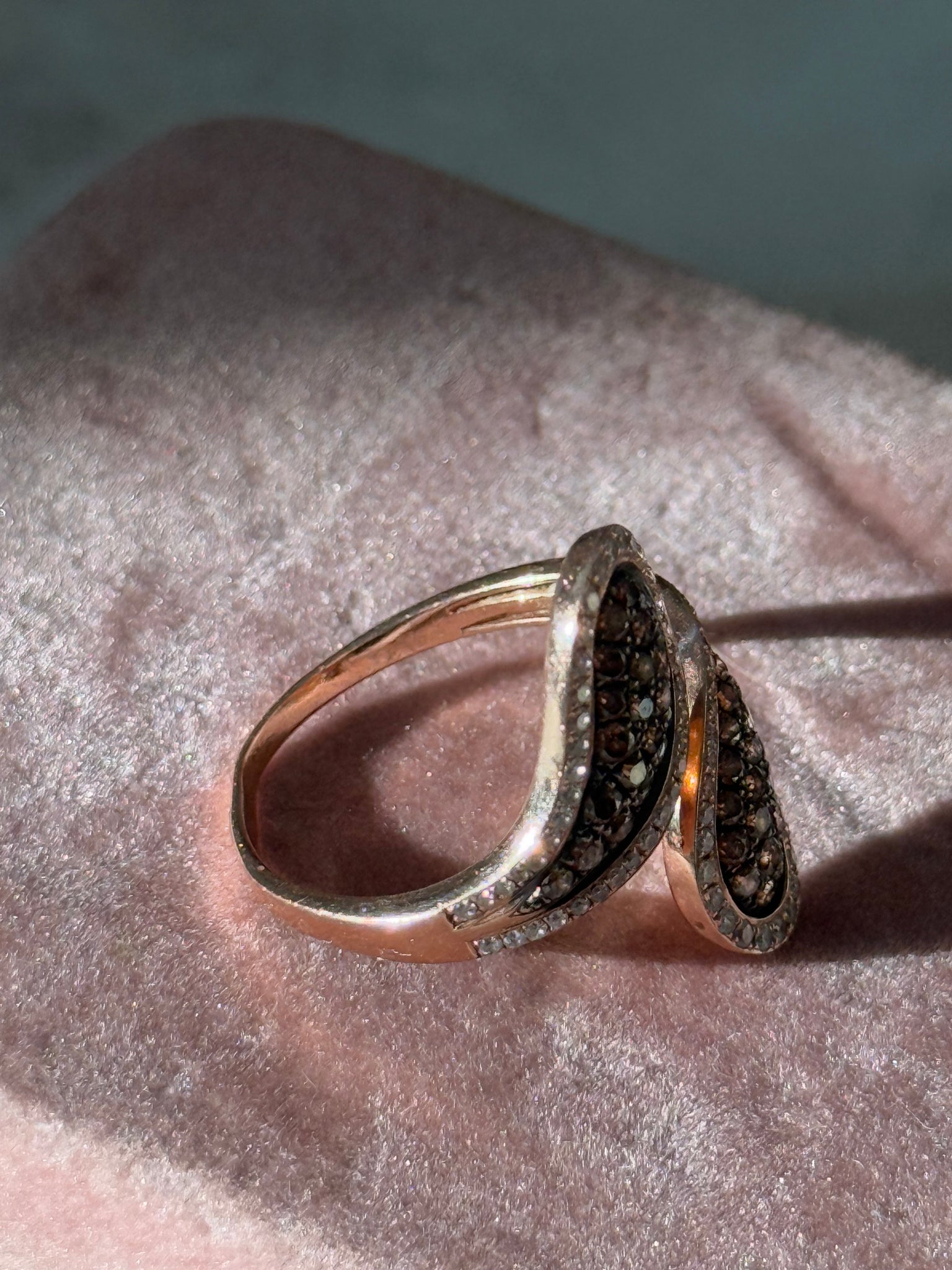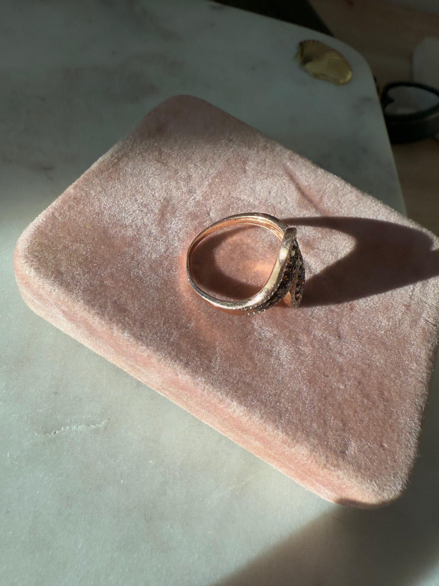 4.4 grams • solid 14k rosey gold featuring white and chocolate diamonds • ring size 9